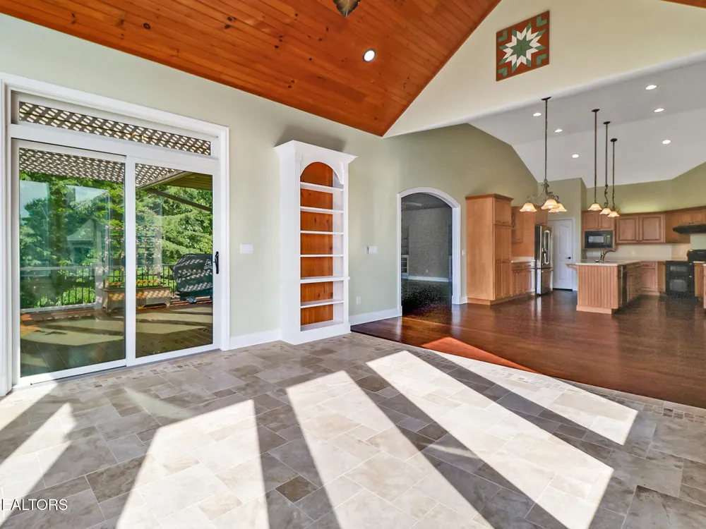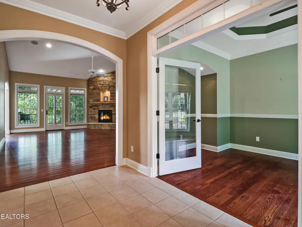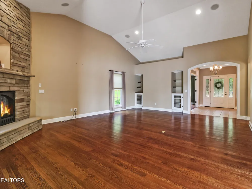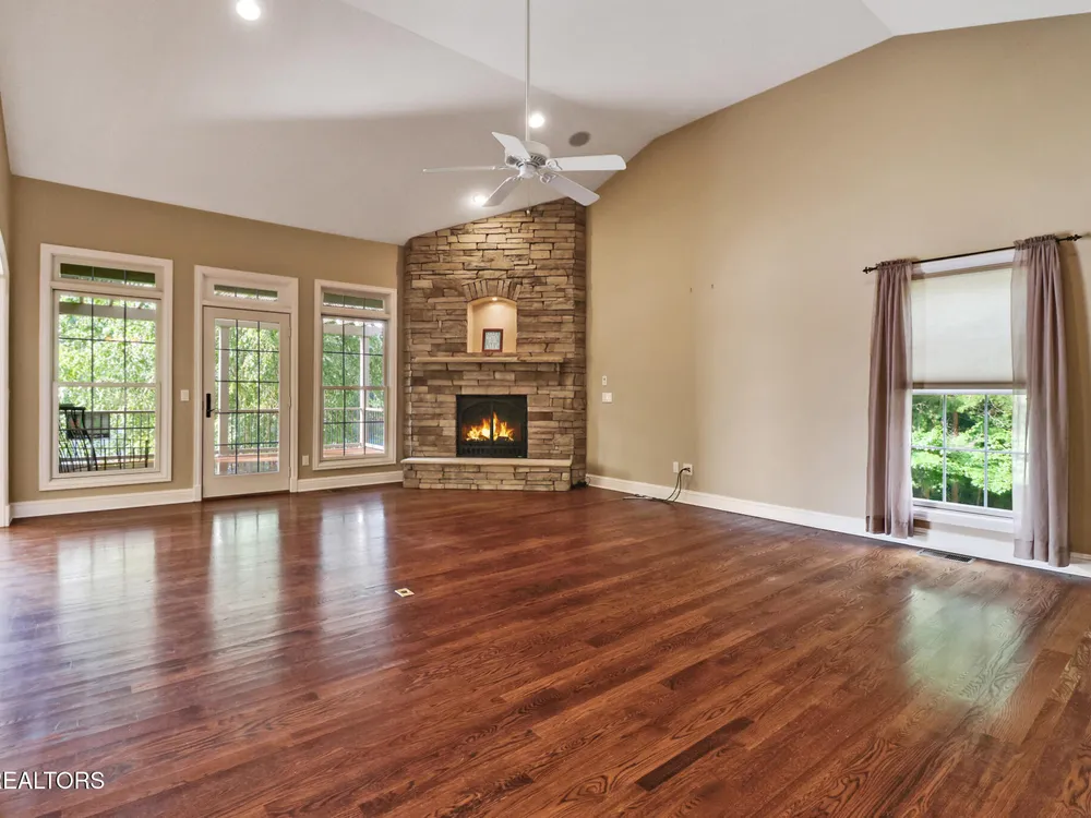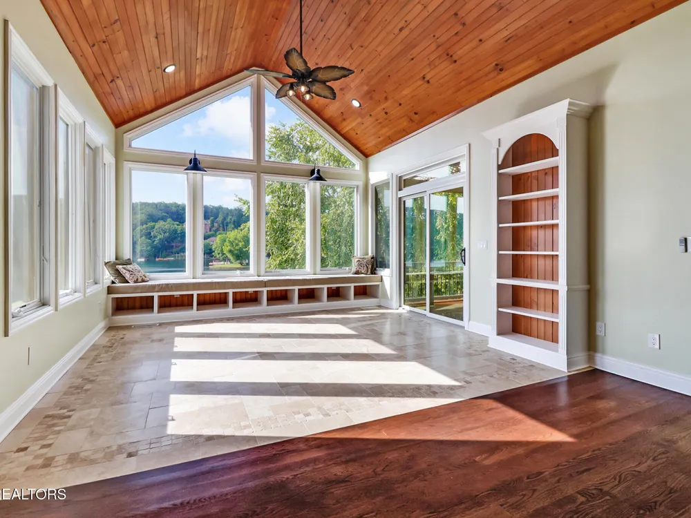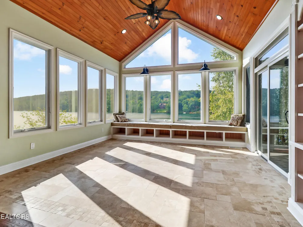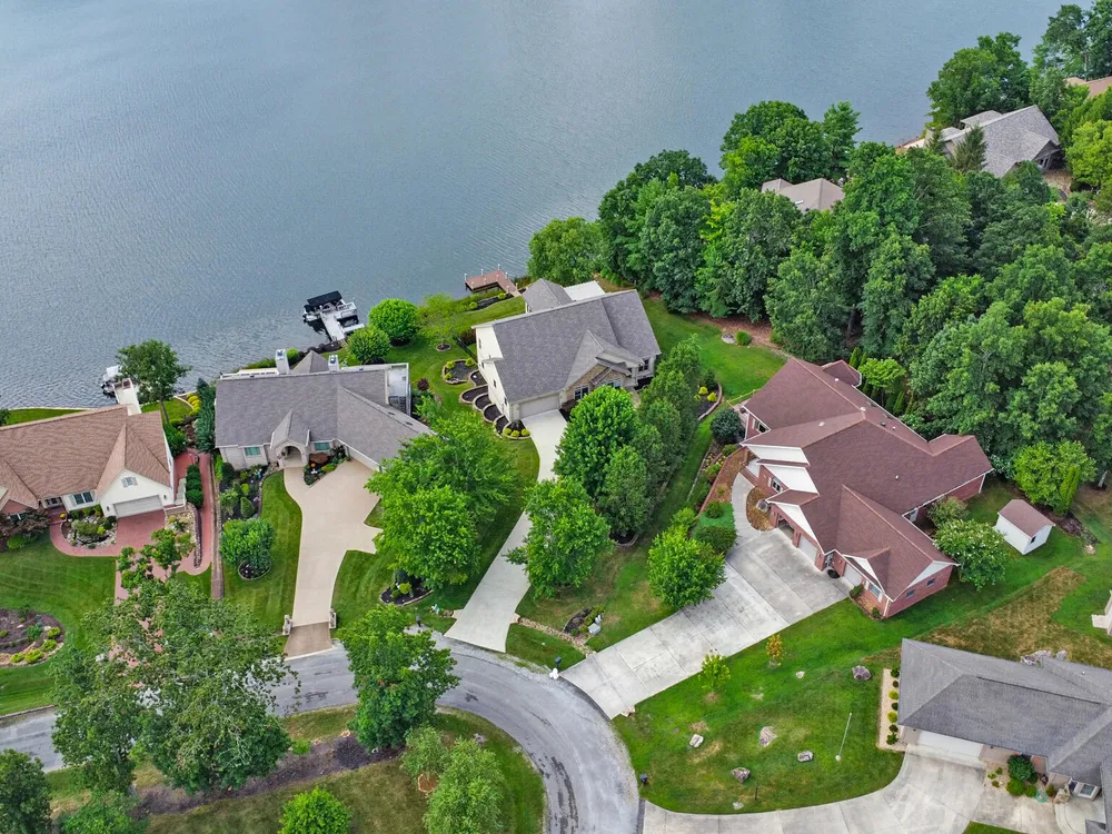 Life is better at the Lake! If you are looking for a beautiful home with breathtaking views of Lake Dartmoor, a flat driveway and an easy walk to the lake, along with an amazing workshop space, look no further! NOW- A NEW LIST PRICE AND A BRAND NEW ROOF! As you walk to the front door, you will be greeted with professional landscaping that has been completed around the entire home. As you enter the home through the stained-glass door, to the formal entryway you will find beautiful hardwood floors throughout the living spaces and master bedroom. The great room features a vaulted ceiling, gas stone fireplace, and a door to lead you to the outdoor Trex deck with pergola. A great place to sip your coffee and watch the sunrise or enjoy your lunch and watch the boats go by. The kitchen features a large island with an abundance of cabinets. A couple fun features to highlight- the refrigerator can make your coffee in the morning, and there is a glass rinse at the sink! You will absolutely love the panoramic view of the lake when you sit in the sunroom! The office and large master bedroom feature a trey ceiling, and the master bath has a tiled shower, comfort height double sink vanity and walk in closet. An office plus bedrooms 2 & 3 are on the main level, the 2 guest rooms have carpet. On the lower level, there is a large family/game room, great for entertaining on rainy days when you can't be on the lake. There is also a large bonus room, which could easily be used for a hobby room, workout room and additional sleeping accommodation, and has a great view of the lake too. From this room, you can enter on to the covered deck which includes a hot tub. The large workshop allows so many options for the woodworking or hobby enthusiast and has a huge concrete floor storage area, all under heat and a/c! The backyard has a new fence, perfect to let your pets run and enjoy the outdoors. All the decking has been recently updated with Trex, along with the dock at the lake. The dock also features a kayak step, making it easy and convenient to play in the lake! Residents around the lake are very social, you'll often see several pontoon boats tied together to watch the sunset as boaters float in the water, sharing snacks and beverages. All Anderson windows and sliding doors in the home. The upper zone of the HVAC was updated in 2023. Appliances are 7 years old. Home has security system with Simply Safe and surround sound. This is an exceptional home with outstanding views from multiple locations in the house, a great home for entertaining guests, family and friends on weekends or the holidays. Plenty of room for kids, grandkids and parents when they come to visit. Schedule your showing today! Recent improvements include: Sun Room Addition, Anderson Windows and Sliding doors with built in love seat over looking lake and intricate Travestone tile work. 3 High End Trex Porches with Accent with pergola. New Dock with Trex and Kayak step and dock light, complete Landscape Stonework in front, side and back of house. New Refrigerator with built in Keurig coffee maker. New Bosch Dish Washer. Added downstairs bar area with mini refrigerator, Added Cabinets in laundry room, New Exterior Doors - back and side, Finished Crawl Space 10 X 40 and added 4x4 window. New Upstairs AC unit (added capacity), Simply Safe Interior Security System, Annke Video 4 camera Exterior Security System, Interior Double doors to Office, Transom Fence area for Dog Run, built in Sprinkler Central Vacuum