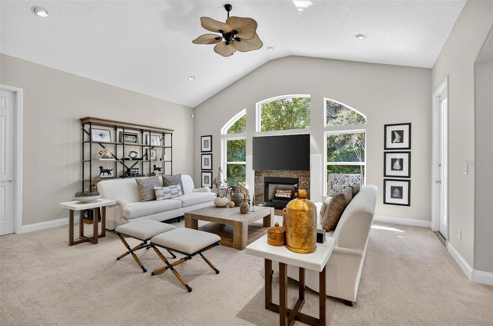 Tucked away in a quiet, tree-lined cul-de-sac in the gated Grand Haven community, this beautifully maintained home offers the perfect blend of comfort and convenience. Featuring 3 bedrooms, 2 full baths, and 2 versatile den/office rooms. The open floor plan is filled with natural light from showcase windows and offers a seamless flow for everyday living and entertaining. The spacious great room highlights a granite surrounded fireplace and open space to the kitchen, making it inviting to gather with family and friends The primary suite boasts tray ceilings, dual walk-in closets, a soaking tub, double vanities, and a glass slider leading to your private porch overlooking a serene and private retreat. Recent updates bring peace of mind, including a new roof (2022), new HVAC system (2021) still under warranty, new hot water heater (2025) and new and updated appliances. Additional features include crown molding, rounded corners, 8-foot interior doors, and French doors that elevate the home’s design. Living in Grand Haven means enjoying Florida’s premier gated lifestyle community. Nestled along the Intracoastal Waterway and home to a Jack Nicklaus Signature golf course, residents enjoy over 1,400 acres of natural beauty along with resort-style amenities: a restaurant, 2 pools, jacuzzis, tennis, pickleball, croquet, basketball, bocce, fitness centers, and a wide range of clubs and social activities. Located at the convenient north end of Grand Haven, you’re just a 10-minute drive to the beach and close to shops and local dining. This home truly has it all: privacy, updates, and access to an active, coastal lifestyle.