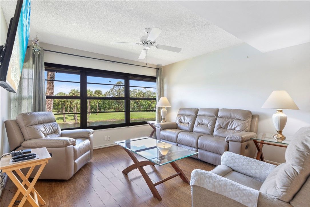 Welcome to your dream condo! A furnished turnkey beauty! Drop keys at the door & move right in, or make usage as rental! This gem boasts stunning kitchen w/ soft-close cabinets, quartz counters, full suite of SS appliances-even added breakfast bar cabinets for ex storage! Newer AC & elegant bath vanities-comfort meets style! Gorgeous tile, bamboo & plank floors flow t/o! Convenience of hurricane shutters, gorgeous guest bath walk-in shower! Plus, enjoy washer/dryer in-unit & a covered assigned parking space! W/ breathtaking expansive lake & golf views, this condo is the perfect retreat!
