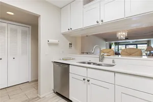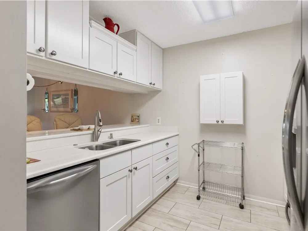 Welcome to your dream condo! A furnished-turnkey beauty! Drop keys at the door & move right in, or make usage as rental! This gem boasts stunning kitchen w/ soft-close cabinets, quartz counters, full suite of SS appliances-even added breakfast bar cabinets for ex storage! Newer AC & elegant bath vanities-comfort meets style! Gorgeous tile, bamboo & plank floors flow t/o! Convenience of added hurricane shutters, gorgeous guest bath walk-in shower! Plus, enjoy washer/dryer in-unit & a covered assigned parking space! W/ breathtaking expansive lake & golf views, this condo is the perfect retreat!