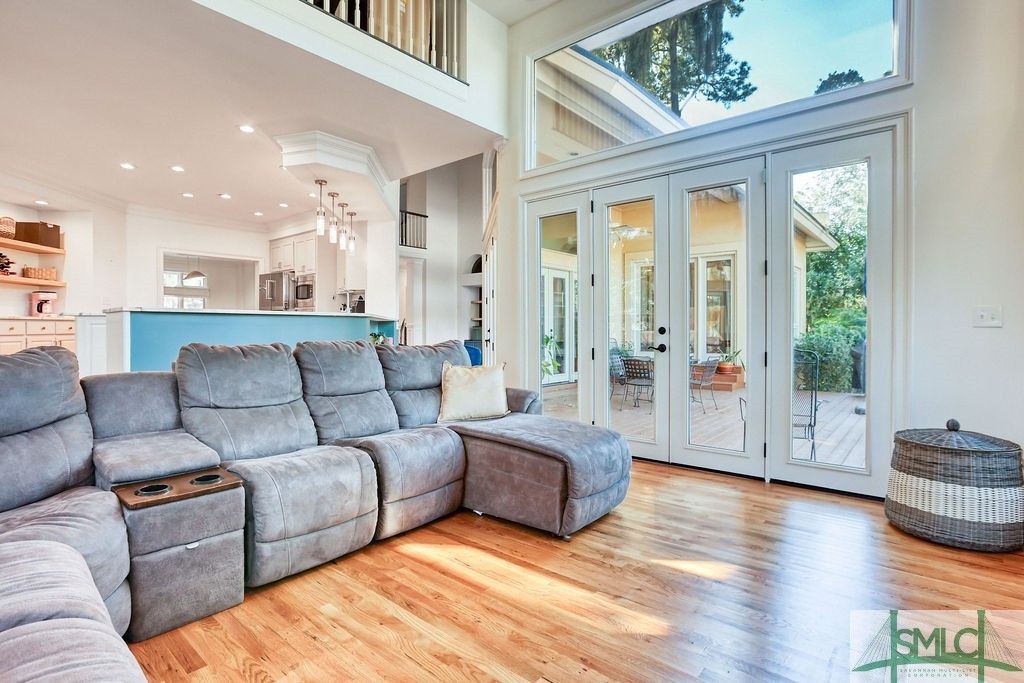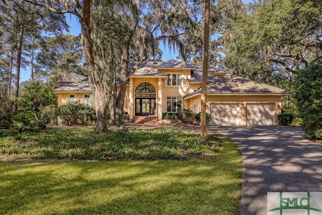 Beautiful and bright updated stucco home in The Landings! Abundant light throughout with floor to ceiling windows overlooking hole 12 on the Terrapin Point golf course. 4 bedrooms and an office, with the primary bedroom on the main level. Two walk-in closets in the primary bedroom plus the bathroom features an extra large shower and soaking tub. Plenty of room with a 2 car garage and golf cart garage around side. Spacious back deck with space to entertain! Other neighborhood amenities include: two boat marinas, fitness center/spa, 6 golf courses, tennis, play-grounds, dog park, water slides, nature trails and so much more. (Some amenities require club membership or extra fees.)