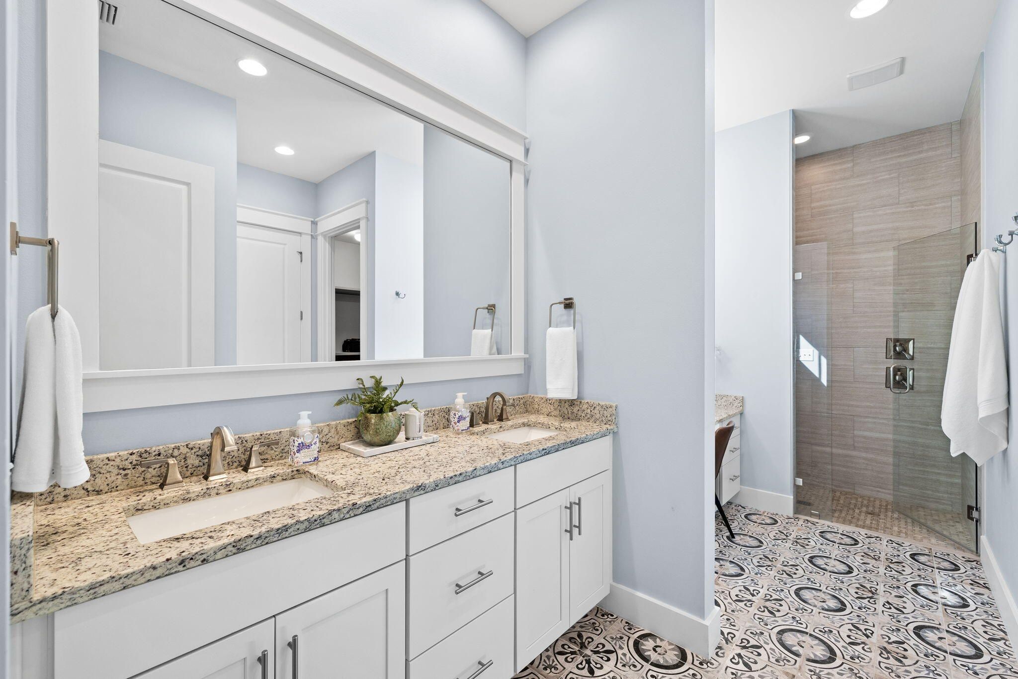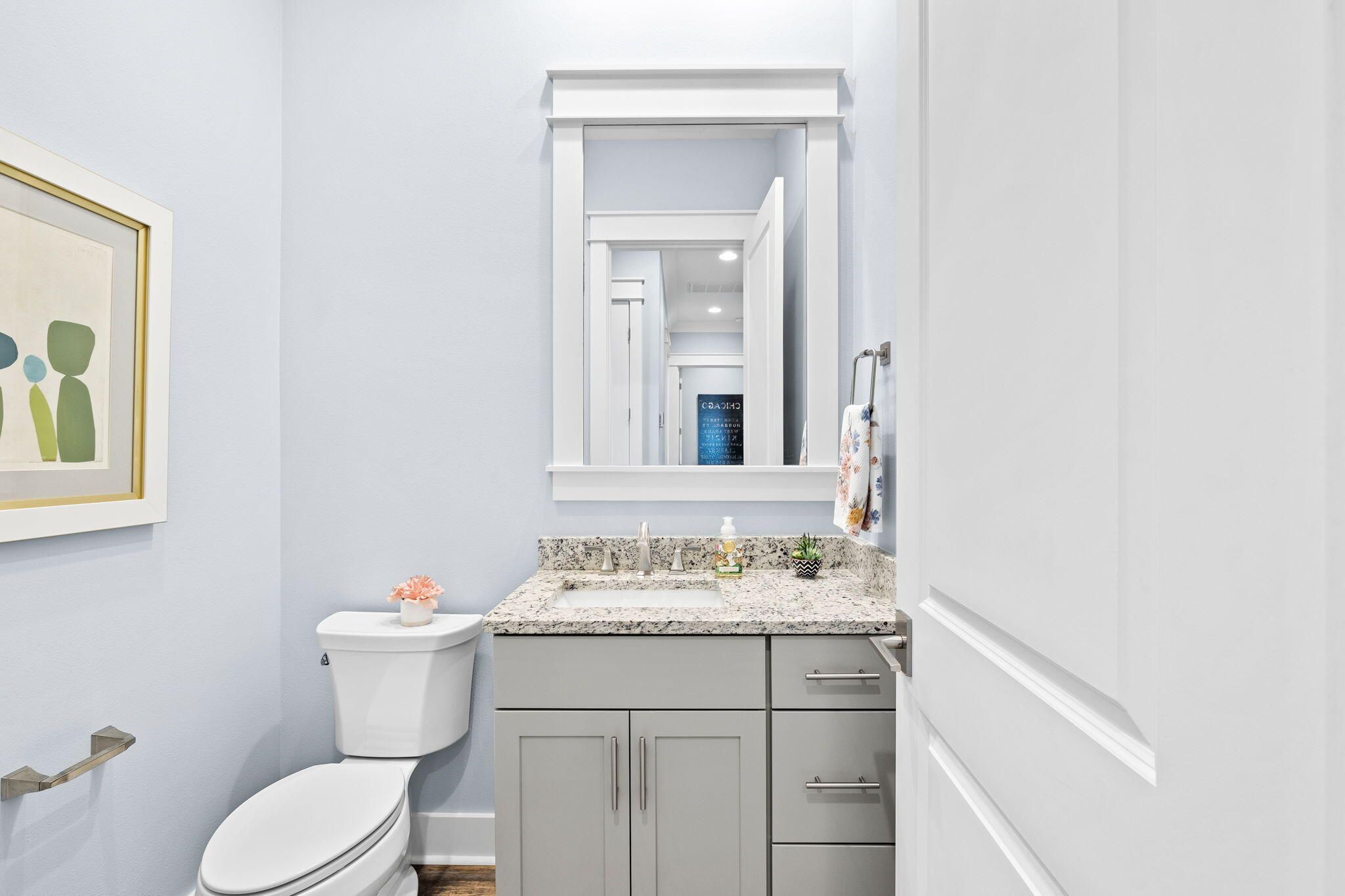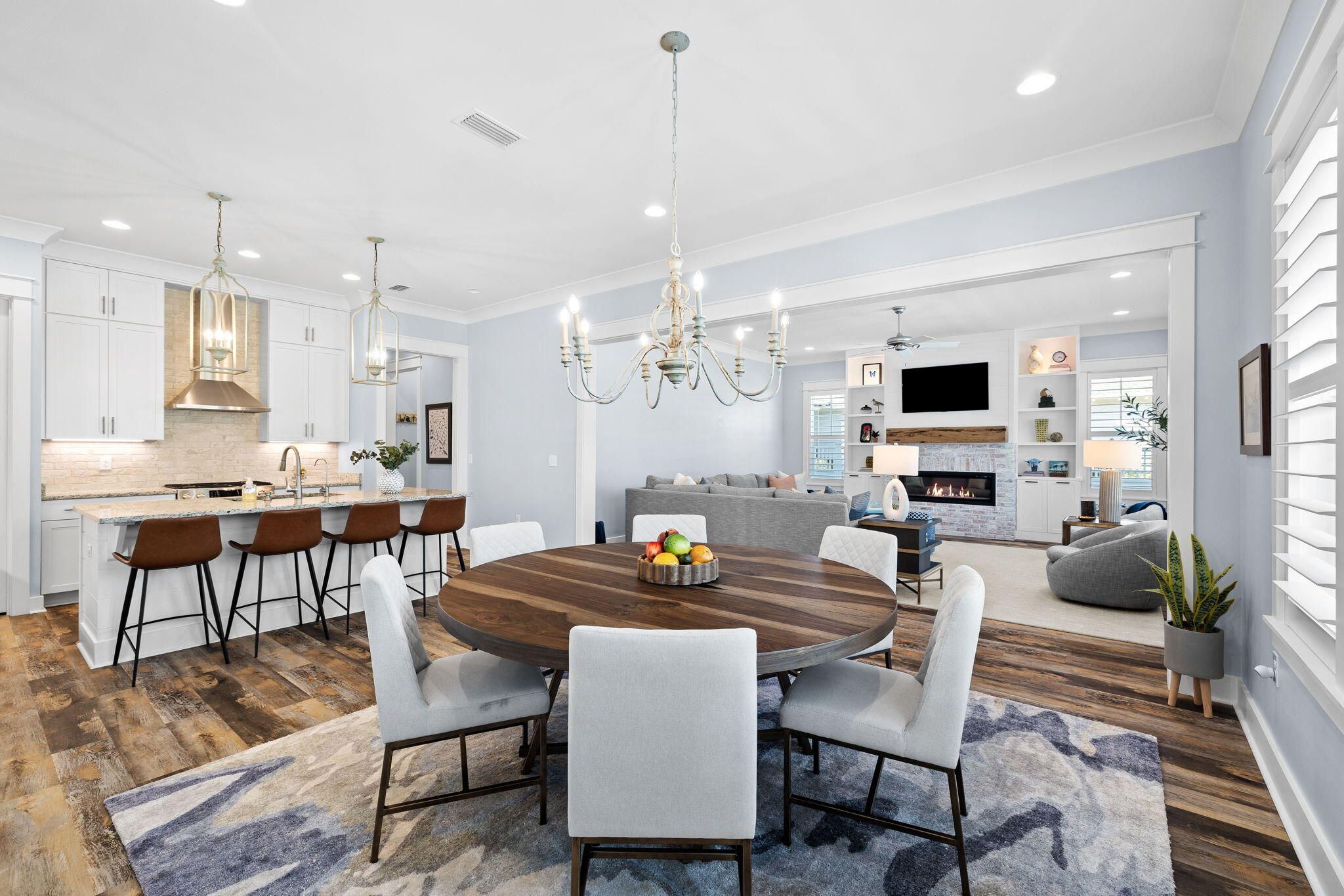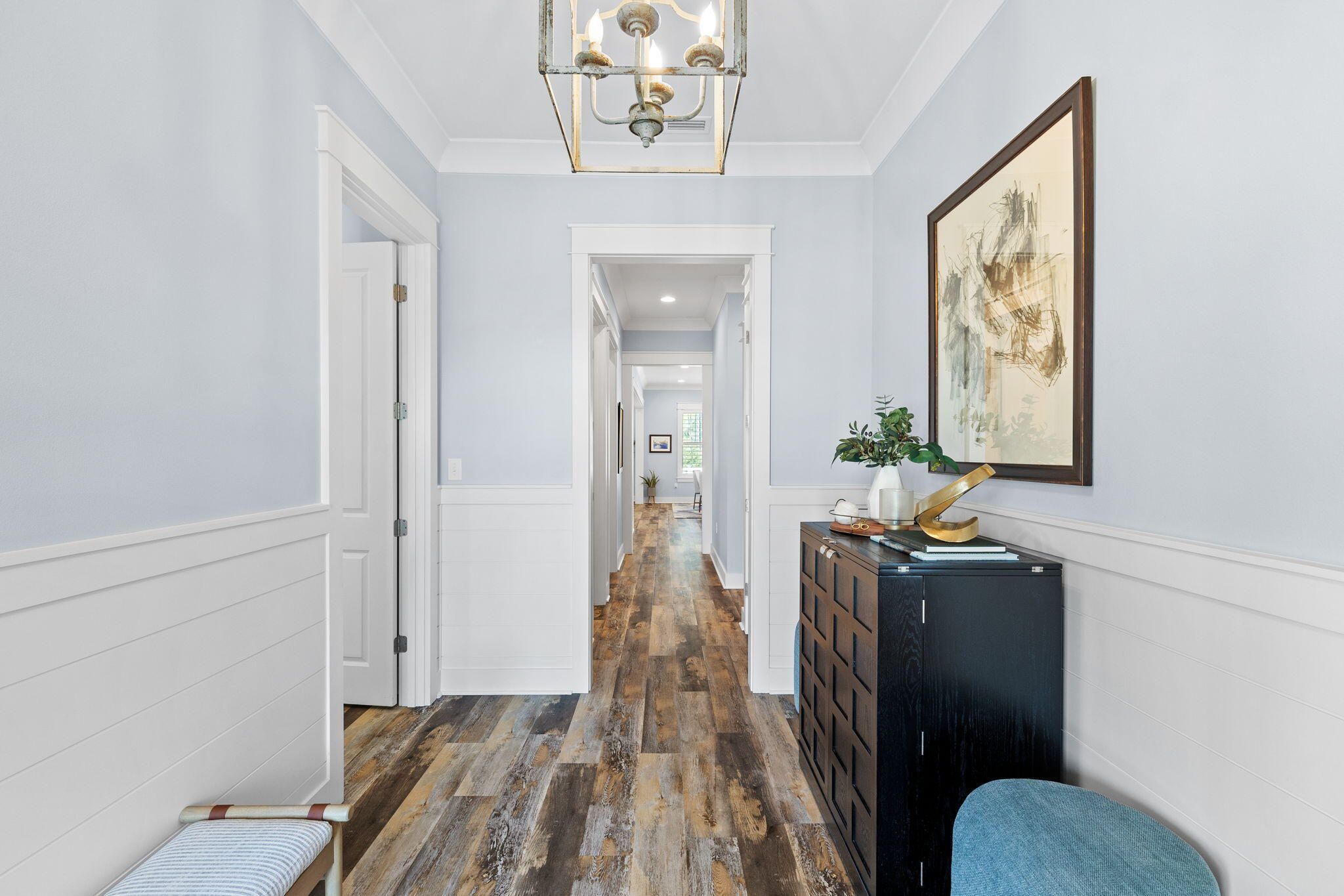 Tucked away on a quiet five-home street in the coveted Stillwater phase of Watersound Origins, this 2020 Huff Home offers a rare combination of privacy, function, and resort-style living. Positioned on a spacious lot with a wooded preserve behind and a community park in front, this highly upgraded Gardenia plan provides 2,770 square feet of thoughtfully designed space with four oversized bedrooms, a dedicated office, and three and a half bathrooms.Inside, 10-foot ceilings, eight-foot doors, crown molding, and shiplap accents create a refined coastal feel. The gourmet kitchen features floor-to-ceiling cabinetry, granite countertops, and Bosch appliances including a vent hood and drawer microwave. Each bedroom is generously sized to fit a king bed, while custom closets and spa-inspired