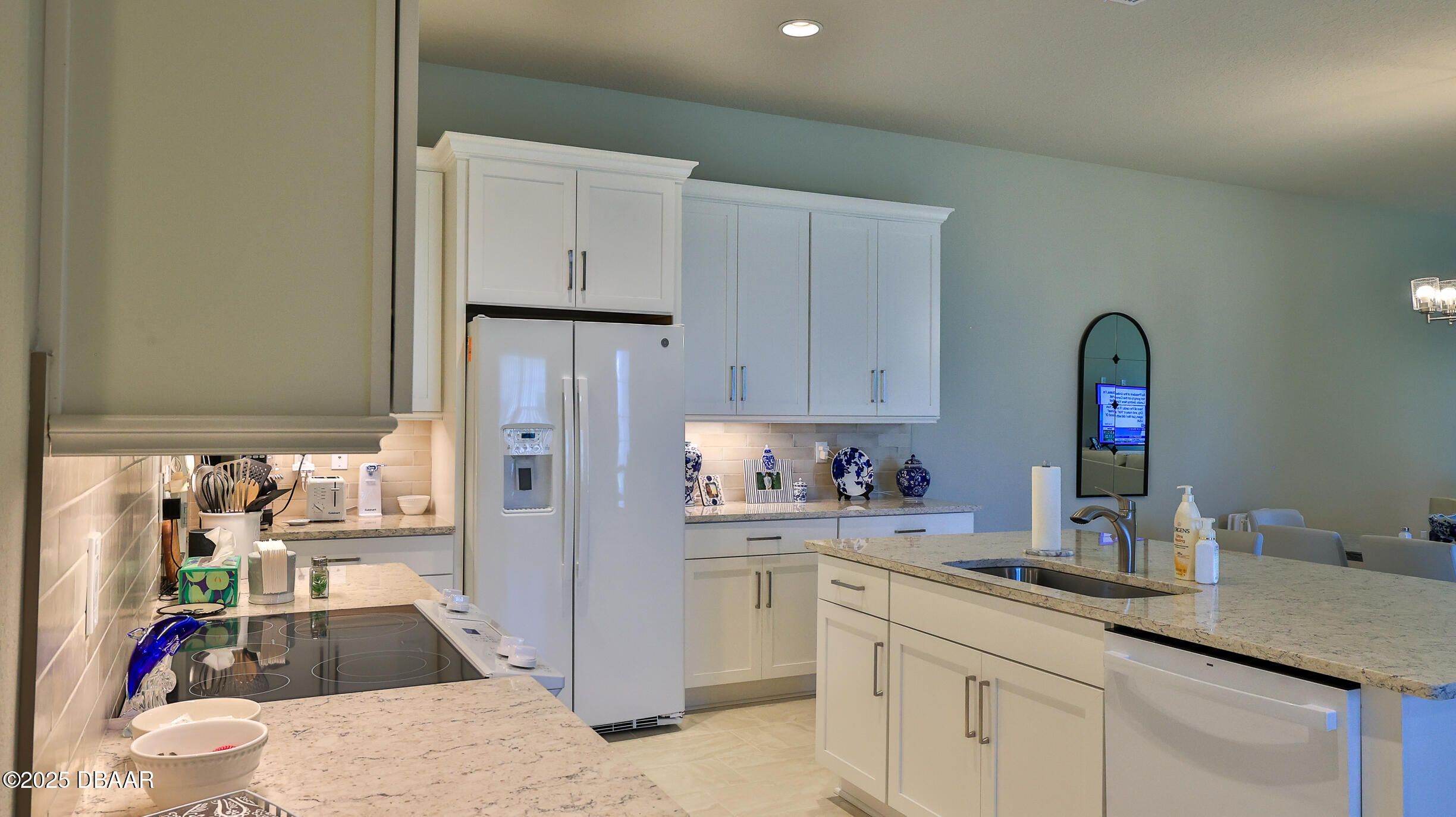 This ranch townhouse model in the Plantation Bay Golf Community is the only Arbor III newly designed home available for resale. This home includes new gleaming white appliances, including the washer and dryer that are not included in new models. The laundry room also has added white cabinets to match the kitchen and a matching hall tree with a seat & storage. Kitchen includes white and black quartz & is throughout. 42'' white cabinets compliment the white appliances. Off the kitchen is a large pantry and linen closet. The floors throughout are 12''X24'' upgraded tile. Bedrooms include a gray twist carpet. The master suite has a large closet - 5'6'' x 9', his and her vanities, and walk in shower. The guest bath has a tub and shower combo. This home was built using the new Arbor III design, which is 114 Sqft larger than the Arbor II, and includes 10' ceilings including 2 trays, SCREENED DOUBLE LANAI, and was built as a model on a premium lot with water views both front & back and includes a nature preserve in rear. Privacy/no construction dust. More Amenities: Front door was sandblasted to illustrate the beautiful etching, Arbor III ranch models are the only model with DOUBLE LANAI'S, 2 courses of cinder blocks separate units for quiet and fire protection, kitchen cabinets have crown Moulding as well as laundry room cabinets, white embossed vertical blinds thru-out gives the home a Coastal contemporary vibe, paver driveway, irrigation system, epoxy garage floor makes clean-up a breeze, undercounter kitchen lighting in the kitchen, garage door has door pad so if you forget keys on a night time walk, entry is easy, electric garage door opener, tile in both showers go to ceiling, windows in baths for natural light, bedrooms have overhead lighting as well as the den. Think of all the time that you could spend enjoying Plantation Bay instead of shopping in this hardly used, carefully curated home with furniture being optional. YOU HAVE ARRIVED AT LUXURY in this community that offers tennis, golf, new Founders Club, 2 pools, gym, classes, etc.