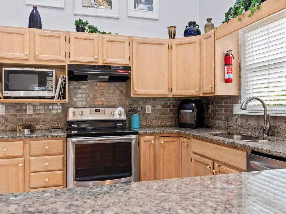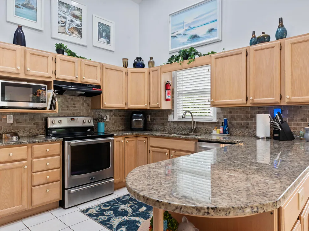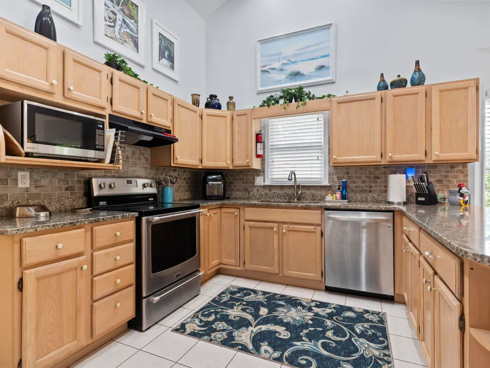 - Breakfast Bar, Bedroom on Main Level, Entrance Foyer, Kitchen Island, Stainless Steel Appliances, Solid Surface Counters