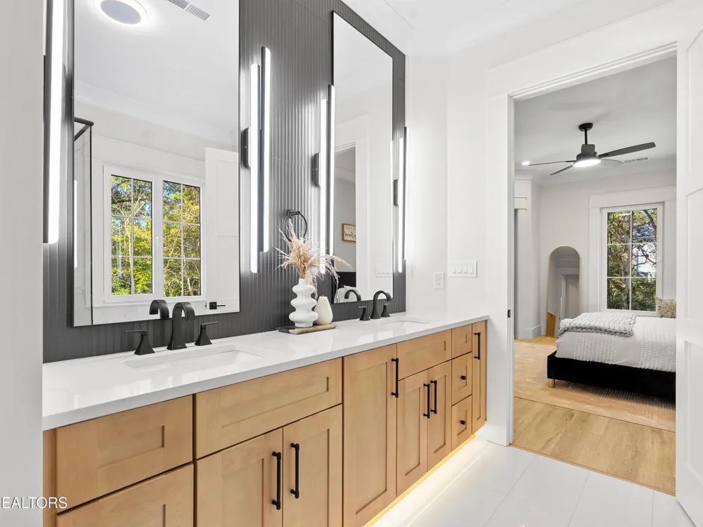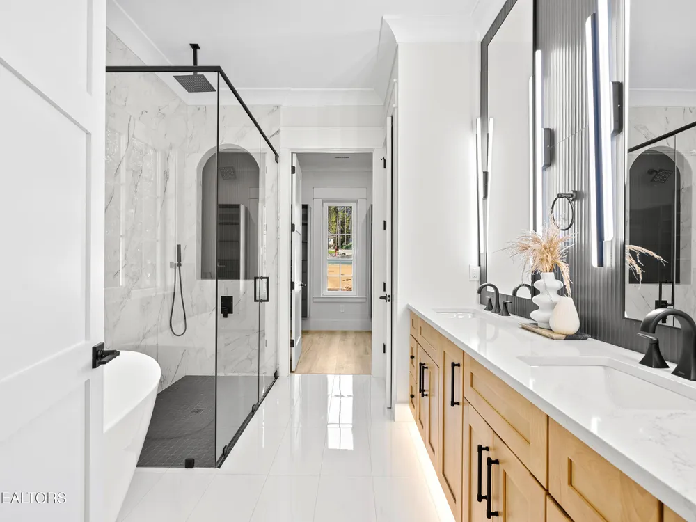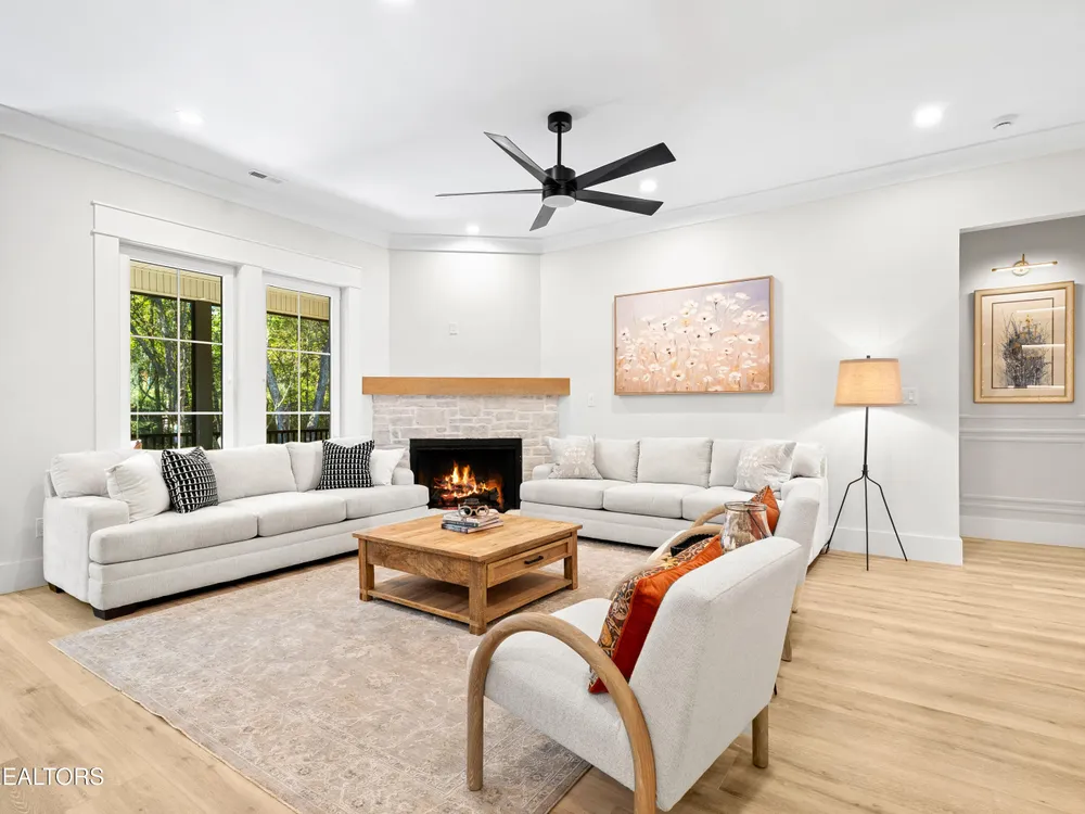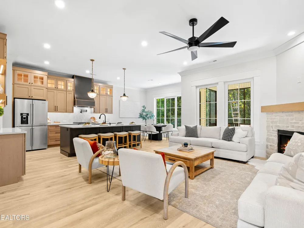 Step into this newly built masterpiece, featured in the 2025 Parade of Homes by Elegant Homes LLC, where extraordinary style meets refined details and true move-in-ready comfort! Situated in a peaceful cul-de-sac, the home welcomes you with an inviting artisan tile and accent stone wall that set a warm yet elevated tone. Open layout highlights wide LVP flooring, custom trim work, high-end finishes, and European Tilt & Turn windows throughout. The office includes beautiful built-in cabinetry. Cozy living room centers around a stone fireplace. Kitchen is a true culinary hub with stylish, timeless cabinetry, KitchenAid SS appliances, gas range, farmhouse sink, custom hood, pot filler, oversized island, chic backsplash and lighting, gorgeous countertops, under-cabinet lighting, and a coffee station. Primary suite features an accent wall with sconces and access to the screened deck. Spa-like bath includes a tiled mirror wall, large mirrors, freestanding tub under an accent chandelier, walk-in shower, and a custom closet designed for maximum organization. Two guest bedrooms share a double-vanity bath with a tiled shower. Laundry room offers extra cabinetry and a drop zone. Lighted stairs lead to a versatile bonus room complete with a wet bar, coffee station & beverage cooler, custom reading nook, a media wall ready for entertaining, and a full bath. Outdoor oasis includes a screened deck with aluminum railing and a stone gas fireplace overlooking the common property, plus an open patio for grilling. Concrete pad in the crawlspace adds extra functionality. Professionally landscaped yard with full irrigation completes the picture. This home is designed for contemporary living, blending comfort with true elegance. Don't let this opportunity pass, schedule your showing today and make this Parade of Homes showcase yours. Buyer to pay the one-time Loudon County Impact Tax of $1.00 per finished sq ft.