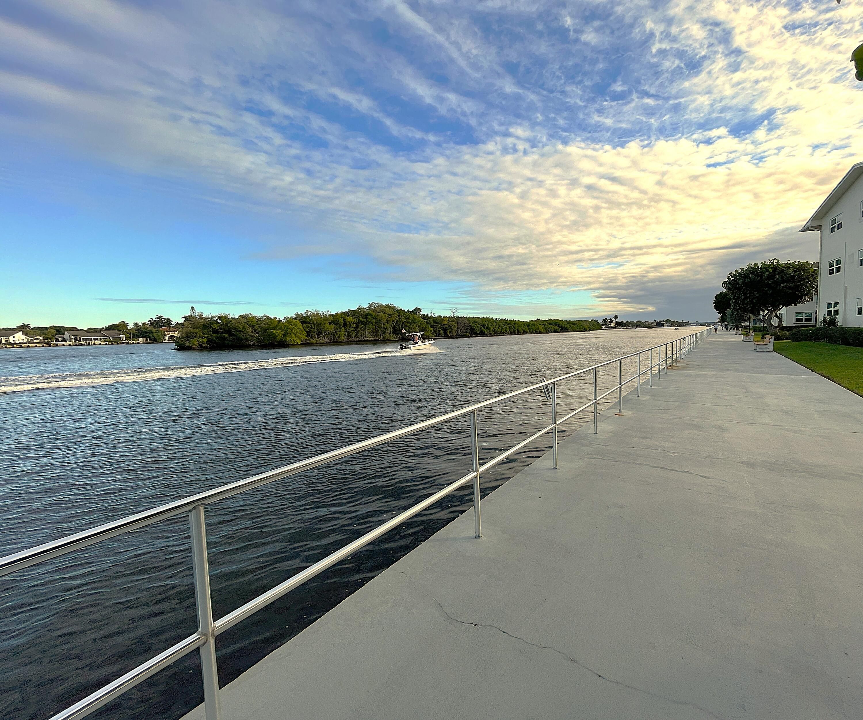 Come fall in love with this rarely available one bedroom, waterfront condo nestled in a private, gated community in East Boynton Beach. Sleek, seaside kitchen with granite counters, stainless steel appliances, and a built-in snack bar. The kitchen opens to the living area for today's modern lifestyle. Romantic master suite with sparkling water views. Relax and enjoy cool breezes on your screened-in patio while watching the boats go by. Sterling Village offers a dynamic 55+ lifestyle with resort style amenities, a full calendar of social activities, and a variety of clubs - the perfect blend of relaxation and recreation. Fantastic location - just minutes to shopping, dining, and pristine beaches. Make this coastal chic oasis your home! Hurricane shutters. Laundry in the unit allowed.