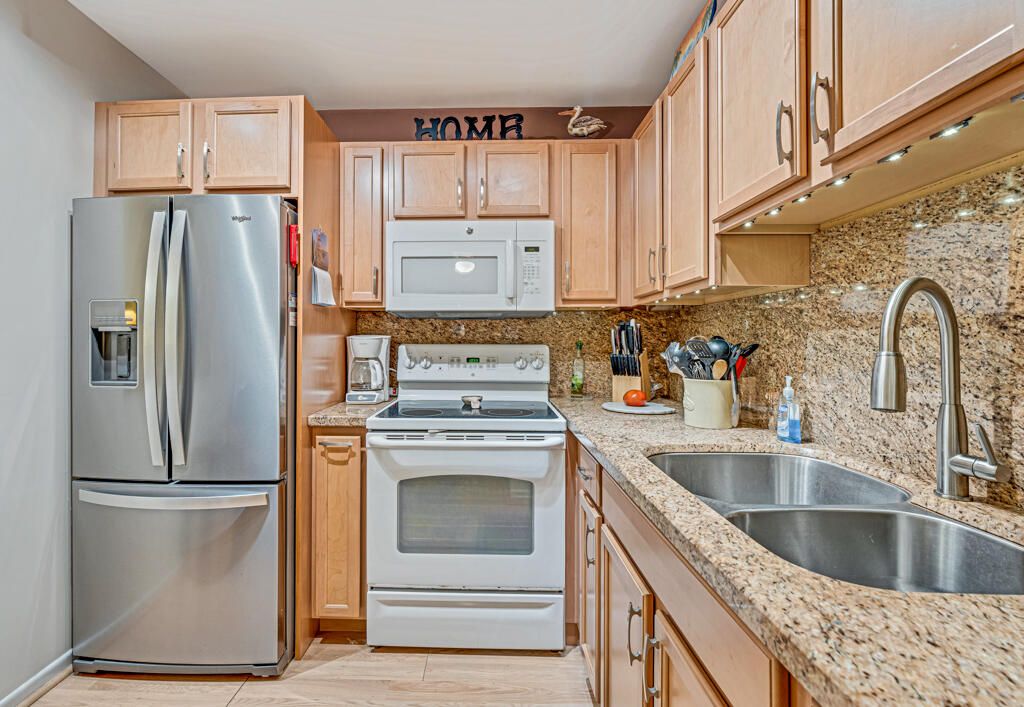 - Cooktop, Disposal, Ice Maker, Microwave, Electric Range, Refrigerator, Smoke Detector, Built-In Oven