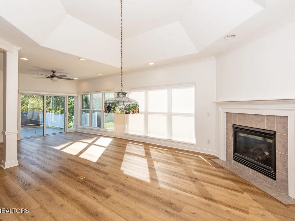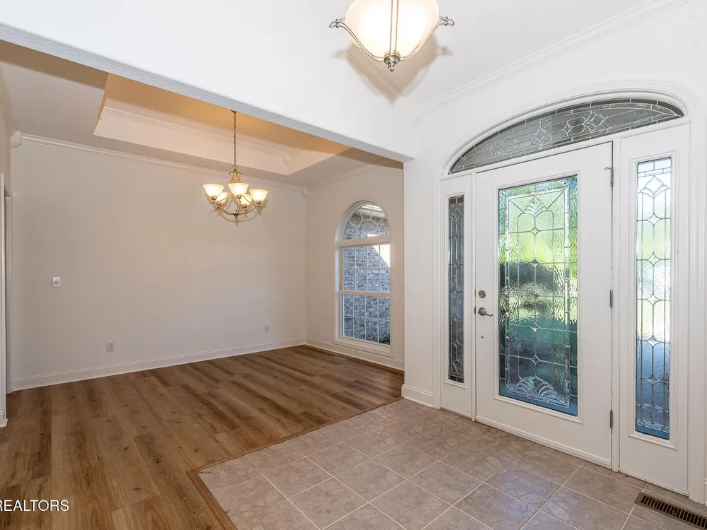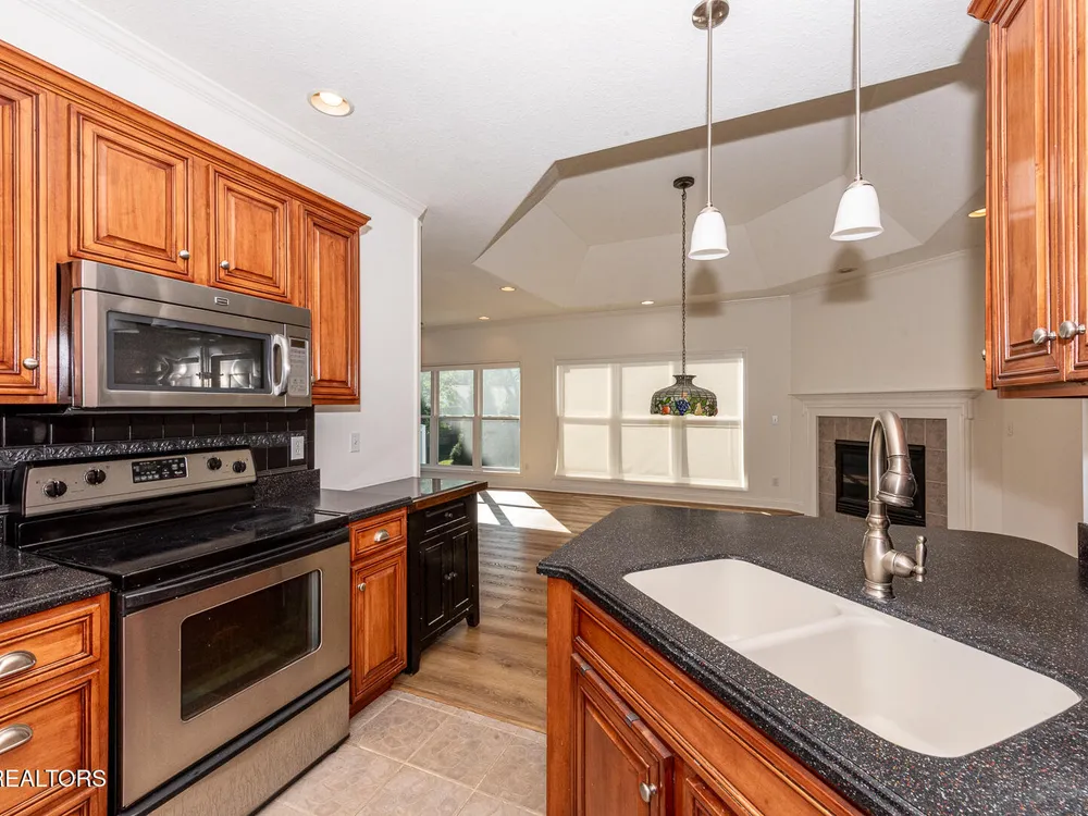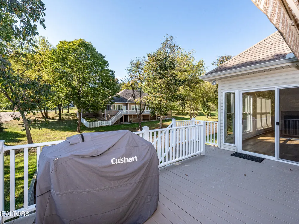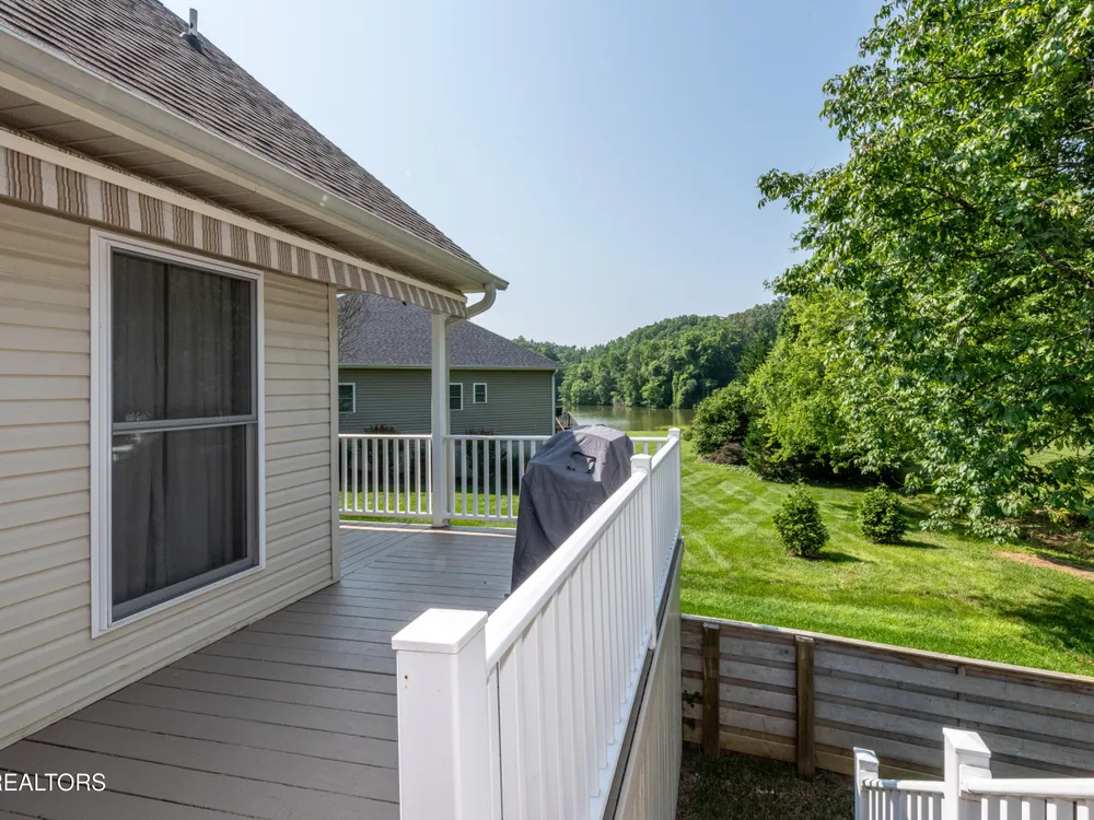 Welcome to your next home in the picturesque Tellico Village community, where lake views, easy water access, multiple golf courses and tennis/pickleball courts create the perfect backdrop for your lifestyle. This thoughtfully designed house offers both comfort and style in this highly desirable Tennessee neighborhood. Step inside to discover beautiful bamboo hardwood flooring that flows throughout the great room, dining area, and sitting room. The open concept living space centers around a cozy gas fireplace with custom mantle and attractive tile work, creating a warm gathering place for family and friends. The kitchen is a home chef's delight, featuring ceramic tile flooring, durable Corian countertops, and a stylish tile backsplash. Custom cabinetry with under and over cabinet lighting provides ample storage, while two pantries offer exceptional organization options. The formal dining room makes an impression with its elegant tray ceiling. The owner's suite provides luxury and convenience with its own tray ceiling and adjacent office complete with built-in desk, cabinets, and shelves. The unique dual bathroom arrangement includes two separate vanities and commodes, a relaxing jetted tub, and a connecting tiled shower. Two walk-in closets ensure plenty of storage space. Additional features include a practical laundry room with sink, cabinets, and space for extra refrigeration, a two-car side-entry garage, and outdoor living spaces including a main level deck with awning and lower patio. Beyond the property, Tellico Village offers outstanding amenities and a strong sense of community. Enjoy nearby attractions, recreational opportunities on the lake, and the peaceful atmosphere of this well-established neighborhood. The quality construction of this three-bedroom, three-and-a-half-bathroom home provides both durability and comfort for years to come.