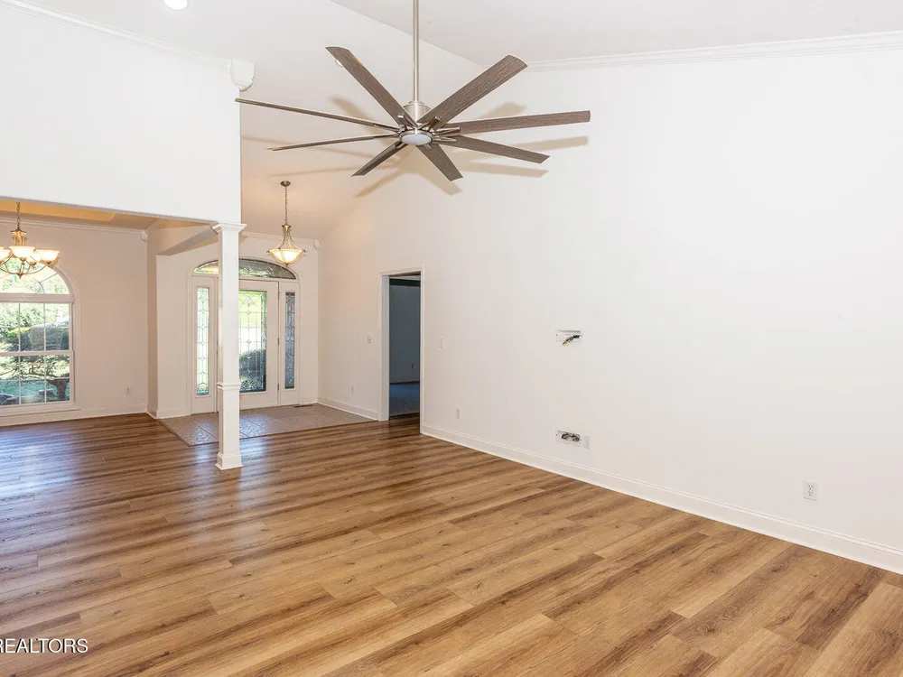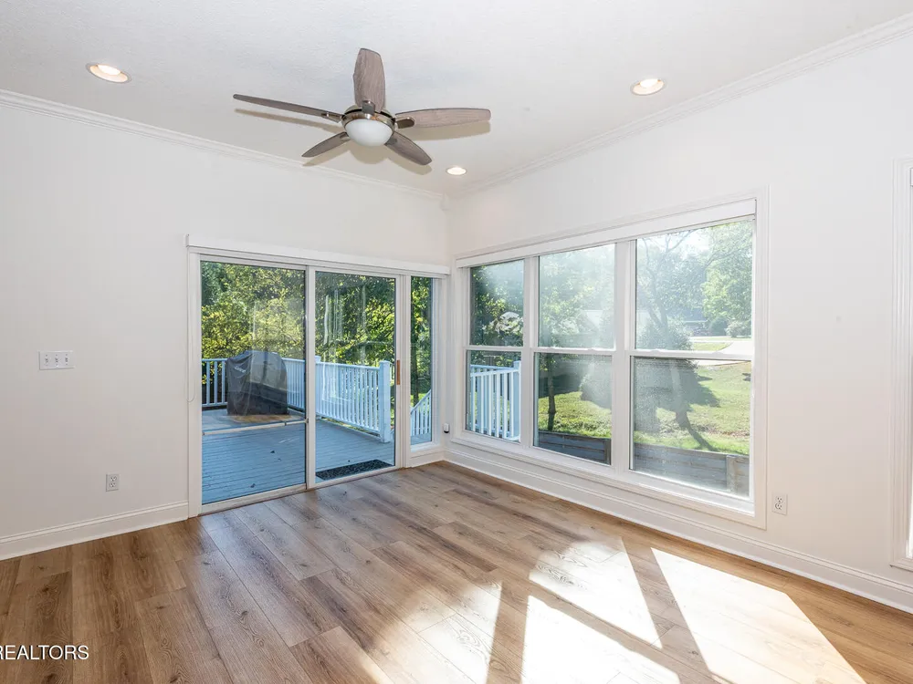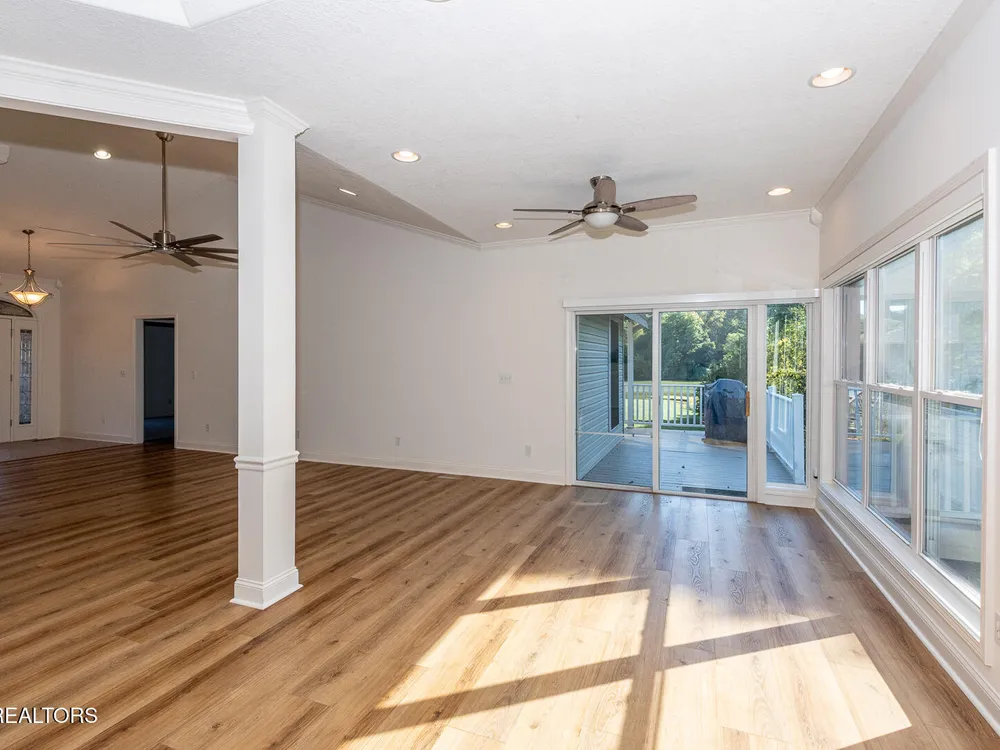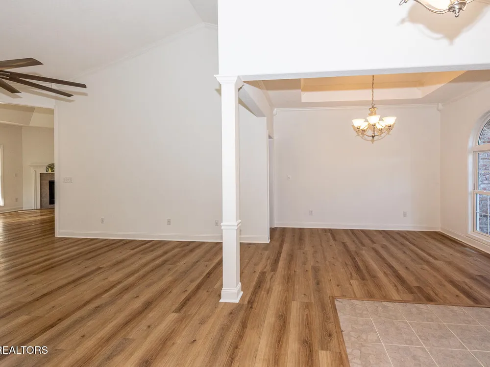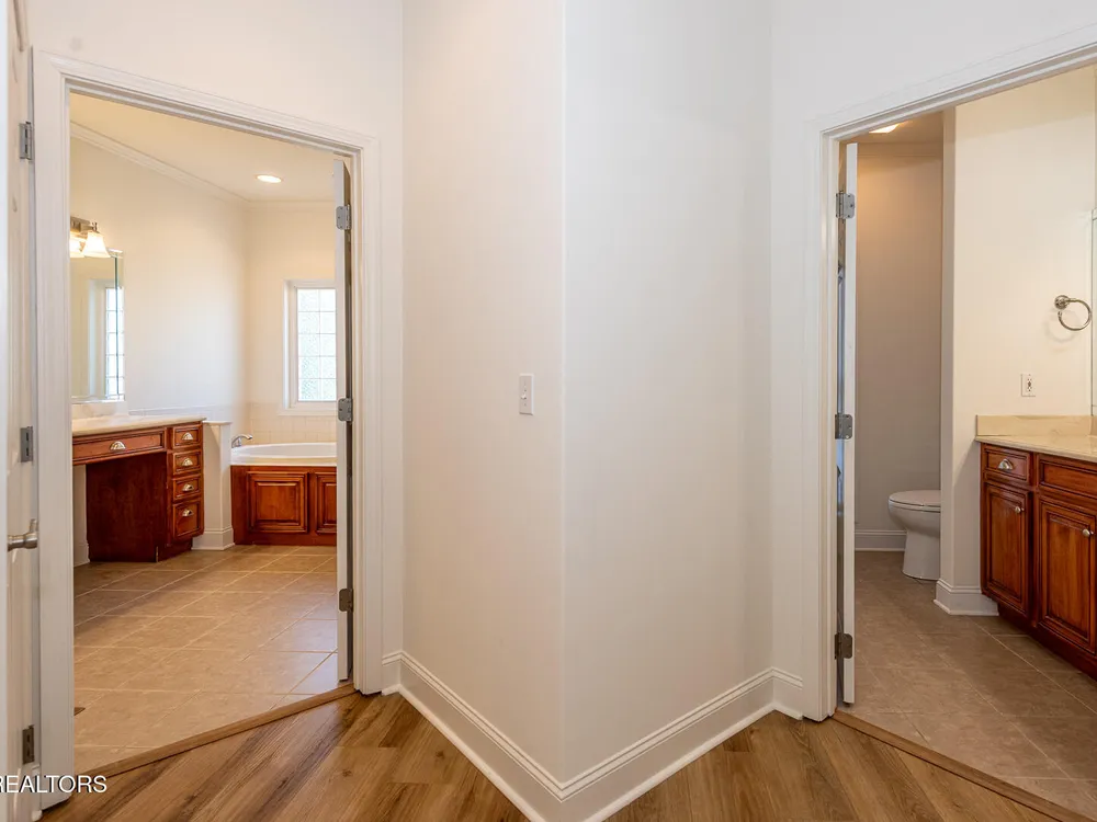 Welcome to your next home in the picturesque Tellico Village community, where lake views, easy water access, multiple golf courses and tennis/pickleball courts create the perfect backdrop for your lifestyle. This thoughtfully designed house offers both comfort and style in this highly desirable Tennessee neighborhood. Step inside to discover beautiful bamboo hardwood flooring that flows throughout the great room, dining area, and sitting room. The open concept living space centers around a cozy gas fireplace with custom mantle and attractive tile work, creating a warm gathering place for family and friends. The kitchen is a home chef's delight, featuring ceramic tile flooring, durable Corian countertops, and a stylish tile backsplash. Custom cabinetry with under and over cabinet lighting provides ample storage, while two pantries offer exceptional organization options. The formal dining room makes an impression with its elegant tray ceiling. The owner's suite provides luxury and convenience with its own tray ceiling and adjacent office complete with built-in desk, cabinets, and shelves. The unique dual bathroom arrangement includes two separate vanities and commodes, a relaxing jetted tub, and a connecting tiled shower. Two walk-in closets ensure plenty of storage space. Additional features include a practical laundry room with sink, cabinets, and space for extra refrigeration, a two-car side-entry garage, and outdoor living spaces including a main level deck with awning and lower patio. Beyond the property, Tellico Village offers outstanding amenities and a strong sense of community. Enjoy nearby attractions, recreational opportunities on the lake, and the peaceful atmosphere of this well-established neighborhood. The quality construction of this three-bedroom, three-and-a-half-bathroom home provides both durability and comfort for years to come.