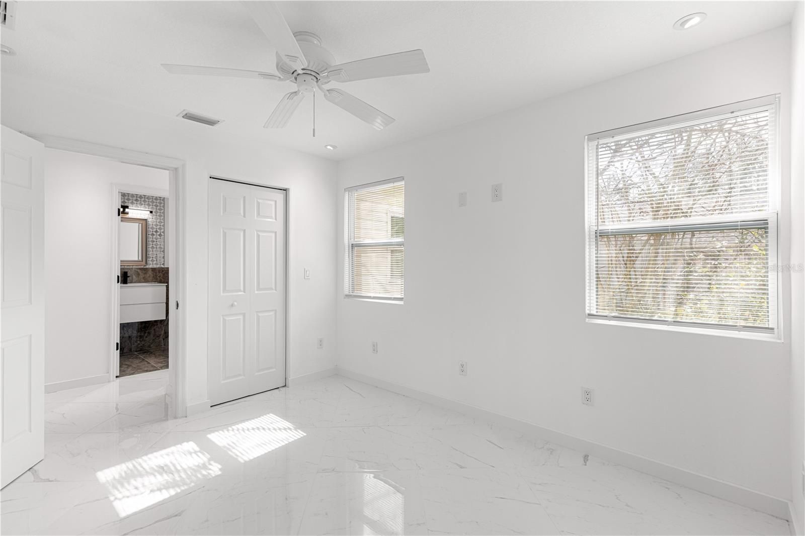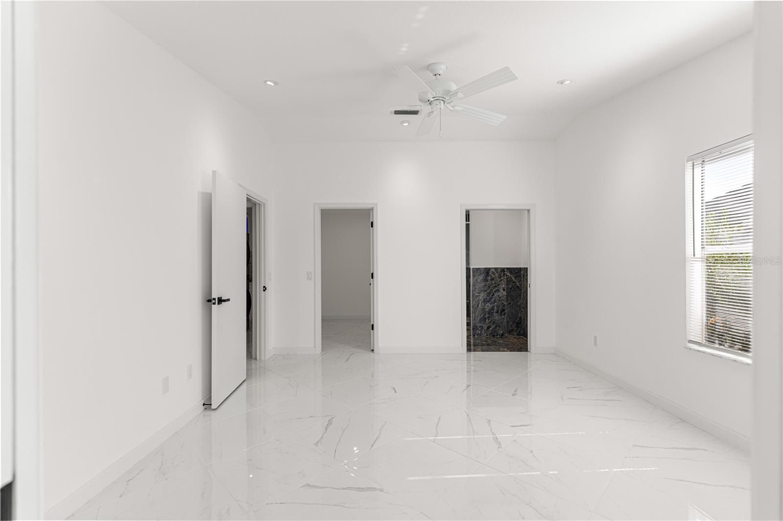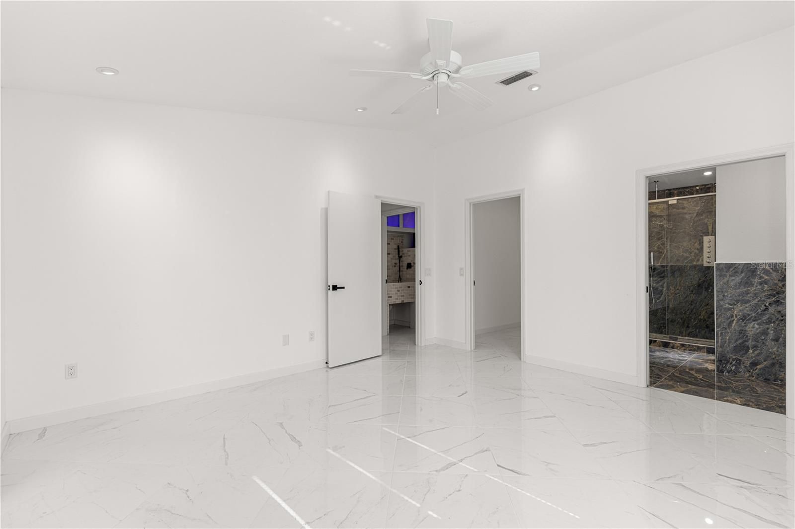 - Built-in Features, Ceiling Fan(s), High Ceilings, Kitchen/Family Room Combo, Living/Dining Room, Open Floorplan, Main Level Primary, Stone Counters, Walk-In Closet(s), Wet Bar
