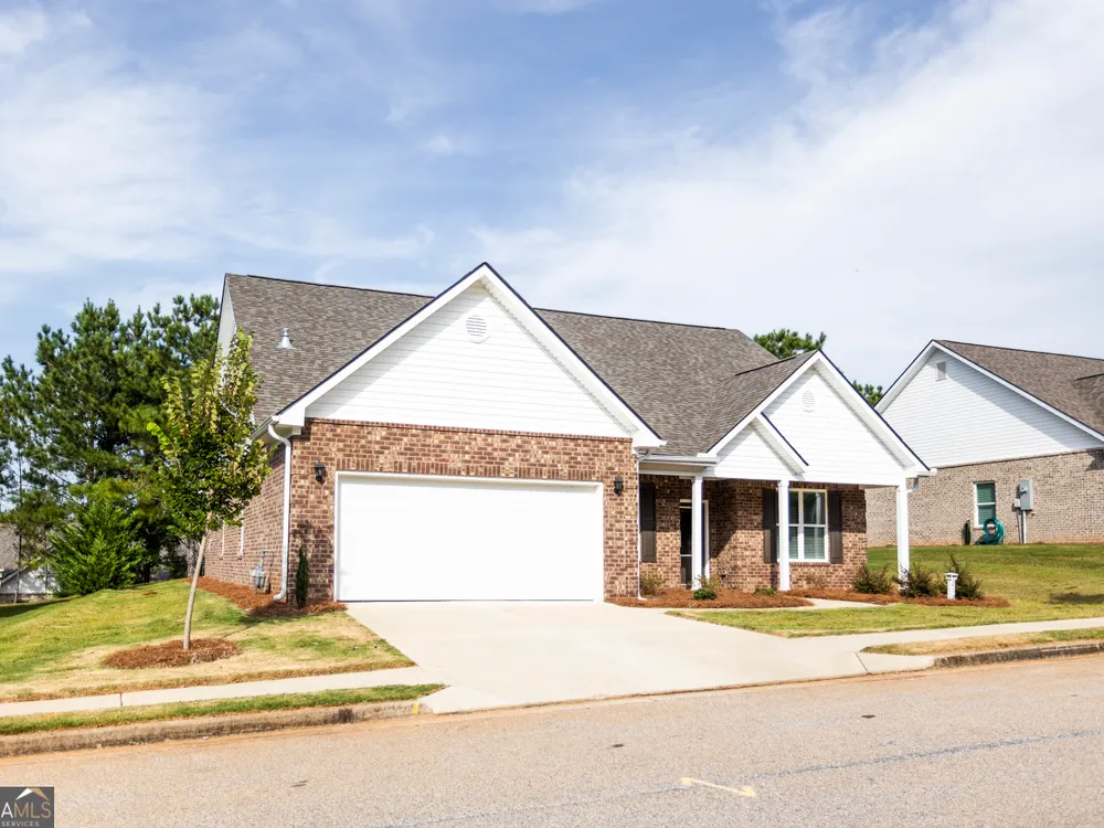 PRICE IMPROVEMENT! Historic Social Circle Active Adult Community! Discover low-maintenance living in this beautifully designed all one-level, four-side brick home! This thoughtfully planned residence offers handicap accessible doorways throughout, making it both comfortable and convenient for every stage of life. Step inside to find an open concept dining/living room-perfect for everyday living and entertaining. The kitchen is appointed with granite countertops and stainless appliances, while the sunroom offers a relaxing retreat filled with natural light. The spacious master suite is complemented by a private bathroom with abundant closet space. The home also includes two additional bedrooms for guests or an office space. Flooring features luxury vinyl tile throughout the living areas with carpet in bedrooms for added comfort. The living room centers around a cozy gas fireplace. Enjoy maintenance-free living with the HOA maintaining the lawn, giving you more time to take advantage of the community clubhouse, fitness center, and sidewalks. The community is just a short walk or golf cart ride to shopping and restaurants of Downtown Social Circle!
