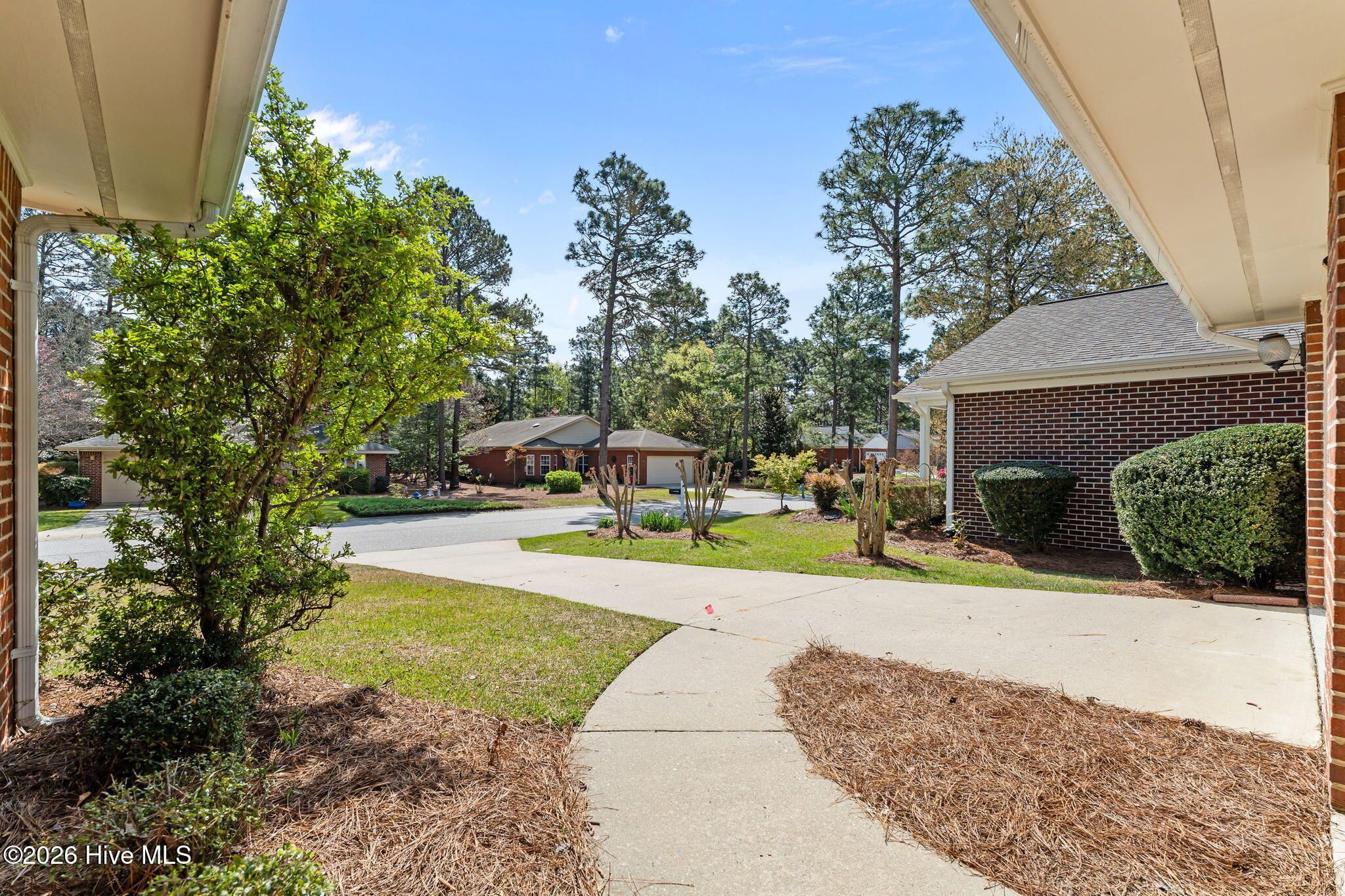 Experience easy living in Pinehurst's certified 55+ community, Pinehurst Trace! This desirable floor plan highlights a large L-shaped kitchen with granite counters, a sunroom overlooking a peaceful natural area, and a remodeled primary bath. Well-designed storage throughout includes a large primary closet, built in shelving to display your treasures, and a garage with wire shelving, making this home a great choice for those looking to right-size. Exterior maintenance is handled by the Owners' Association. A suite of amenities provides opportunities to know your neighbors through social gatherings, fitness, and activities at the clubhouse or on the courts. Convenient location just minutes from the Village of Pinehurst, with easy access to shopping, dining, and medical facilities. New electric range 2026. Washer, Dryer, Refrigerator, and TV convey. A list of items covered by the HOA is available. This home is clean and ready for immediate occupancy. Welcome home!
