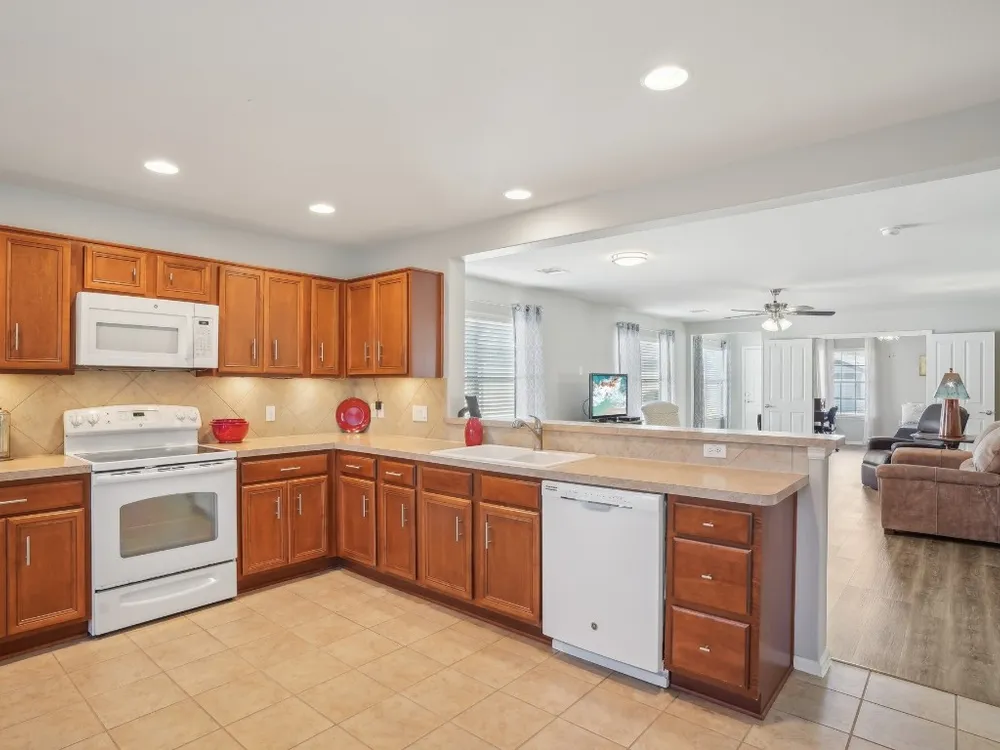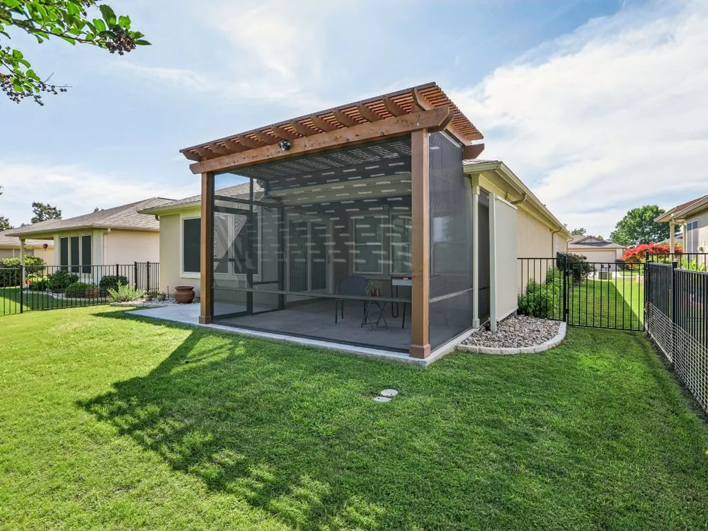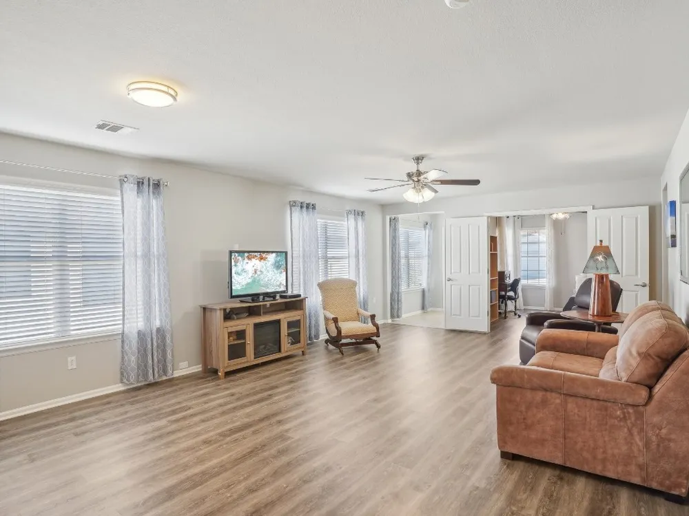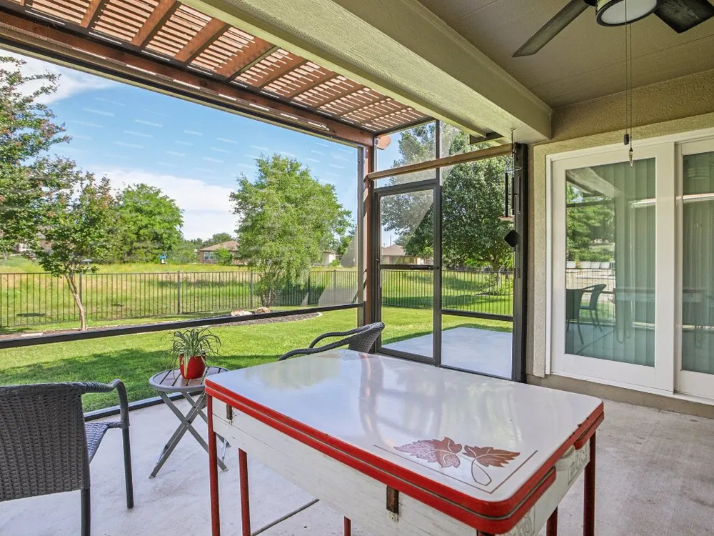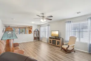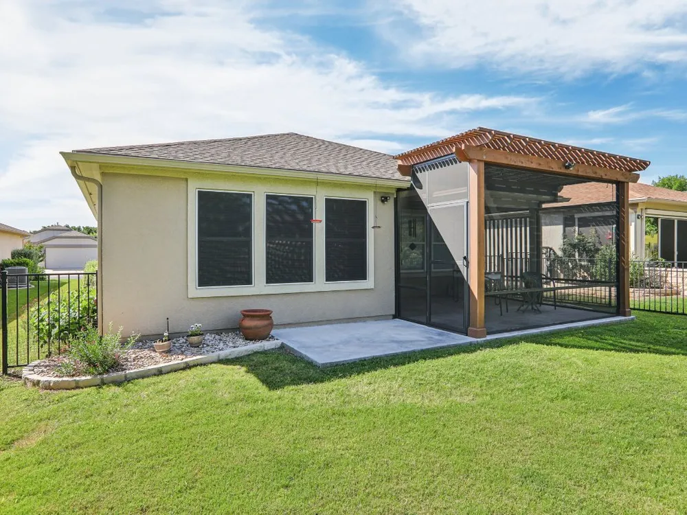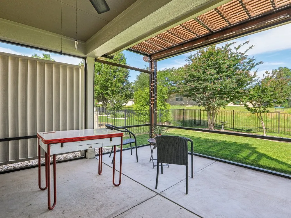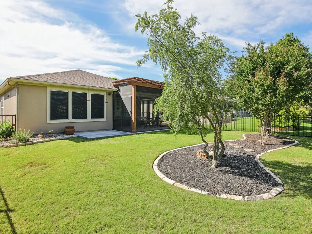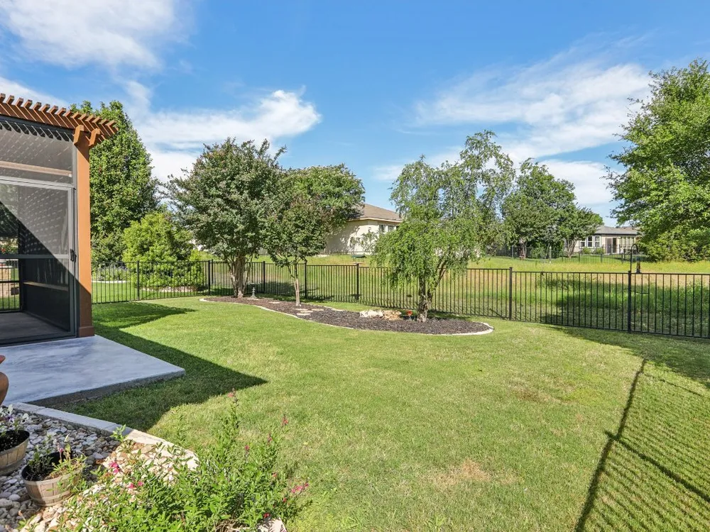 Don't miss this wonderful two bedroom, two bath home that has a flex room, a large screen-in back patio and backs to a greenbelt. If you have been considering Sun City, it might be time for a visit! Open floor plan with the flex room right off the living room. Wonderful large, level yard to enjoy out back! The only carpet is in the primary closet and the home has a UV light air purifier. Located just 5 minutes from the brand new HEB grocery store, car wash and fuel center at the Parmer Ranch Marketplace. No need to get out in traffic!