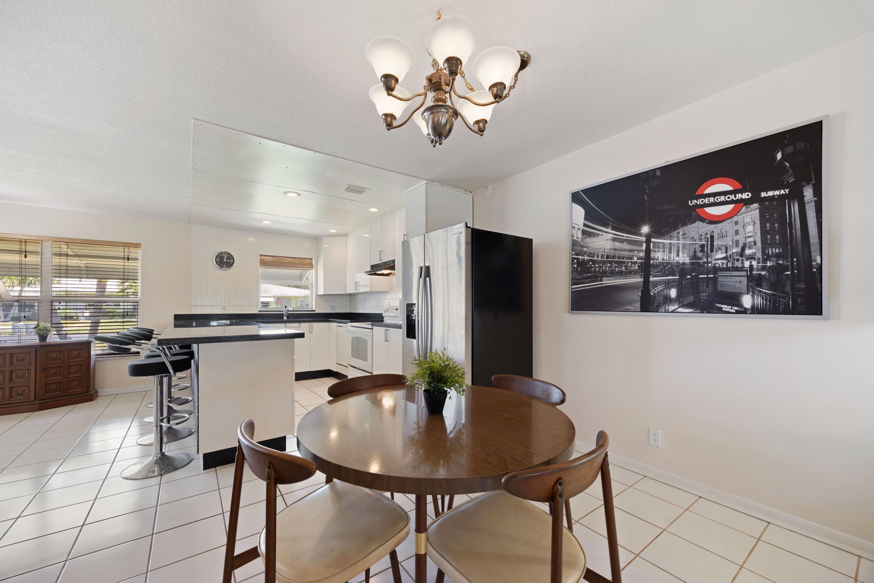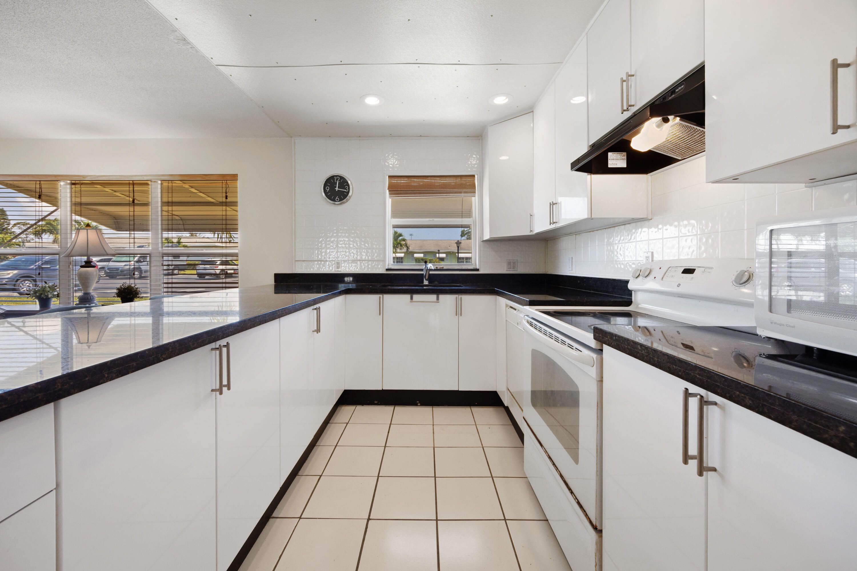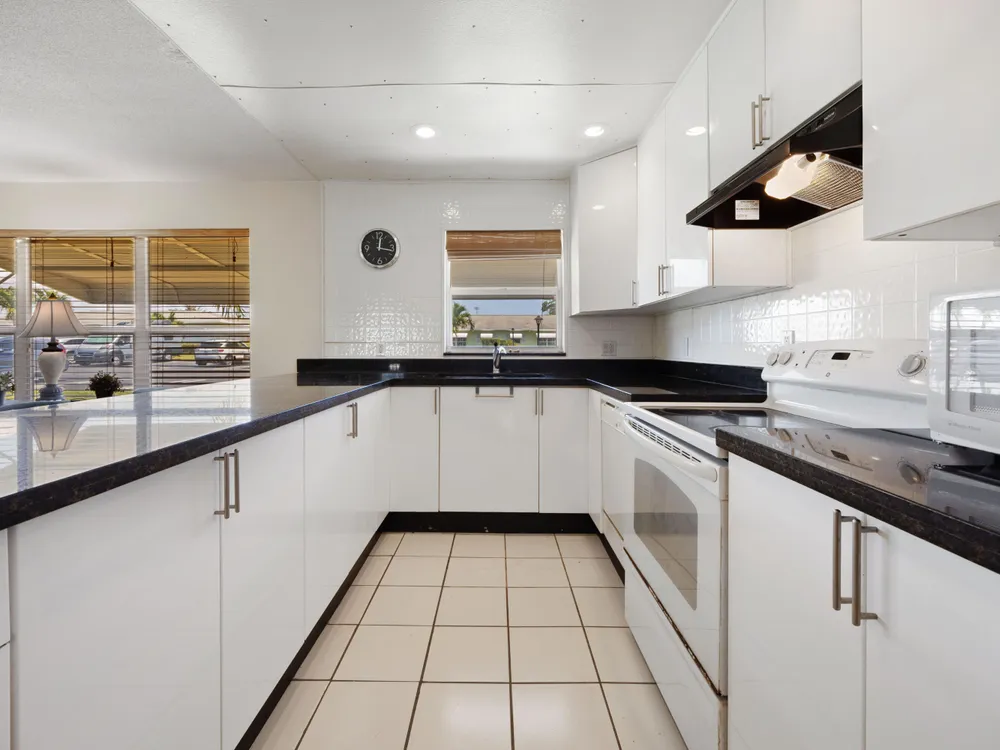 Steps to the Clubhouse! This 1 bedroom/1.5 villa-style condo in High Point Section 2 offers open kitchen with granite countertops, tons of cabinetry, tile backsplash. Tile flooring throughout NO CARPETING. Large primary room with 2 walk-in closets. Additional FL room perfect for guest or a home office. Patio overlooking huge green space. This unit has been in the family for over 30 years and is ready for new owners to update to their taste & style. Unit is offered furnished/turnkey.