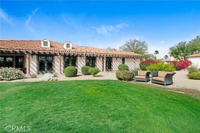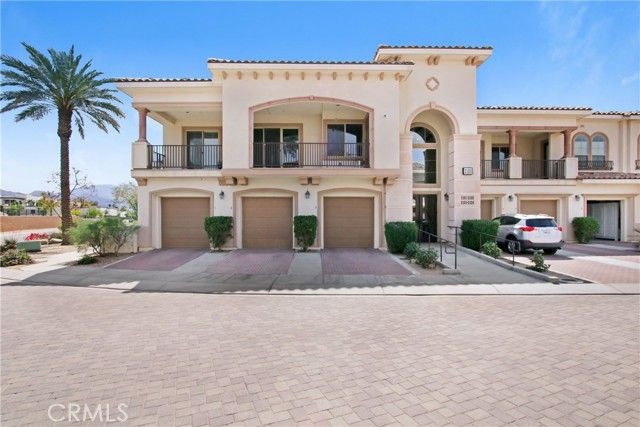 Experience unparalleled luxury in this highly coveted Sorrento – Vista Cielo Plan, ideally situated in one of the most desirable locations. As you step into this expansive open-concept residence, you’ll immediately be captivated by the stunning northern vistas that extend across a generous 33 foot wrap-around balcony. This exquisite condo features two spacious bedrooms, two elegantly appointed bathrooms, and a dedicated office, making it the perfect choice for both a full-time residence or a refined vacation retreat. Impeccably upgraded throughout, this home boasts luxurious granite countertops, a stylish tile backsplash, rich wood shutters, and pristine tile flooring. The addition of owned solar panels ensures exceptional energy efficiency. The comprehensive HOA covers nearly all aspects of living, including water, cable, internet, trash, fire and earthquake insurance, landscape and building maintenance, as well as access to an array of social and recreational activities. The property includes an elevator or stairs for access. Villa Portofino's 30,000 sqft. Clubhouse is one of the most impressive in the valley, offering a state-of-the-art 100-seat movie theater, two exquisite restaurants, a billiards room, game rooms, a fully equipped gym, a heated pool and spa, bocce ball, shuffleboard, and much more. Conveniently located just minutes from the world-class Eisenhower Medical Center, the McCallum Theater, The Shops on El Paseo, and other premium shopping destinations. Schedule your private tour today and discover the epitome of resort-style living in this exclusive 55 and better community.