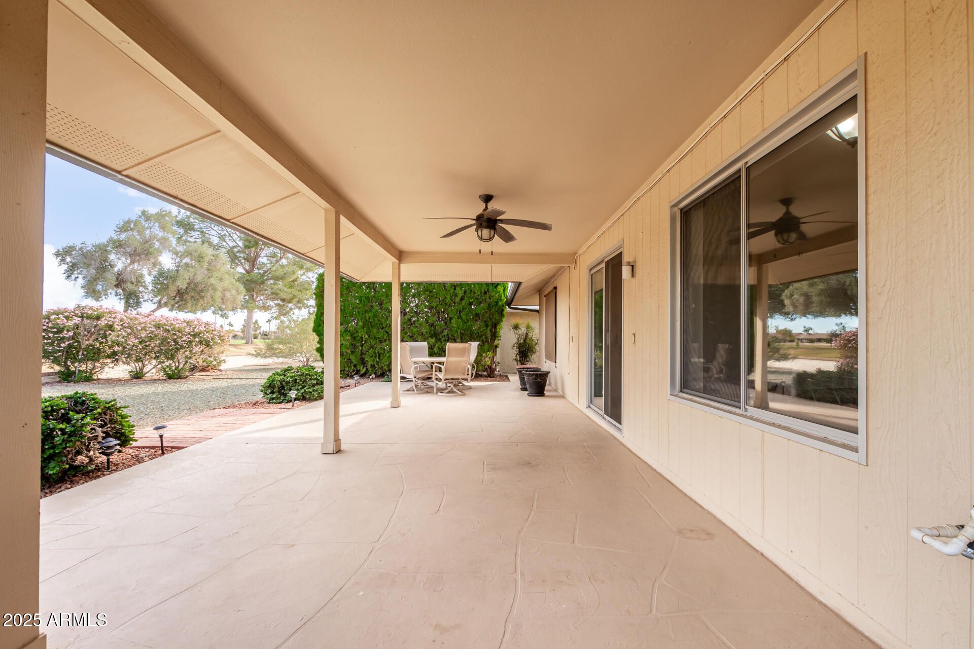 If a true 3 Bedroom home in Sun City West is what you are looking for look no further. This golf course home features a large tiled family room overlooking a double fairway on the Stardust Golf Course. Granite countertops with SS Appliances. If extra space is what you need this home offers a formal dining room and living room. The master bedroom is split from the other 2 bedrooms with 2 walk in closets. Both of the other 2 bedrooms also feature walk in closets. A large covered patio with misters to enjoy our beautiful Arizona weather. Garage does have space for golf cart parking. Roof was replaced in 2021 when solar was placed on roof. A/C is less than 10 years old. This home is ready for its new owners!!