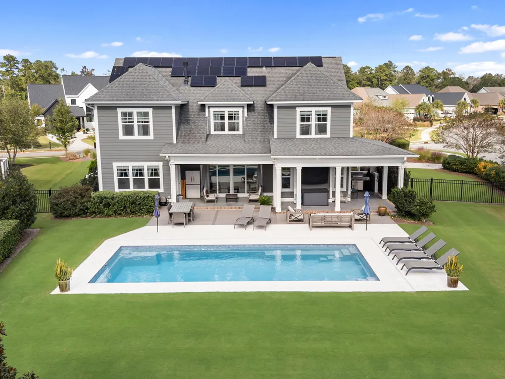 2101 Cokesbury Court/2050 Colony Pines Drive Exceptional Golf Course Home with Saltwater Pool and Thoughtful Design!Experience refined living in this beautifully appointed 4-bedroom, 3.5-bathroom home offering scenic views of the Cape Fear National golf course and tranquil pond vistas. Perfectly positioned on a large corner lot, the property features manicured landscaping, a wraparound rear porch, and a saltwater pool with upgraded decking ideal for outdoor entertaining or quiet relaxation.Inside, an open-concept layout seamlessly connects the kitchen, dining, and living areas, creating a welcoming flow for both everyday living and gatherings. The main-level primary suite offers a peaceful retreat with a spacious bathroom, while the adjacent study provides the perfect work-from-home setup.Upstairs, you'll find three additional bedrooms, two full bathrooms, and a versatile loft or second living area complete with built-in shelving and dual desks. A spacious bonus room sits above the 2-car garage, perfect for a gym, media room, or hobby space. An additional large flex room above the third garage offers even more versatility for recreation, storage, or guest use.Outdoor living shines with a retractable screen transforming the covered porch into a screened retreat, and a dedicated gas line makes grilling a breeze. The oversized three-car garage provides ample storage and flexibility for vehicles, boat storage, or workshop space.Every detail has been thoughtfully designed to elevate comfort and convenience--an exceptional opportunity to enjoy the best of life in Brunswick Forest's premier golf community.