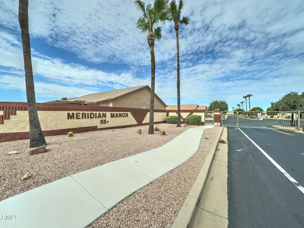 You will love the layout of this home as well as the upgrades. Open floor plane plus you get the den that you want with the room sizes that will accommodate even the largest furniture. The exterior is as nice with an oversized covered rear patio. Located on a wonderful corner lot in the east Valleys choice for gated 55 plus living! Come see what has made Meridian Manor the choice in the East Valley for 55 plus living! Great clubhouse with library, fitness center, 6 billiard tables, craft room and Ballroom. Pickleball, shuffleboard and heated pool and Jacuzzi have a spectacular view of the Superstition Mountains! You'll love it here!