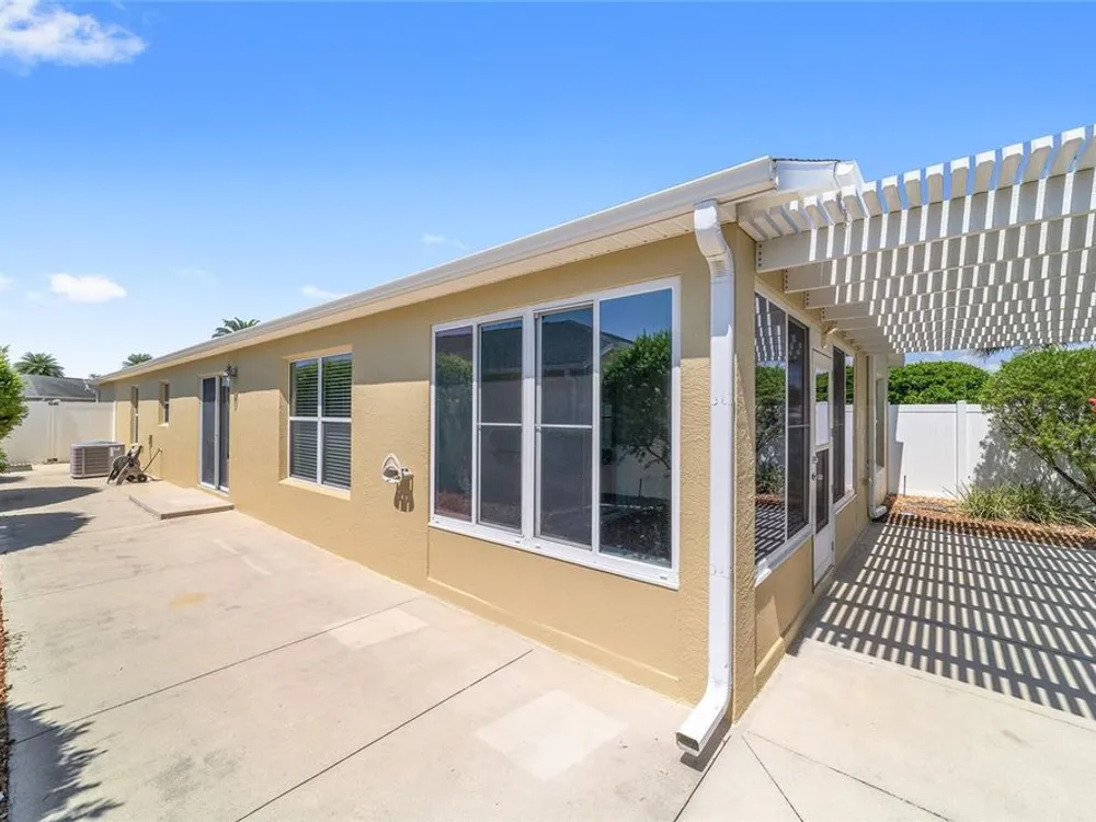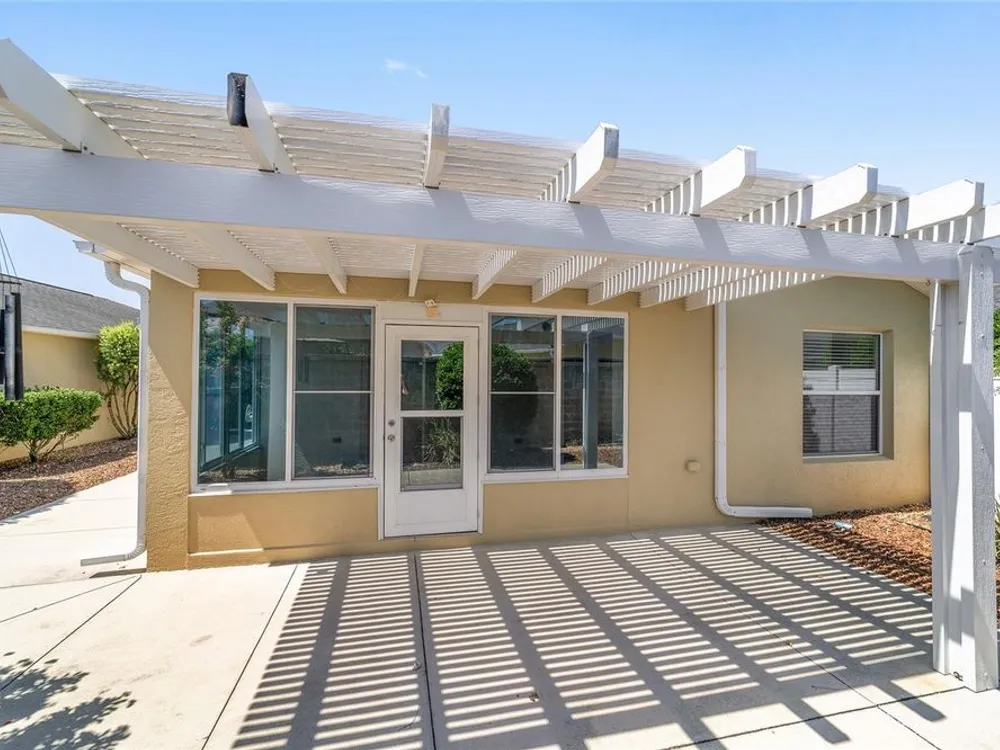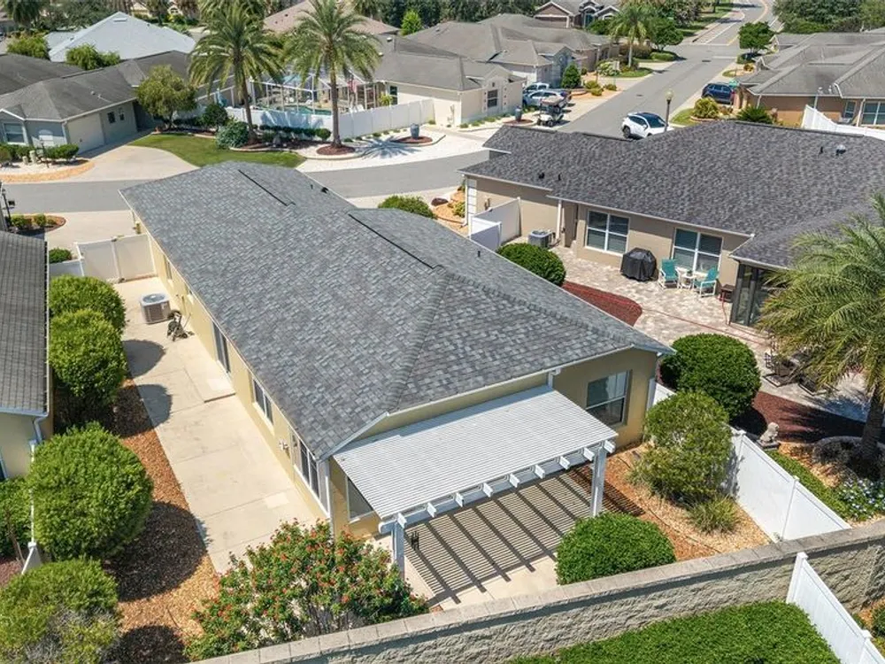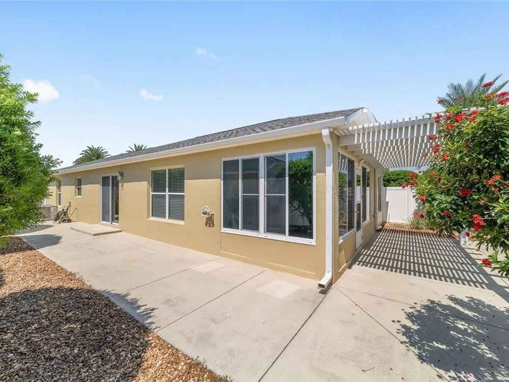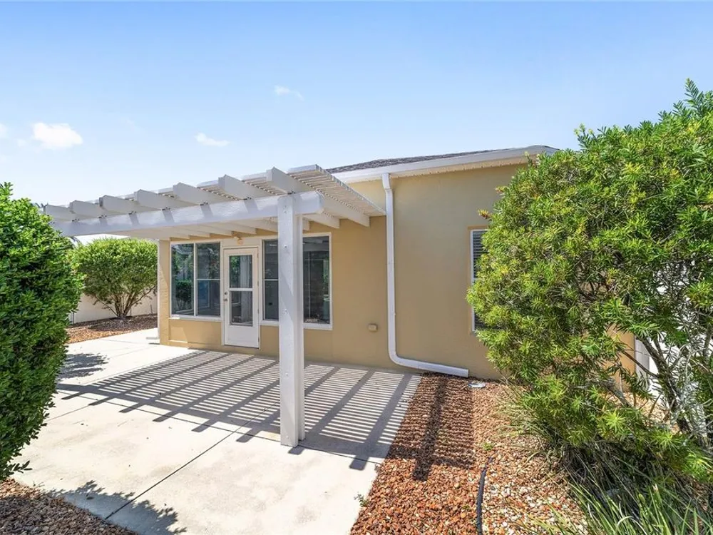One or more photo(s) has been virtually staged. QUICK CLOSE AVAILABLE***NEUTRAL EXTERIOR PAINTING 7/28/2025!!! BRAND NEW ROOF JUNE 2025 ON THIS BEAUTIFULLY UPDATED!!! LOCATION LOCATION LOCATION!! 3 BED / 2 BATH FOXGLOVE COURTYARD VILLA in the highly desirable VILLAGE OF TAMARIND GROVE! This BLOCK & STUCCO villa is the perfect blend of COMFORT and CONVENIENCE. Featuring NO CARPET THROUGHOUT, the home offers a modern, EASY-TO-CLEAN, LOW MAINTENANCE YARD. LUXURY VINYL PLANK FLOORING in the main living areas and TILE in the kitchen and laundry room. VAULTED CEILINGS W/ NO POPCORN THROUGHTOUT THE MAIN LIVING AREA AND PRIMARY BEDROOM. The kitchen shines with BRAND NEW STAINLESS STEEL APPLIANCES, QUARTZ COUNTERTOPS AND PULL-OUT SCHELVES in the cabinets, and a PANTRY CLOSET making meal prep a breeze while adding a touch of CONTEMPORARY ELEGANCE. INSIDE LAUNDRY w/ tub sink and the garage is big enough to fit your car and golf cart! NEW HOT WATER HEATER 2023 Enjoy your PRIVATE, ENCLOSED BACKYARD W/ ADDED PERGOLA — a serene retreat ideal for RELAXING, GARDENING, or ENTERTAINING. This LOW-MAINTENANCE home is MOVE-IN READY and provides an effortless lifestyle in one of The Villages’ most CENTRAL LOCATIONS. IN THE VILLAGE OF TAMARIND GROVE is ideally situated between LAKE SUMTER LANDING and BROWNWOOD PADDOCK SQUARE, just a short golf cart ride to shopping, dining, golf, and recreation. You're also close to the Sterling Heights Rec Center, Seabreeze Rec Center, and Bonita Pool. Don't miss the opportunity to live in this PRIME LOCATION, start living The Villages Lifestyle! Schedule your showing today and make this STYLISH, LOW-MAINTENANCE VILLA your new home! LOW BOND BALANCE OF $9,421.74