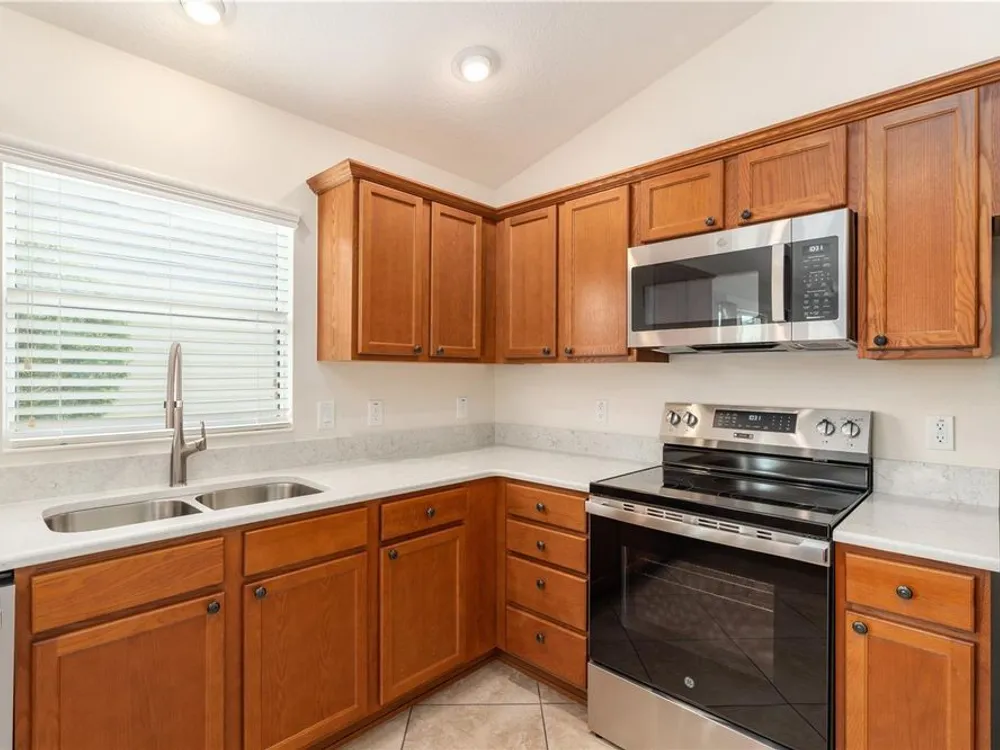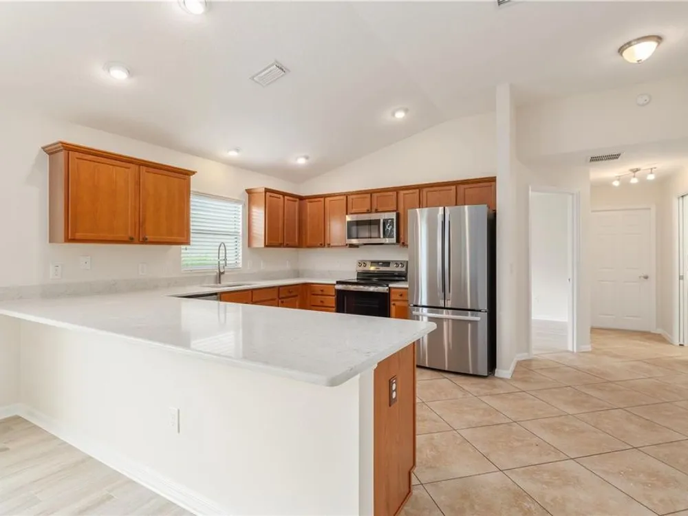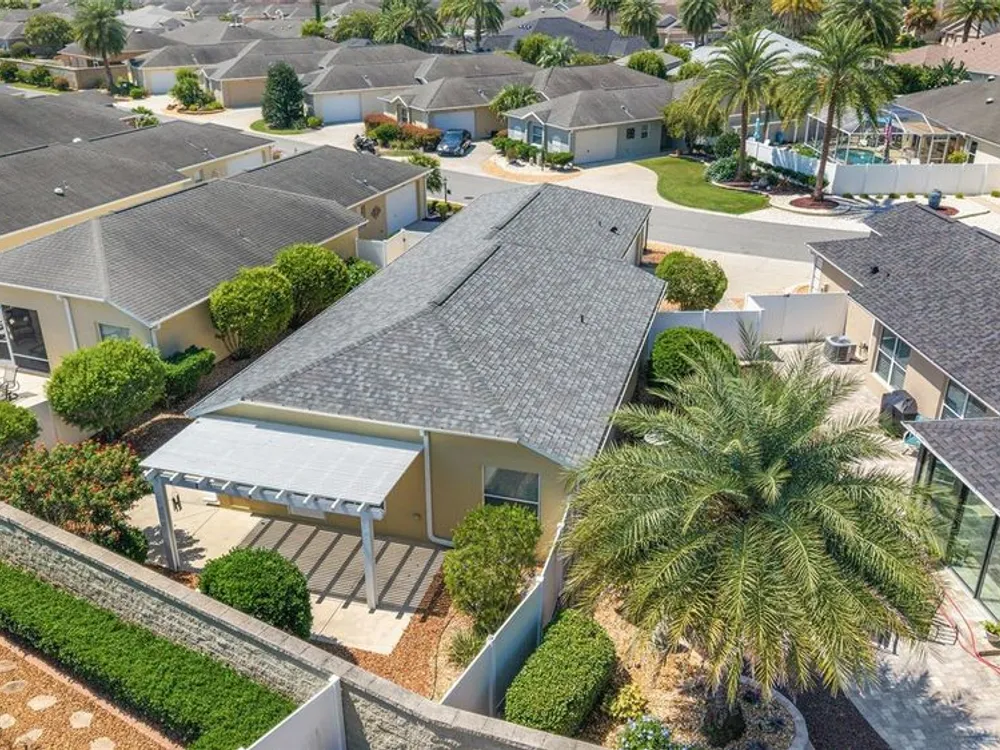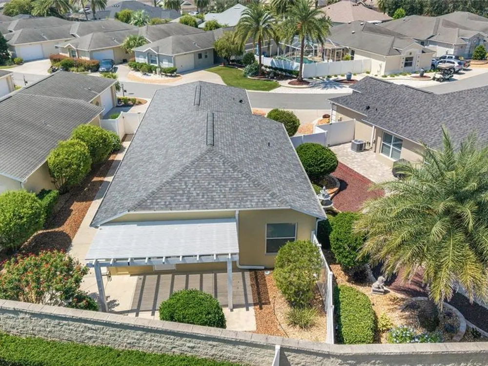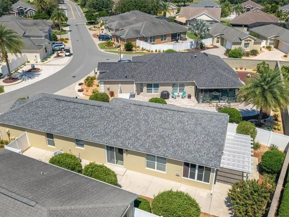 One or more photo(s) has been virtually staged. QUICK CLOSE AVAILABLE***NEUTRAL EXTERIOR PAINTING 7/28/2025!!! BRAND NEW ROOF JUNE 2025 ON THIS BEAUTIFULLY UPDATED!!! LOCATION LOCATION LOCATION!! 3 BED / 2 BATH FOXGLOVE COURTYARD VILLA in the highly desirable VILLAGE OF TAMARIND GROVE! This BLOCK & STUCCO villa is the perfect blend of COMFORT and CONVENIENCE. Featuring NO CARPET THROUGHOUT, the home offers a modern, EASY-TO-CLEAN, LOW MAINTENANCE YARD. LUXURY VINYL PLANK FLOORING in the main living areas and TILE in the kitchen and laundry room. VAULTED CEILINGS W/ NO POPCORN THROUGHTOUT THE MAIN LIVING AREA AND PRIMARY BEDROOM. The kitchen shines with BRAND NEW STAINLESS STEEL APPLIANCES, QUARTZ COUNTERTOPS AND PULL-OUT SCHELVES in the cabinets, and a PANTRY CLOSET making meal prep a breeze while adding a touch of CONTEMPORARY ELEGANCE. INSIDE LAUNDRY w/ tub sink and the garage is big enough to fit your car and golf cart! NEW HOT WATER HEATER 2023 Enjoy your PRIVATE, ENCLOSED BACKYARD W/ ADDED PERGOLA — a serene retreat ideal for RELAXING, GARDENING, or ENTERTAINING. This LOW-MAINTENANCE home is MOVE-IN READY and provides an effortless lifestyle in one of The Villages’ most CENTRAL LOCATIONS. IN THE VILLAGE OF TAMARIND GROVE is ideally situated between LAKE SUMTER LANDING and BROWNWOOD PADDOCK SQUARE, just a short golf cart ride to shopping, dining, golf, and recreation. You're also close to the Sterling Heights Rec Center, Seabreeze Rec Center, and Bonita Pool. Don't miss the opportunity to live in this PRIME LOCATION, start living The Villages Lifestyle! Schedule your showing today and make this STYLISH, LOW-MAINTENANCE VILLA your new home! LOW BOND BALANCE OF $9,421.74