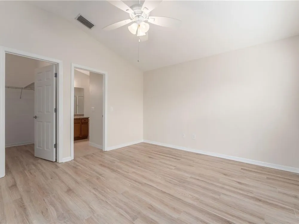- Ceiling Fan(s), High Ceilings, Open Floorplan, Stone Counters, Thermostat, Vaulted Ceiling(s), Walk-In Closet(s)