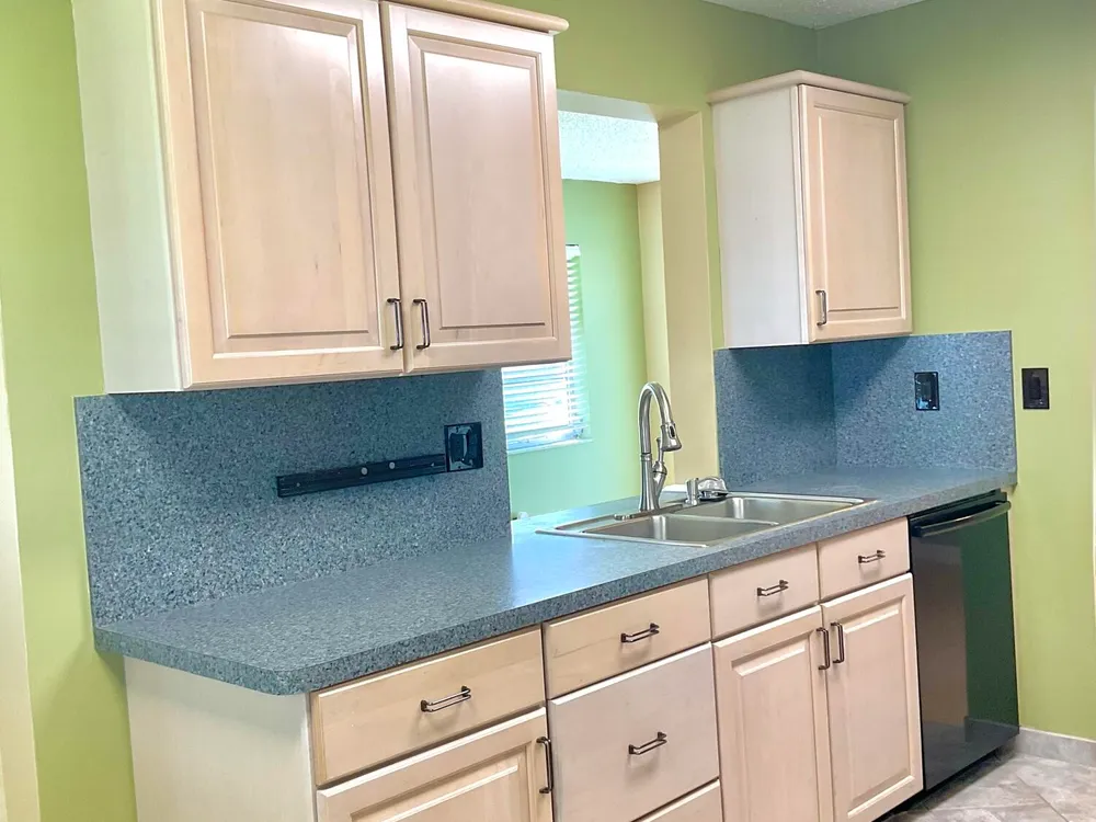 POPULAR REGIS MODEL LOCATED ON ONE OF THE NICEST LOTS IN LEISUREVILLE. DOUBLE DRIVEWAY WITH FRONT PATIO. TILE THROUGHOUT, NEW FANS AND WOOD BLINDS. NICE OPEN KITCHEN WITH NEW APPLIANCES AND PLENTY OF WOOD CABINETS WITH PULL OUT DRAWERS. THIS HOUSE FEATURES PLENTY OF CLOSET SPACE AND EXTRA STORAGE IN THE GARAGE WITH NEW WASHER/DRYER. PRIMARY BATH HAS NEW VANITY WITH DOUBLE SINKS. THERE IS A LARGE SCREENED BACK PATIO WITH ROLLADEN SHUTTERS OVERLOOKING A BEAUTIFULLY LANDSCAPED GREEN AREA. ACTIVE 55+ COMMUNITY WITH LOTS OF ACTIVITIES AND POOL. WIFI AND CABLE INCLUDED IN THE LOW HOA FEE!!