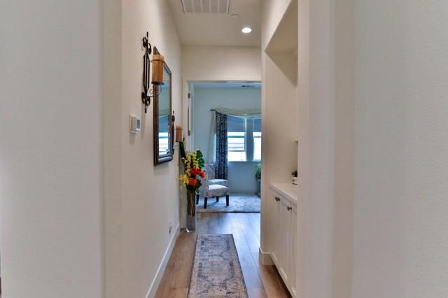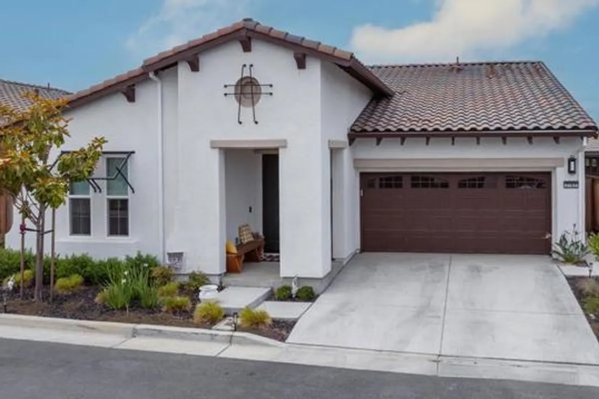 Elegance nestled in Hollister's vibrant Twin Oaks 55+ retirement community. Welcome to this striking Spanish-inspired facade spanning 1902 sqft, 2 bedrooms, 2 baths, complete with a versatile office. The grandeur of 10-ft ceilings feels both expansive & intimate. The heart of the home is it's open living area, gourmet kitchen, spacious & warm dining & living room. Host friends for dinner in the chef-inspired kitchen, walk-in pantry & ample counter space. Living room opens to a covered patio, serene spot for morning coffee, sunsets, sip wine w/neighbors in your private outdoor oasis. Den offers a quiet reading nook, study, or sitting room to unwind with your favorite podcast. Every corner from its sleek finishes to it's thoughtful layout, reflect it's quality & still in sparkling new-home condition. Featuring a tankless water heater, water softener, OWNED solar, Reverse Osmosis system, & EV charging port. Twin Oaks offers concierge led amenities to bring neighbors together to foster friendships focusing on fitness classes, educational and culinary workshops, planned group travel itineraries and vibrant social events. The Cannery Club offers exclusive access to state-of-the-art fitness facilities, a chefs kitchen, movement yoga studio, pickleball courts, pool & more.