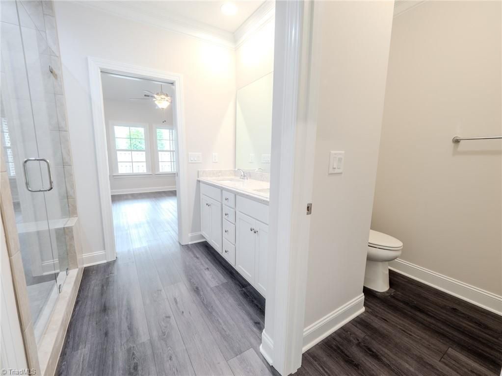This New Construction Franklin all brick townhome features One level living with 3 Br., 2 Bath, and 2 car garage. Dramatic cathedral ceiling in Great Room w/skylights. Huge kitchen with large island with whirlpool appliances including refrigerator, White cabinets, quartz countertops with a subway tile Backsplash. Large Primary suite with a cathedral ceiling, Deluxe Master Bath including quartz countertops and a 5’ tile shower. The Master Bedroom closet is off the bathroom. The home has LVP flooring throughout, quartz countertops in kitchen and baths, gas fireplace With stone to the ceiling in the family room. Levered Door handles throughout. Great Location close to everything. Low Davidson County Taxes. A 5,000 sq. ft resident clubhouse to include a saltwater swimming pool, pool table, putting green and TV. You will also be within minutes of major highways, Medical Centers, Hanes Mall, and other shopping.