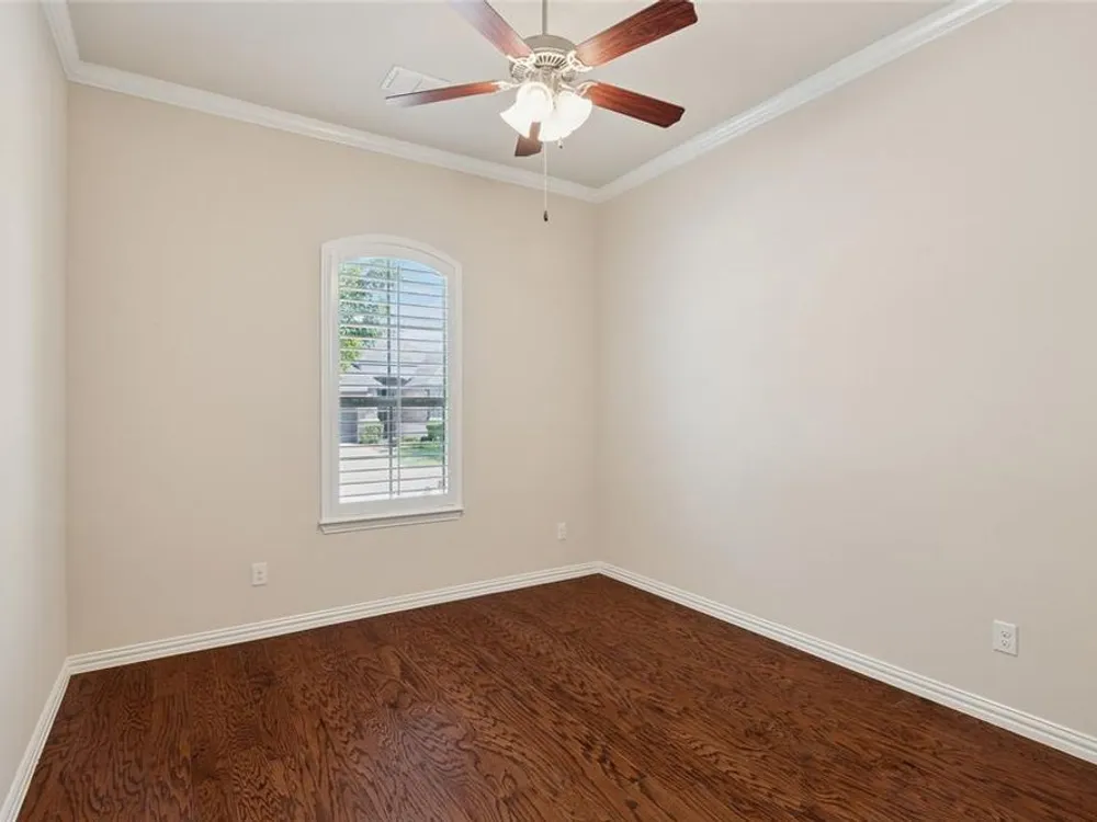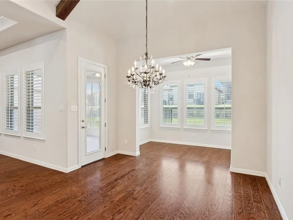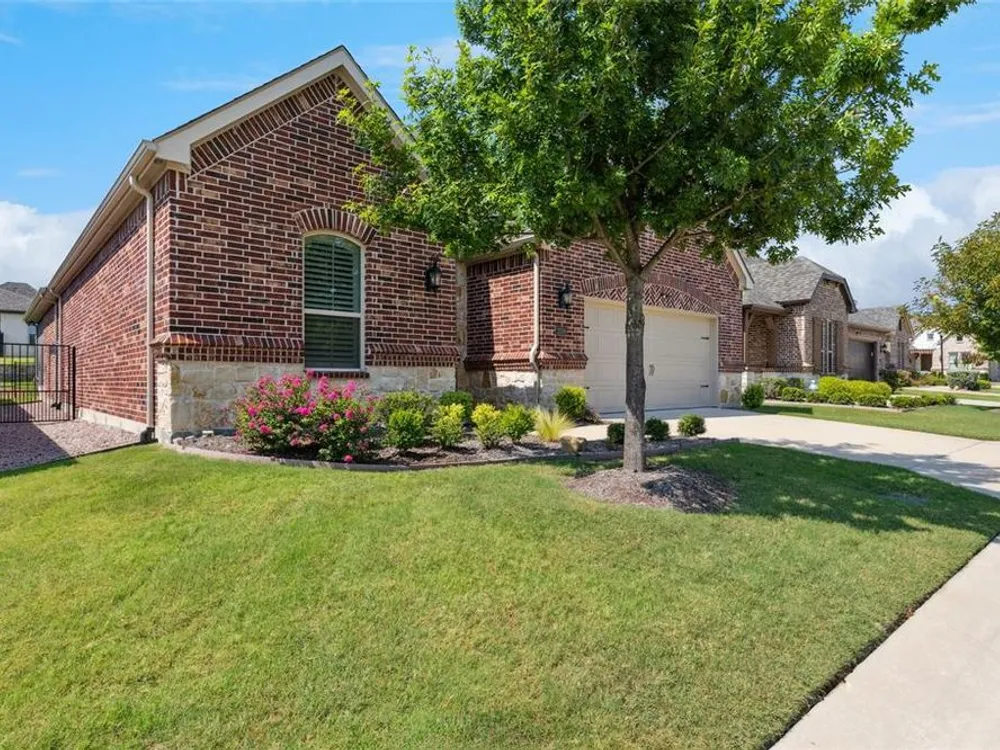 Welcome to this stunning and elegant home in excellent condition, in an exclusive 55+ active adult gate community with numerous upgrades. Hardwood flooring throughout, cathedral and recessed ceilings, and crown molding in the living areas and primary suite. With a unique media room that was carefully designed for family entertainment . The gourmet kitchen is a chef’s dream, featuring granite countertops, a built-in island, stainless steel appliances (cooktop, microwave, dishwasher, and vent-a-hood), lighting, and updated fixtures. Additionally, a fantastic laundry room and ample storage spaces with access to the master walking closet and hall, add to the home’s functionality and charm. Throughout the home, you’ll find custom plantation-style shutters, adding charm and elegance, designed with energy efficiency in mind. This home is foam encapsulated, ensuring low utility costs even during hot Texas summers where style, comfort, and low-maintenance living come together perfectly. Enjoy year-round relaxation in the screen enclosed back patio, offering a private retreat perfect for morning coffee or a good tea in the evening. Recent updates include a new roof (2024) and a new garage door (2024) for peace of mind. The 2-car garage is a true bonus, offering a floored attic and a motorized storage lift, making downsizing from a larger home easier to manage. Just 6 minutes away is the beautiful Elmer W Oliver Nature park with 2 miles of scenic walking trails. Less than a block away is a fitness center with a 4,500 sq. Ft. activity center a swimming pool, and a pickleball court. All designed to enhance your active lifestyle. THE COMMUNITY ASSOCIATION TAKES CARE OF LAWN MAINTENANCE, LAWN WATERING, LANDSCAPING, EXTERIOR UPKEEP, REPAIRS, AND AS WELL AS EXTERIOR HOME INSURANCE