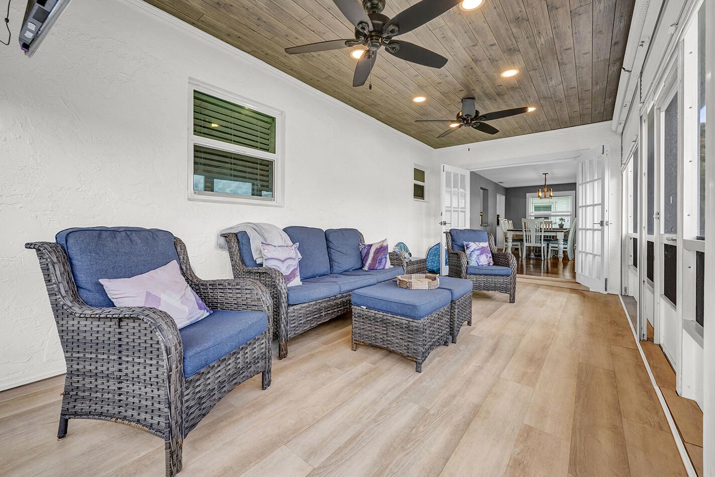 Welcome to this beautifully updated and meticulously maintained home, ideally situated on a quiet interior lot with expansive side and backyard space. Step inside to a bright, inviting layout filled with warmth and comfort. Thoughtful upgrades include a renovated kitchen, new flooring, impact windows, and generous closet space. Enjoy the large covered and screened patio—perfect for relaxing or entertaining year-round. Located in a vibrant 55+ community, residents enjoy a clubhouse with fitness center, ballroom, card and billiards rooms, library, computer room, heated pool, spa, saunas, and more. A rare opportunity for comfort, convenience, and lifestyle.