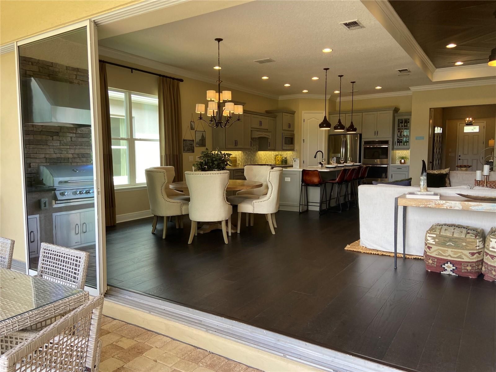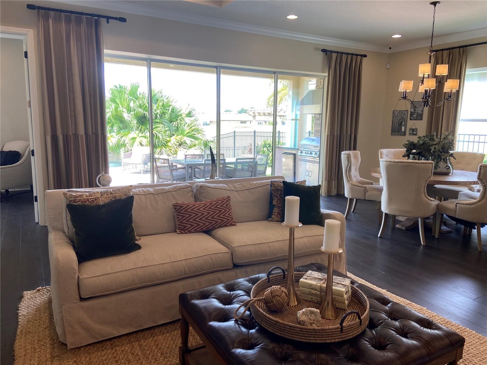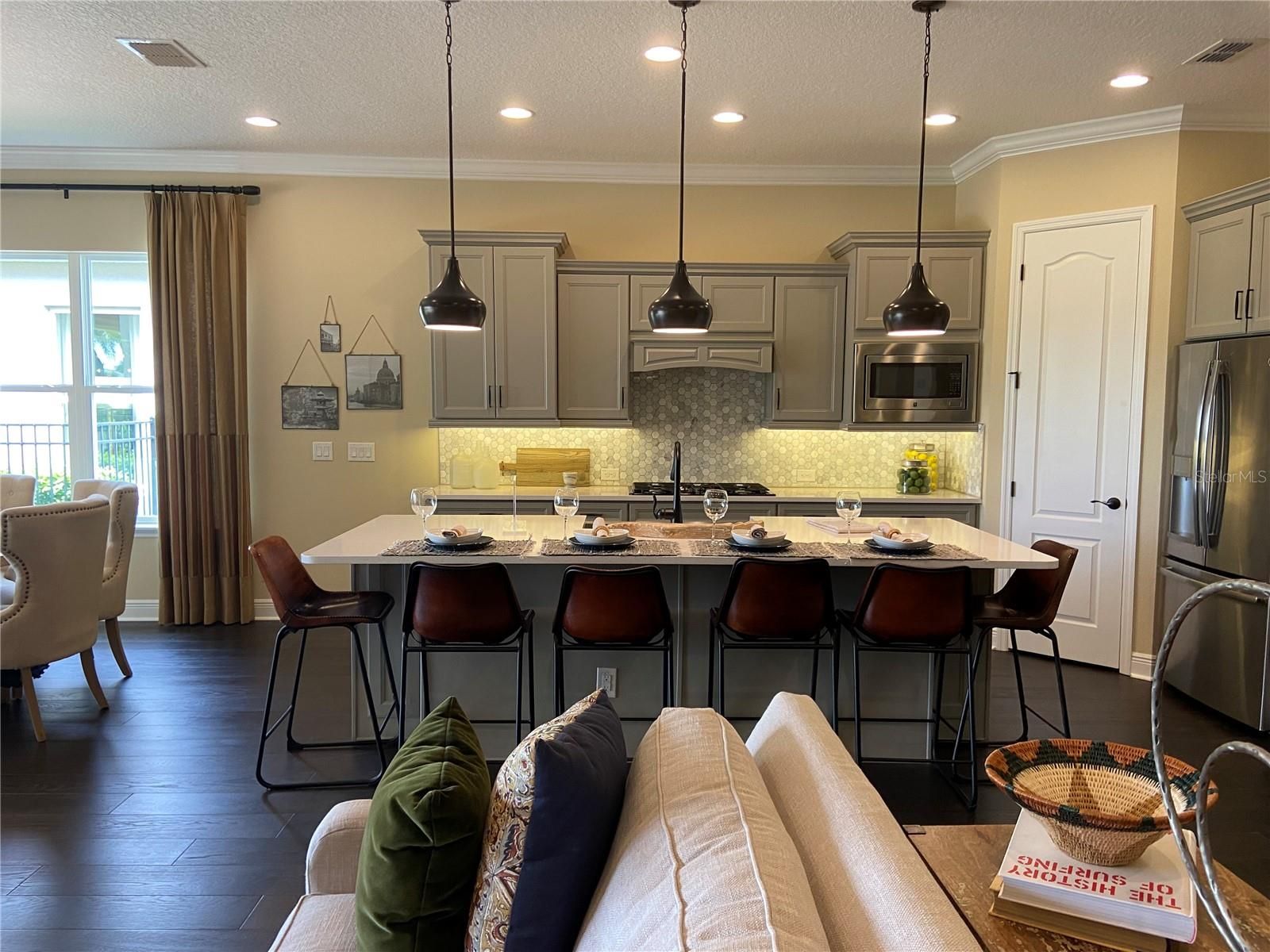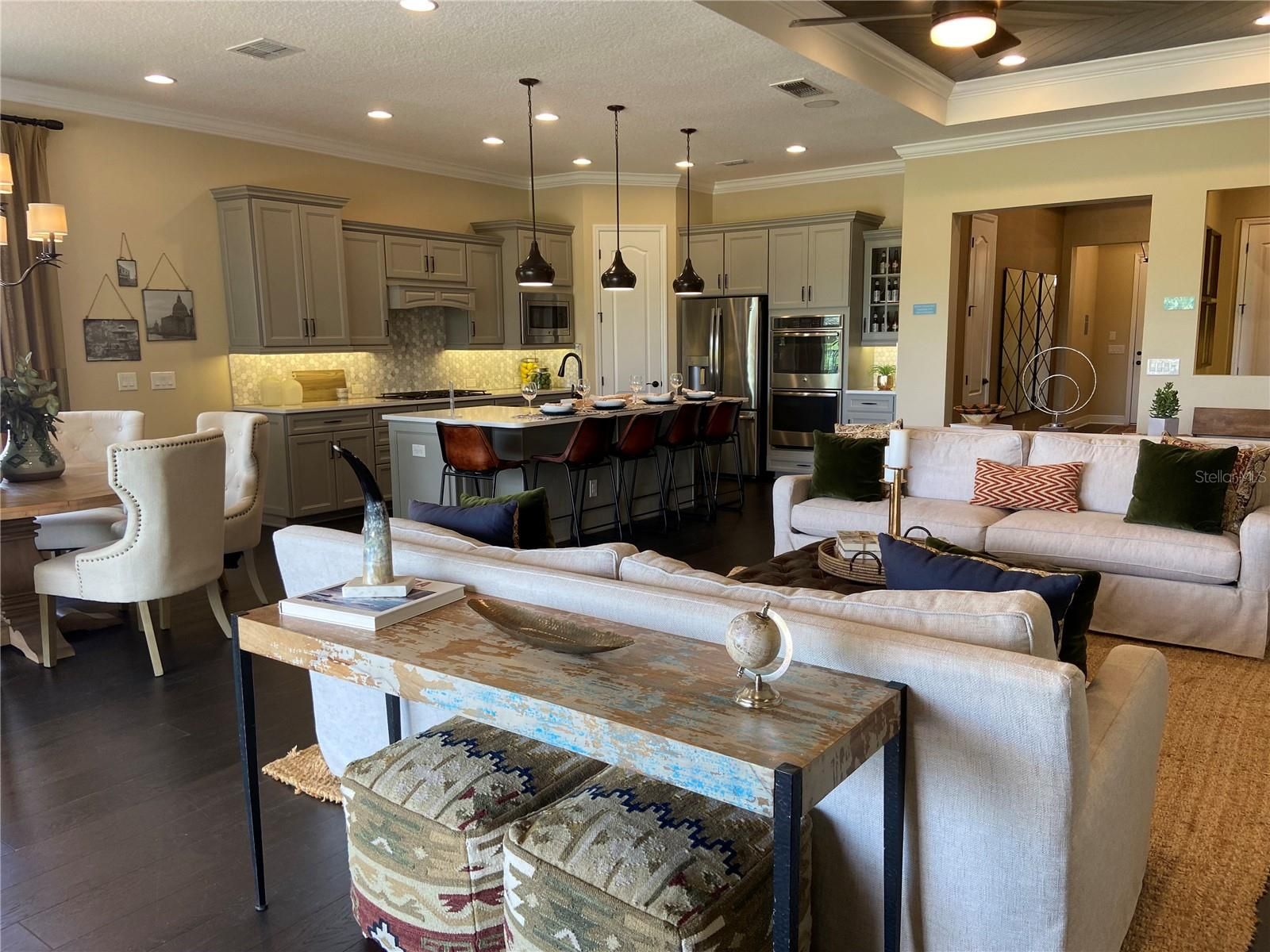 Here is your chance to own one of the original model homes (St. Thomas model) at K. Hovnanian's Four Seasons of Orlando in Kissimmee, Fl. This home features so many one of a kind upgrades in their design. Four panel sliding door to the private oaisis backyard with its own splash pool and fireplace plus entertaining area. Absolutely beautiful for sure. The upgraded kitchen features a double oven, quarts counters, under counter lighting and plenty of cabinets. You will enjoy the private office space with built-in cabinets and desk area. The primary bedroom and closet are stunning. Enjoy crown molding through-out the home and hardwood floors except for the two guest bedrooms which are carpeted. Additional upgrades include: coffered ceilings in the foyer and living room (with a beautiful wood in-lay), laundry room cabinets, summer kitchen, a splash pool, fire place, fenced in property, mature professionally landscaped, mudroom has custom drop station, 2.5 car garage. COMES FURNISHED.