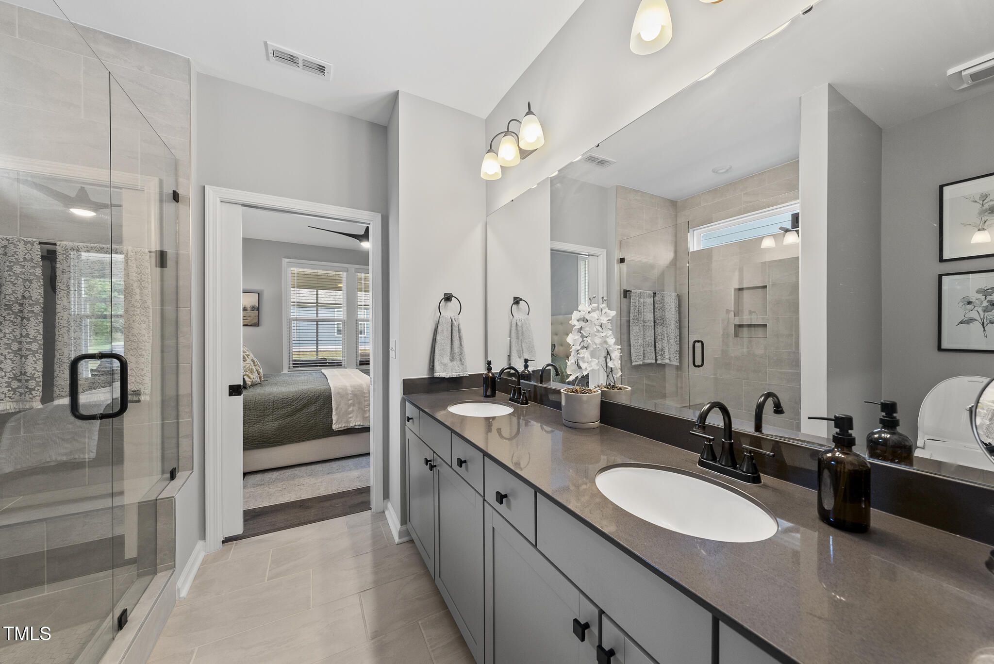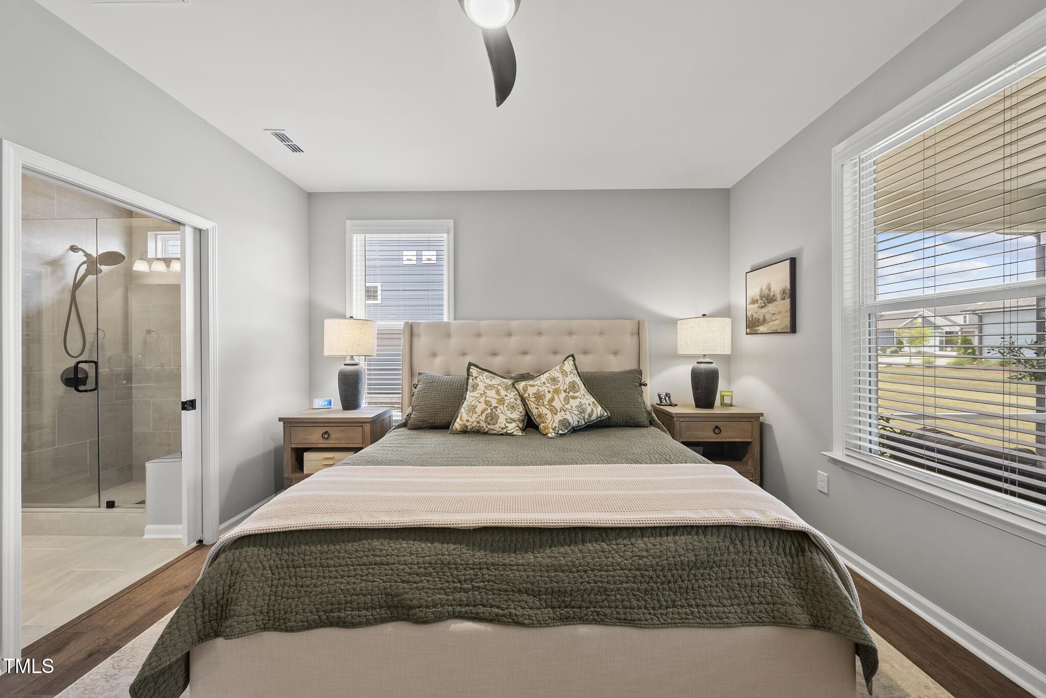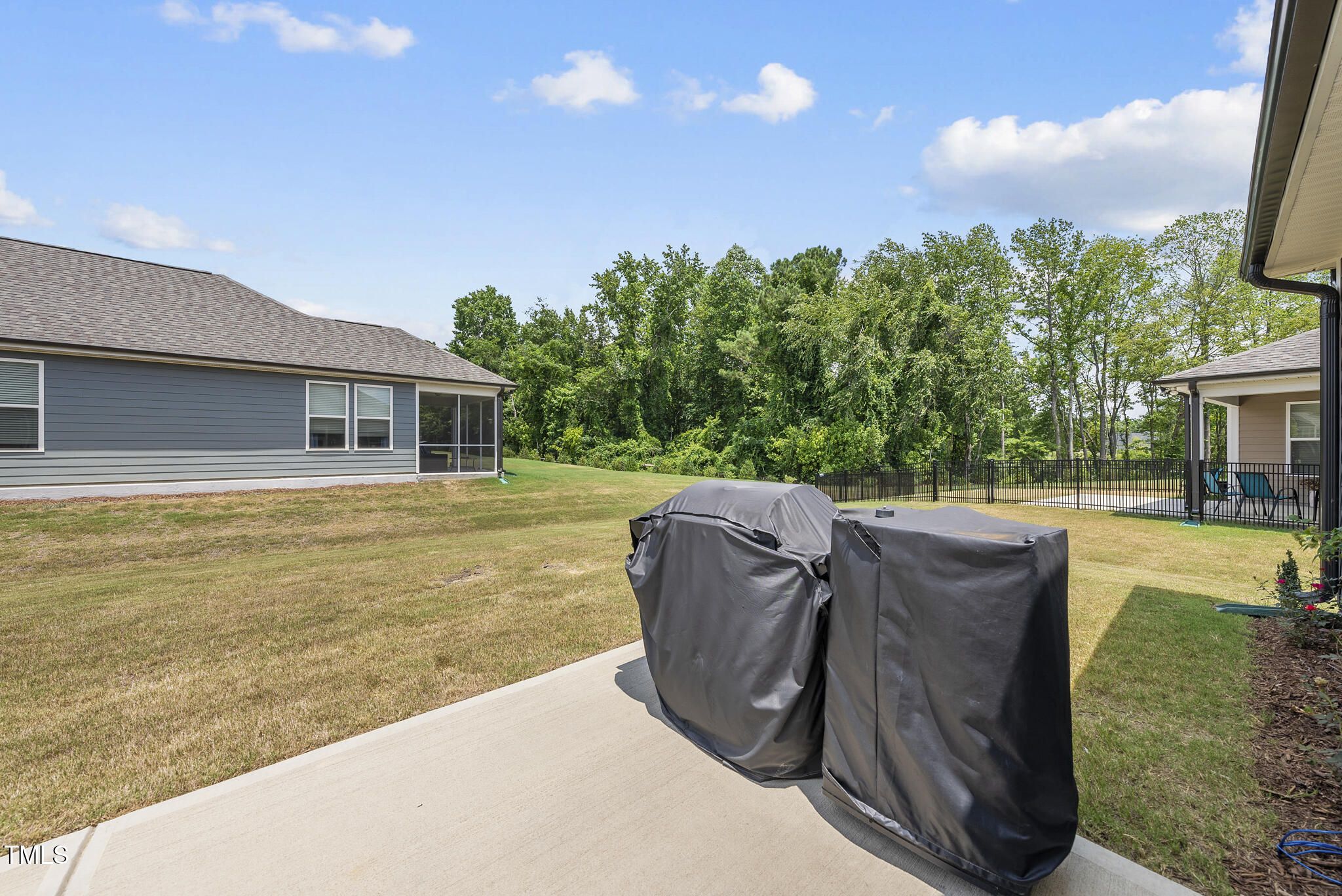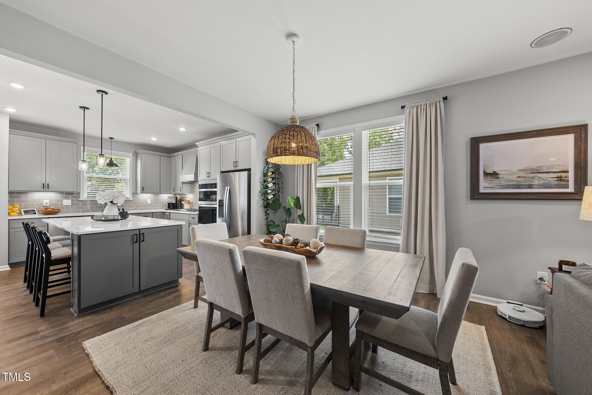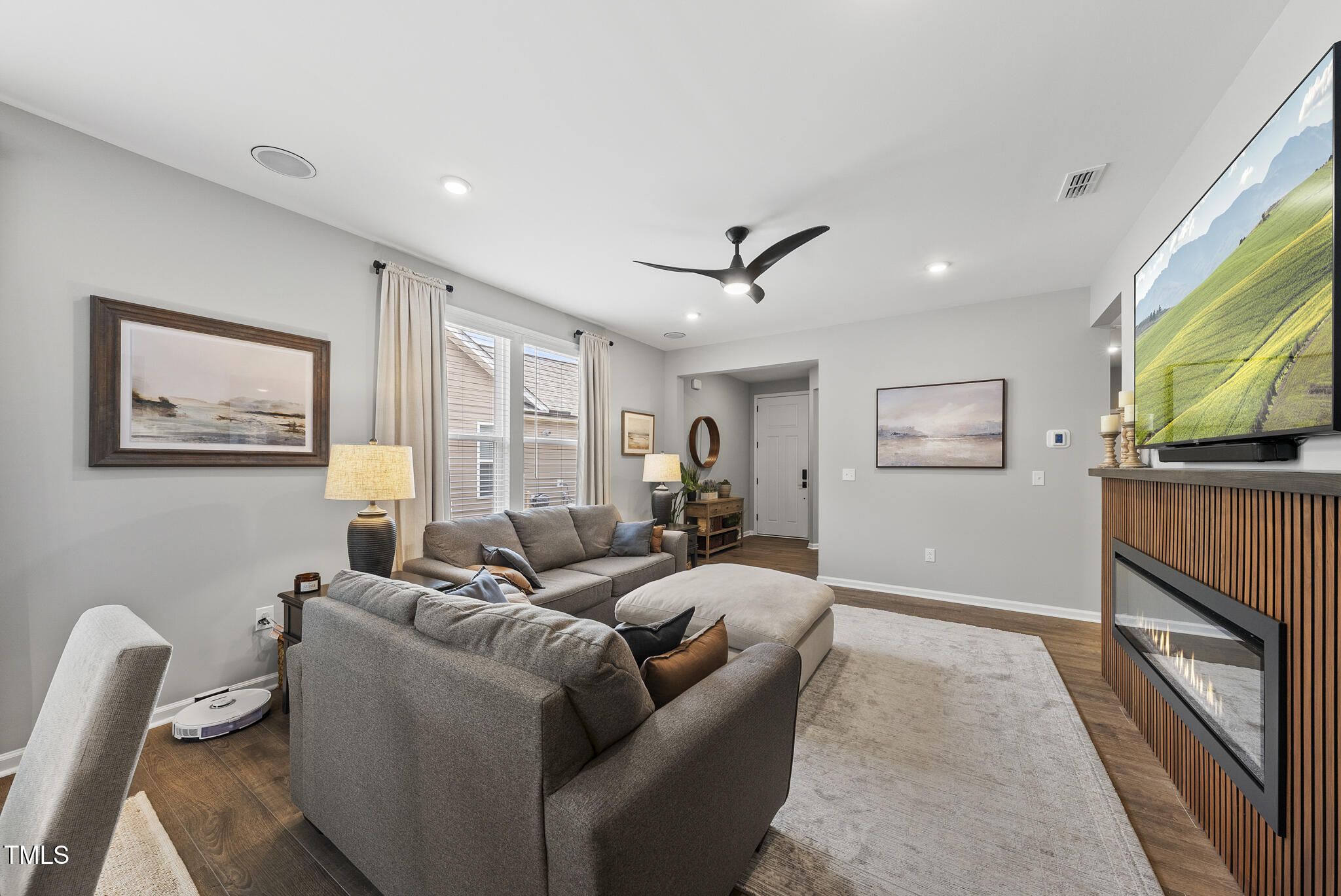 Don't miss this rare opportunity to own a practically brand-new, meticulously maintained home built in 2024 in the highly desirable Del Webb Carolina Gardens community. This gorgeous ranch-style home shines with style and sophistication, showing like a professionally decorated model. This is your chance to join one of the most vibrant active adult communities in the region. Built in March 2024, this popular Compass model home is currently the only one of it's kind for sale in the neighborhood. Still under full builder warranty, this home offers peace of mind along with premium upgrades throughout. The exterior features durable Hardiplank-style siding, a 30-year architectural shingle roof, and an upgraded radiant barrier sheathing system for enhanced energy efficiency and year-round comfort. Step inside to discover a thoughtfully designed layout with luxurious vinyl plank flooring throughout the entire home—there is no carpet anywhere. The main living area is warm and inviting, with modern LED flush-mount lighting and a custom-built fireplace that creates an elegant focal point. Built-in surround sound enhances both the gathering room and the screened patio, perfect for entertaining or relaxing to your favorite music. The stunning kitchen is a true highlight, featuring upgraded cabinetry with soft-close doors and drawers, quartz countertops, a custom backsplash, under-cabinet lighting, a sleek built-in wall oven and microwave combination, and Stainless Steel Refrigerator. The open layout flows beautifully into the living and dining areas, making everyday living and hosting a breeze. The sizeable, luxurious primary suite offers a peaceful retreat, complete with a generous walk-in closet and a spa-inspired en suite bath that includes quartz counters, upgraded cabinetry, and a beautifully tiled walk-in shower. A clever drop-door laundry chute connects the primary closet to the laundry room for added convenience and storage. Step outside to enjoy the peaceful screened patio or take advantage of the extended uncovered area, perfect for grilling, dining, or lounging in the sun. The garage is fully finished, painted, and trimmed, with professionally applied epoxy flooring, offering a polished, clean look that's both practical and stylish. This home is also equipped with smart features, including a video doorbell, smart thermostat, and hardwired data connections in the living area and primary bedroom. Best of all, it's just a short walk from the heart of the community—the stunning Del Webb Amenities Center. Here, residents enjoy a heated indoor pool with lake views, an outdoor pool, a spacious fitness center, pickleball, tennis, bocce courts, walking trails, and beautifully designed gathering spaces with a full kitchen. A full calendar of clubs and activities ensures there's always something to do and someone new to meet. The monthly HOA fee covers all landscaping and lawn care, Spectrum high-speed internet and cable, and full access to all community amenities—leaving you more time to enjoy the incredible lifestyle that Carolina Gardens has to offer. This is more than just a home—it's a lifestyle upgrade waiting for you. Come see this pristine, move-in-ready beauty today.