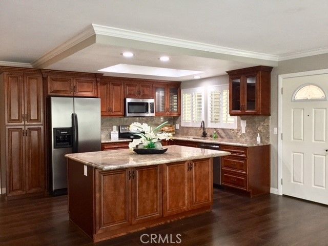 Welcome to this beautifully remodeled, single-level Casa Linda home offering comfort, convenience, and easy living. This thoughtfully designed 2-bedroom, 2-bath condo features no interior steps, making it ideal for a relaxed, low-maintenance lifestyle. The bright, open kitchen is both stylish and practical, with granite countertops, stainless steel appliances, custom cabinetry with easy-glide drawers, a spacious pantry, and a convenient lazy Susan for effortless organization. The kitchen flows seamlessly into the living area, creating a comfortable space for everyday living and entertaining. Throughout the home, you’ll find attractive laminate flooring, smooth ceilings, crown molding, and energy-efficient vinyl windows with custom blinds. The enclosed patio adds valuable extra living space—perfect for enjoying morning coffee, reading, or hosting guests in a light-filled, peaceful setting. The spacious primary bedroom easily accommodates a king-size bed and includes a large closet and a wall unit for personalized comfort. The en-suite bathroom features a walk-in shower and upgraded finishes for ease and accessibility. A second bedroom and full guest bath with a tub/shower combination provide flexibility for visitors or hobbies. Enjoy the convenience of ground-level entry with no stairs, nearby carport parking, and ample guest parking. Located within the welcoming community of Laguna Woods Village, residents have access to an exceptional array of amenities, including a 27-hole golf course, tennis and pickleball courts, swimming pools, fitness centers, an equestrian center, clubhouses, and hundreds of social clubs—offering endless opportunities to stay active, social, and engaged. Experience comfortable, carefree living in a vibrant 55+ community designed for your lifestyle.