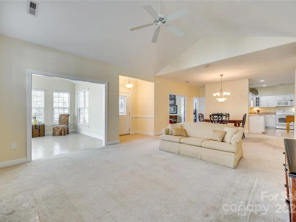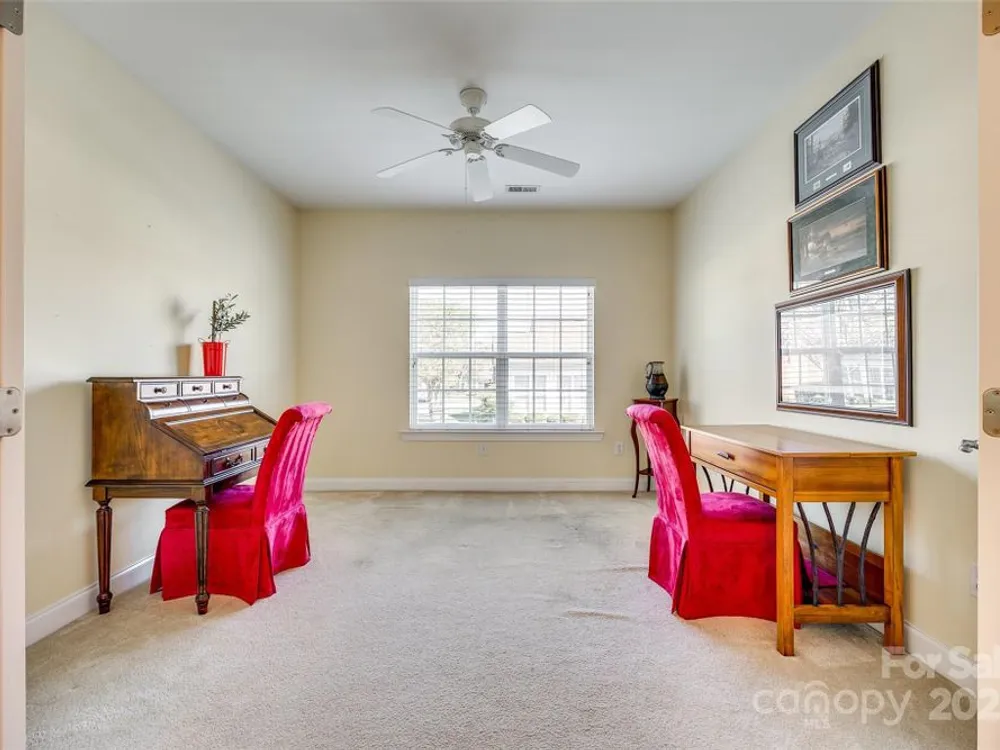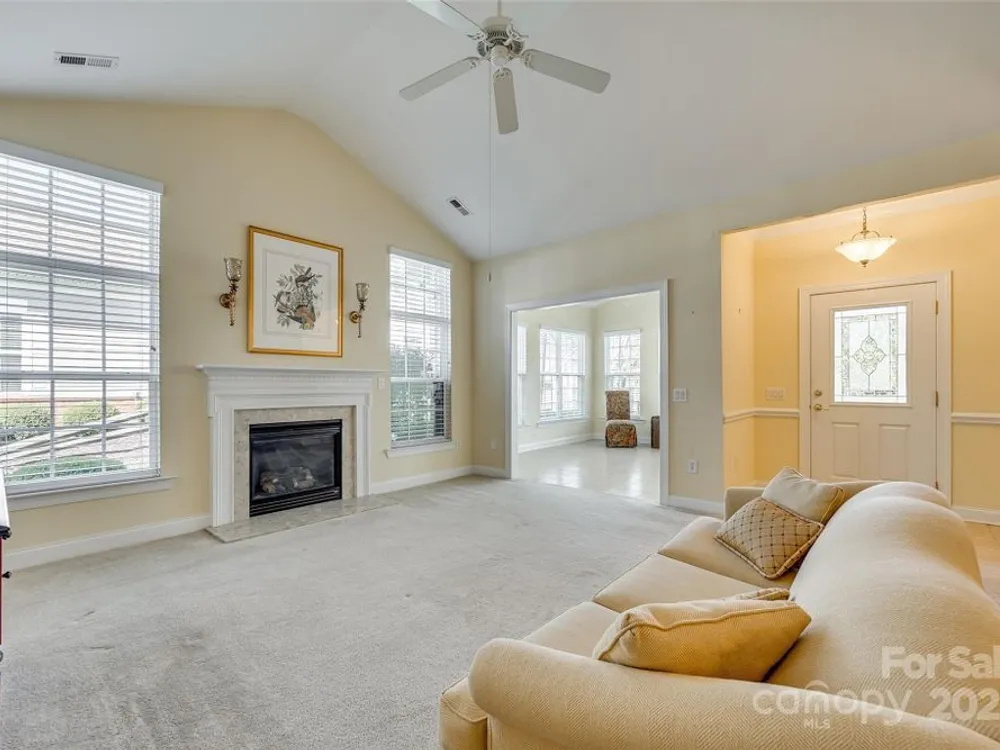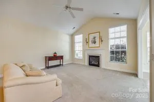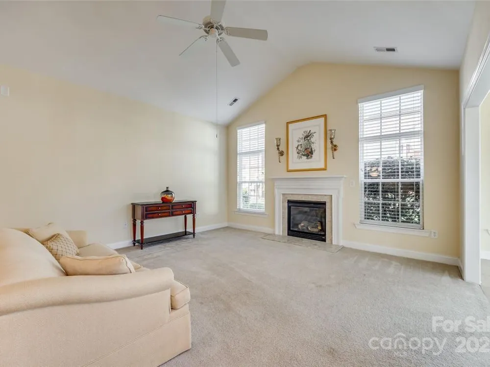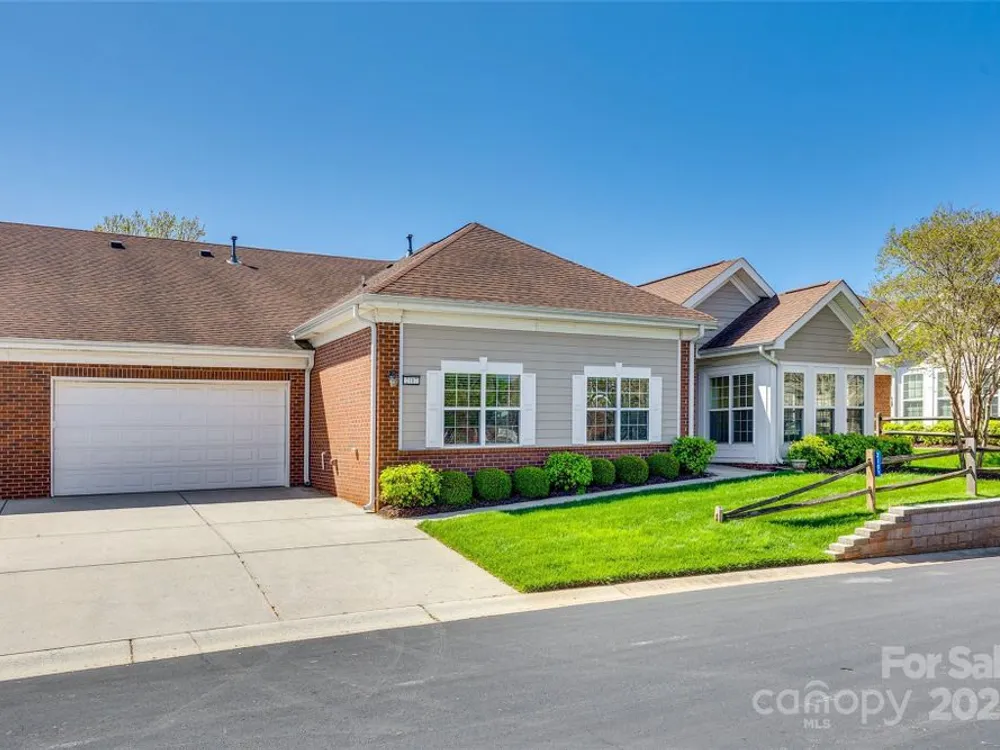 IMPROVED PRICE! Patio home where comfort, convenience, and community come together. This spacious 2-bedroom home also includes an office/flex room and a sunroom, all thoughtfully laid out across one level for easy living. The open floor plan features a large eat-in kitchen, separate dining area, and light-filled living spaces with cathedral ceilings. The oversized 2-car garage includes a huge walk-up attic. Neighborhood perks include scenic walkways, a pond, clubhouse and a pool. The private, residents-only gate offers direct access to nearby grocery stores, restaurants, and shops. Whether you're grabbing a quick bite or running errands, it’s all just steps away. Located with easy access to I-485, this townhome offers unbeatable connectivity to some of the area's most desirable destinations.