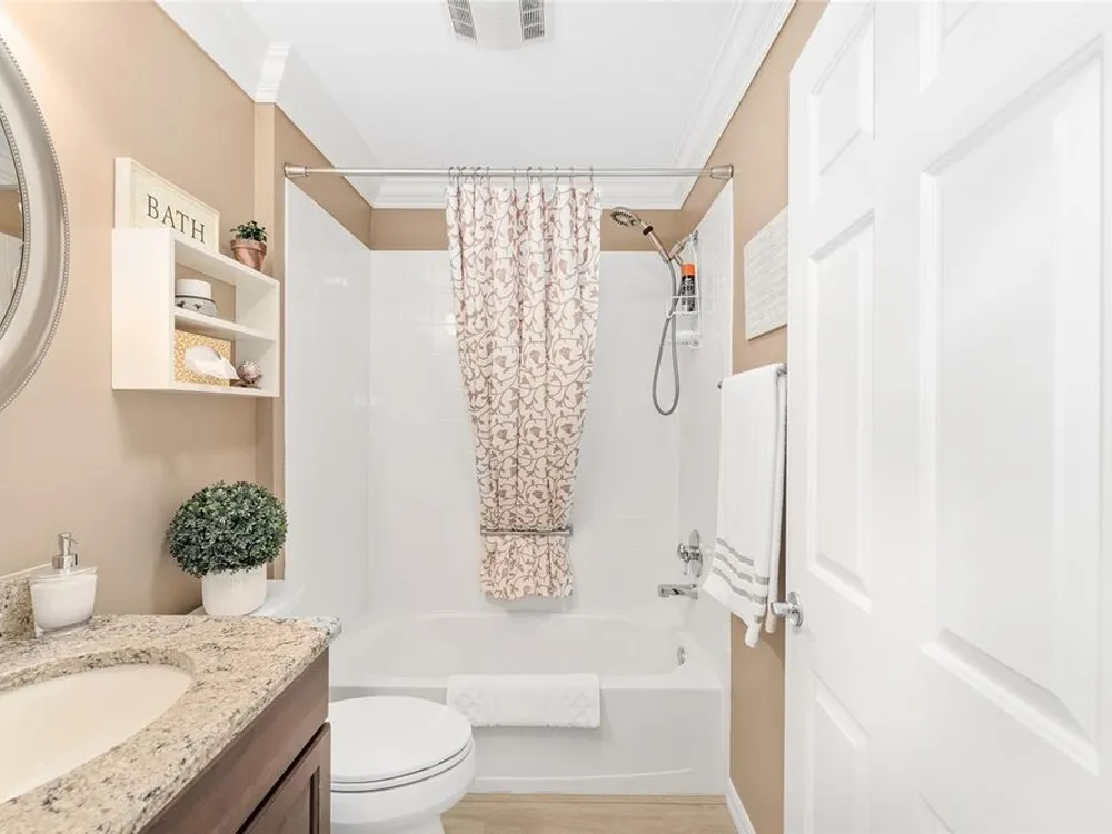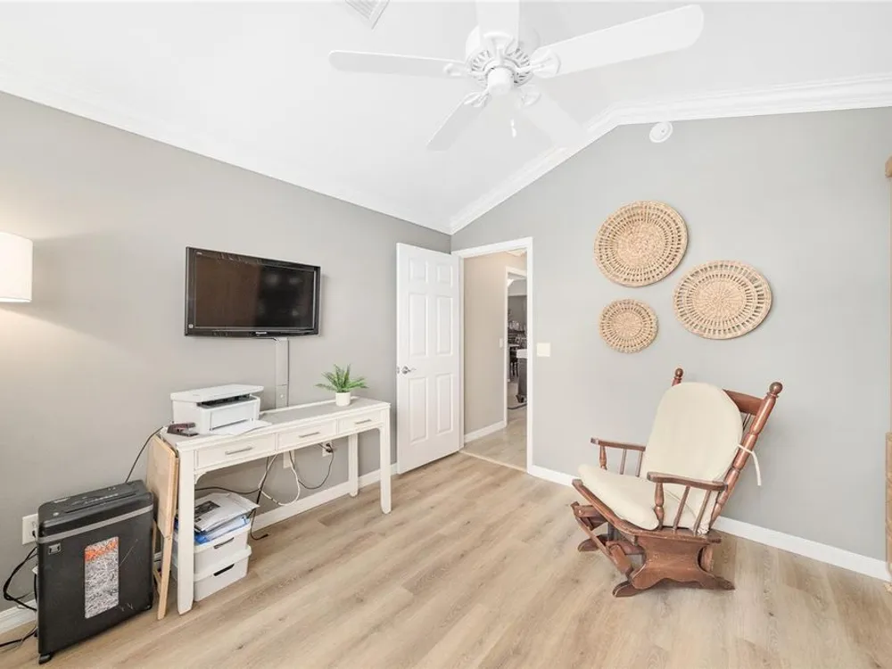 - Ceiling Fan(s), Crown Molding, Eat-in Kitchen, Living/Dining Room, Solid Surface Counters, Split Bedrooms, Thermostat, Vaulted Ceiling(s), Walk-In Closet(s), Window Treatments