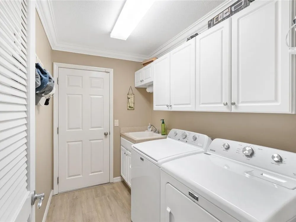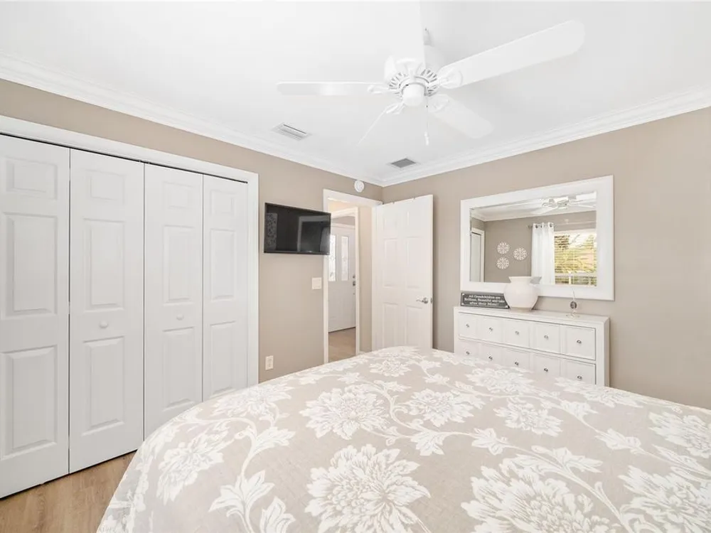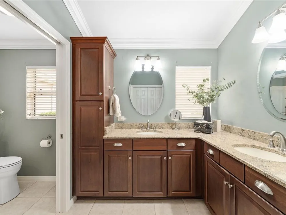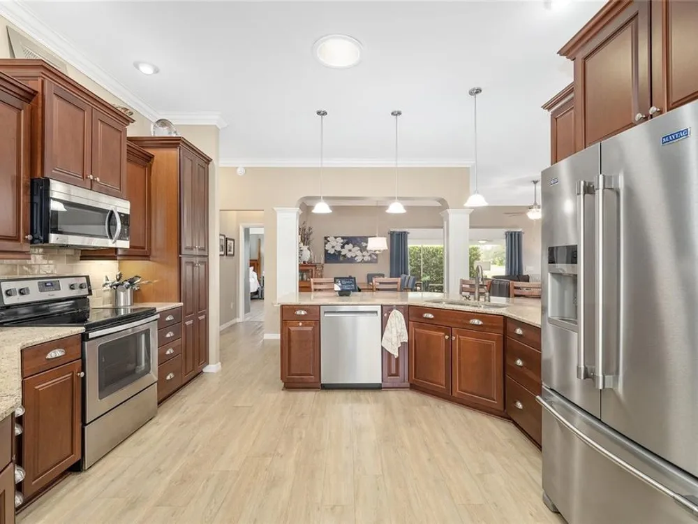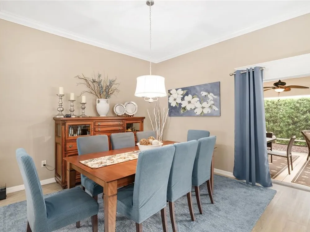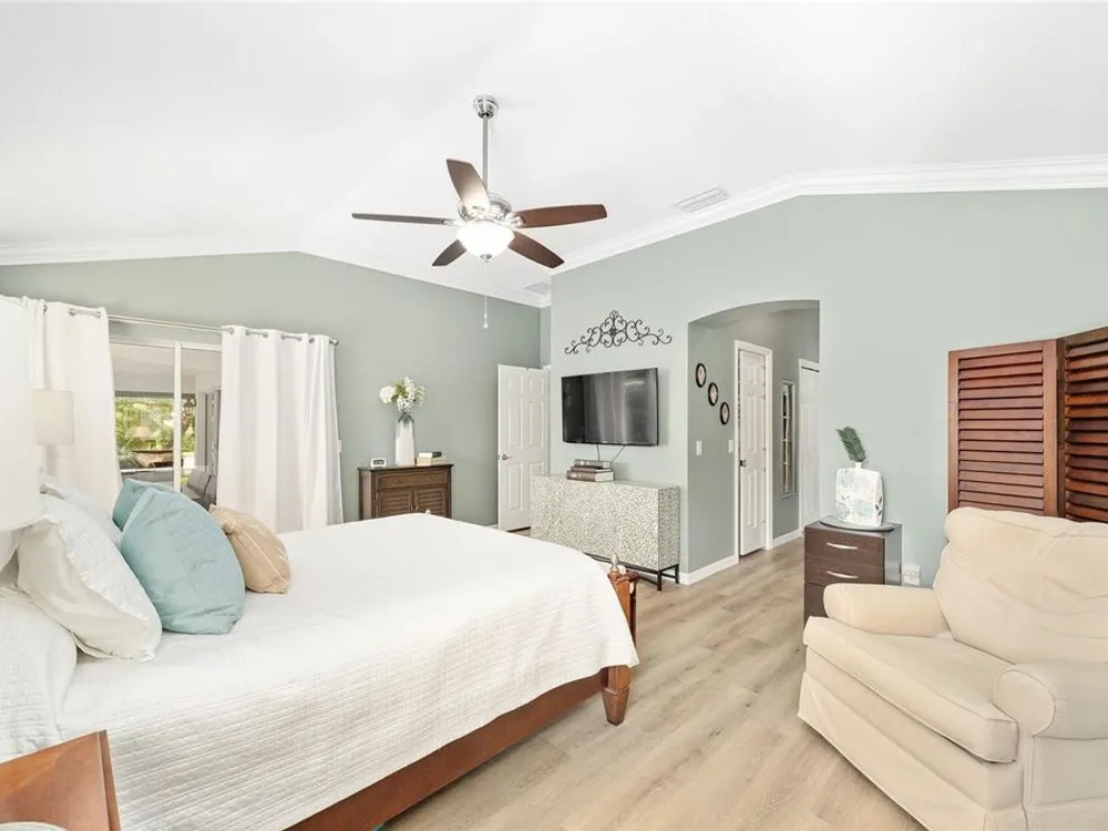 Pride of ownership shines throughout this beautifully maintained GARDENIA Designer home with a 2 CAR GARAGE AND GOLF CAR GARAGE on a corner site in the VILLAGE OF TALL TREES! From the moment you arrive, you’ll notice the inviting curb appeal with the lush landscaping. Inside, this open-concept floor plan offers both comfort and style with NO CARPET. The eat-in kitchen is spacious and features CUSTOM designed and stepped cabinetry, GRANITE countertops, and a generous breakfast bar — ideal for casual dining or entertaining. The kitchen opens to the adjacent LIVING and DINING areas, creating a warm and inviting space filled with natural light. CROWN MOLDING has been added throughout the entire home. The primary suite provides a relaxing retreat with its private bath, dual sinks, and dual walk-in closets. The guest rooms are thoughtfully positioned for privacy, making it perfect for hosting family or friends. You’ll love the expanded lanai, a wonderful spot to enjoy morning coffee, quiet afternoons, or evening gatherings — truly an extension of the living space and one of the highlights of this home. Solar tubes are located in the Kitchen, Primary and Guest Baths. Location matters — and this one is hard to beat! You’re just minutes away from golf courses, recreation centers, and everyday conveniences like Publix, Walmart, and COSTCO, as well as numerous restaurants and shopping options. The neighborhood (adult) pool and postal station are just a short three-minute walk from your front door. The BOND IS PAID! ROOF replaced in 2020! Water Heater replaced in 2021. If you've been searching for a home that has been lovingly cared for, ideally located, and move-in ready — this is it! Experience the perfect combination of comfort, style, and convenience in one of Community's most established and desirable neighborhoods — The Village of Tall Trees!