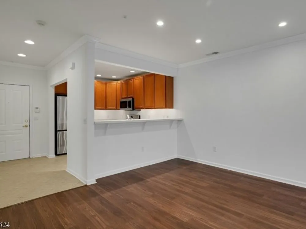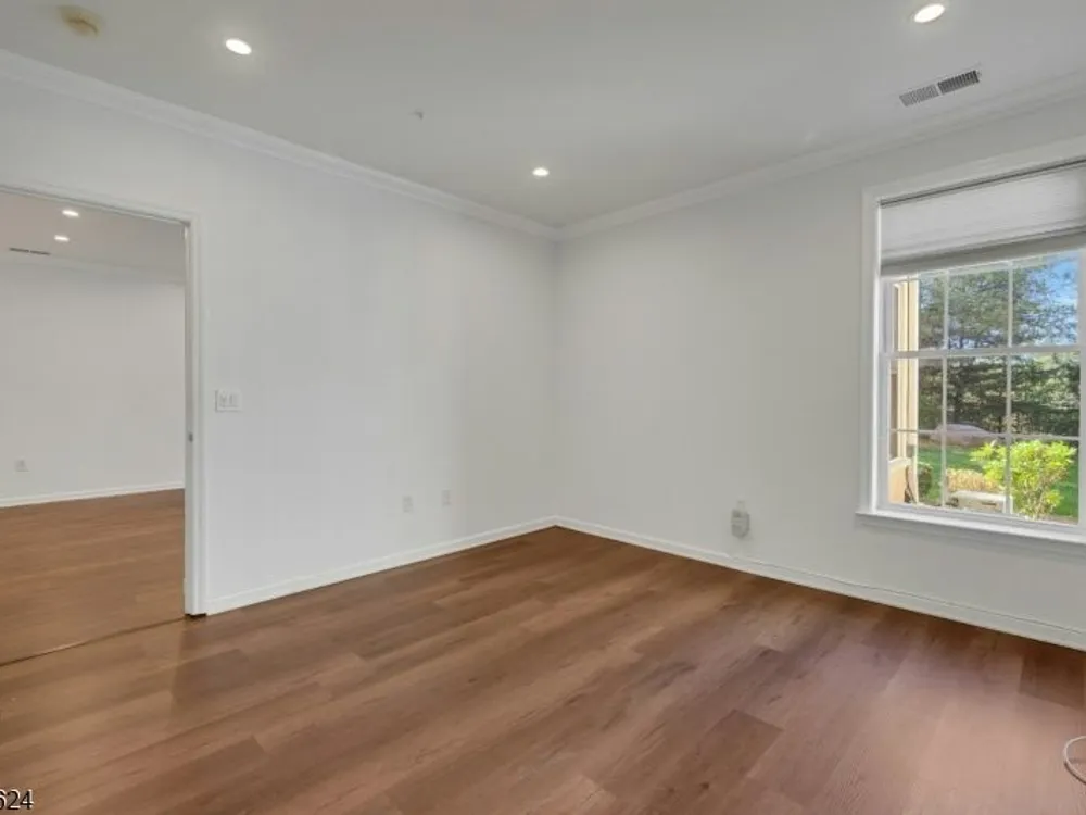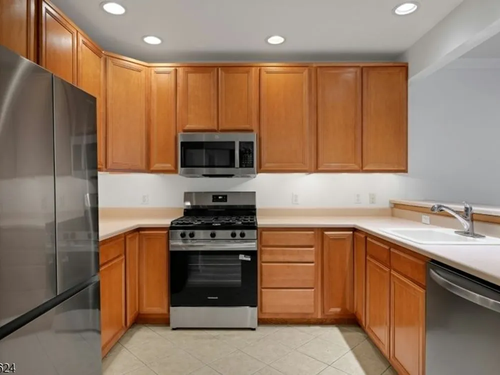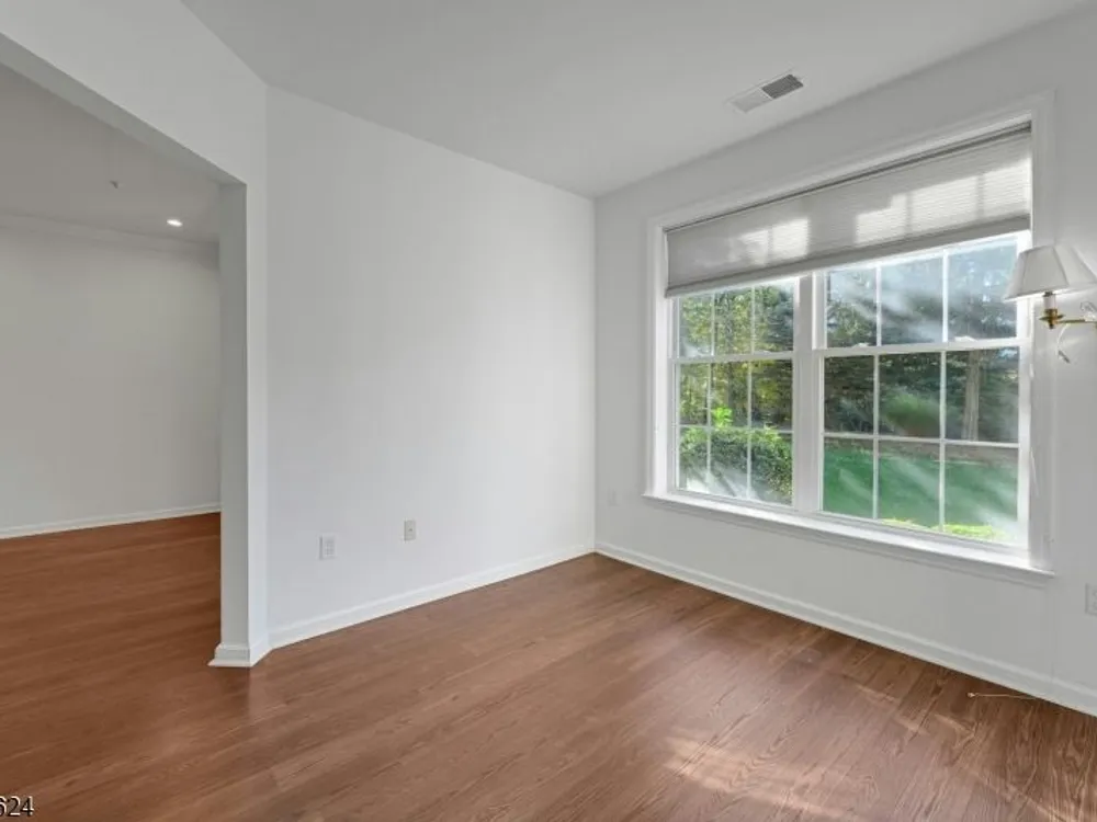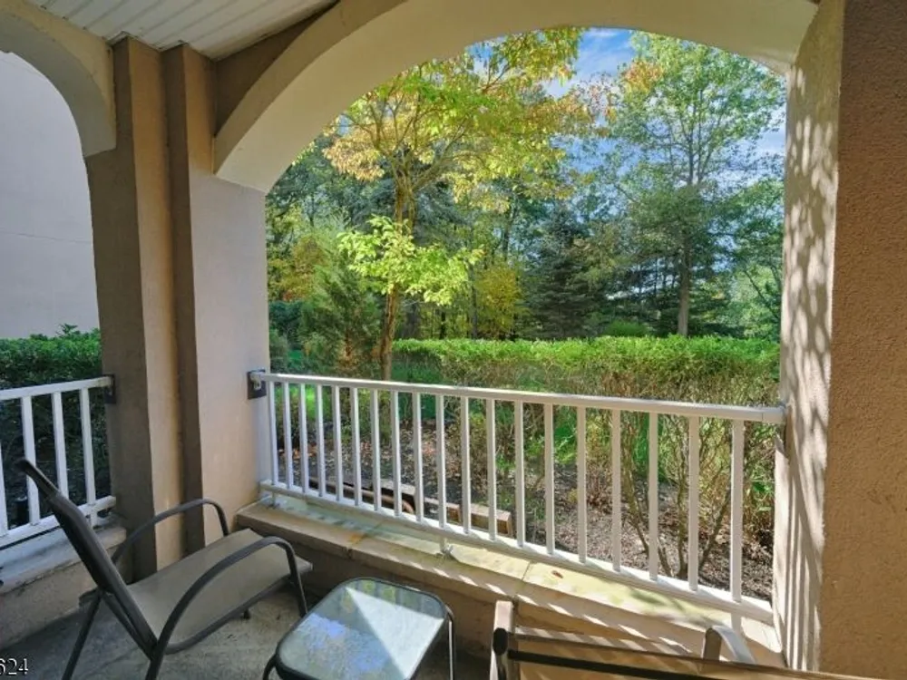Freshly painted with new stainless-steel appliances, this bright, first-floor, one-bedroom plus den Cambridge unit is the ideal setting for a vibrant lifestyle you'll enjoy for years. Ideally located on the quiet back side of the Adams Building, your private covered patio overlooks woods, not a parking lot. You're also walking distance to the 26,000 sq. ft. clubhouse with indoor and outdoor pools, saunas, steam rooms, a fitness center, card and craft rooms, an art studio, billiards, and library. Outdoors, enjoy tennis, pickleball, shuffleboard, and bocce, or just relax in the beautiful gardens or gazebo. The friendly community also offers a multitude of clubs and activities. A jitney offers rides to Rockaway Mall's restaurants, shopping, and the bus to NYC! The 24-hour Gate House ensures security. This lovely unit features handsome maple kitchen cabinets, new appliances, newer laminate floors, crown molding, a primary walk-in closet, stackable washer and dryer, and a peaceful view. Note how the owner smartly opened the foyer by creating a new hallway to the bathroom. The additional den makes an ideal office or sitting room. There's convenient underground parking with an elevator to your floor, plus additional storage space. Fox Hills 55+ Active Adult Community is among the best in NJ, approved for conventional financing. Take a tour! You'll wish you were over 55+ sooner!