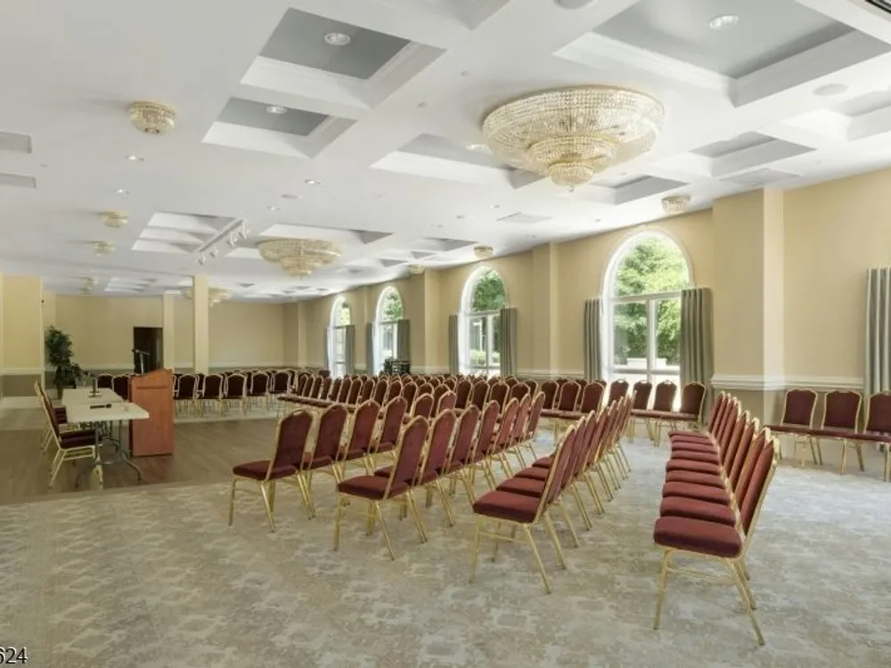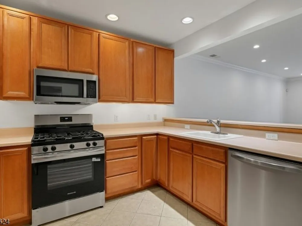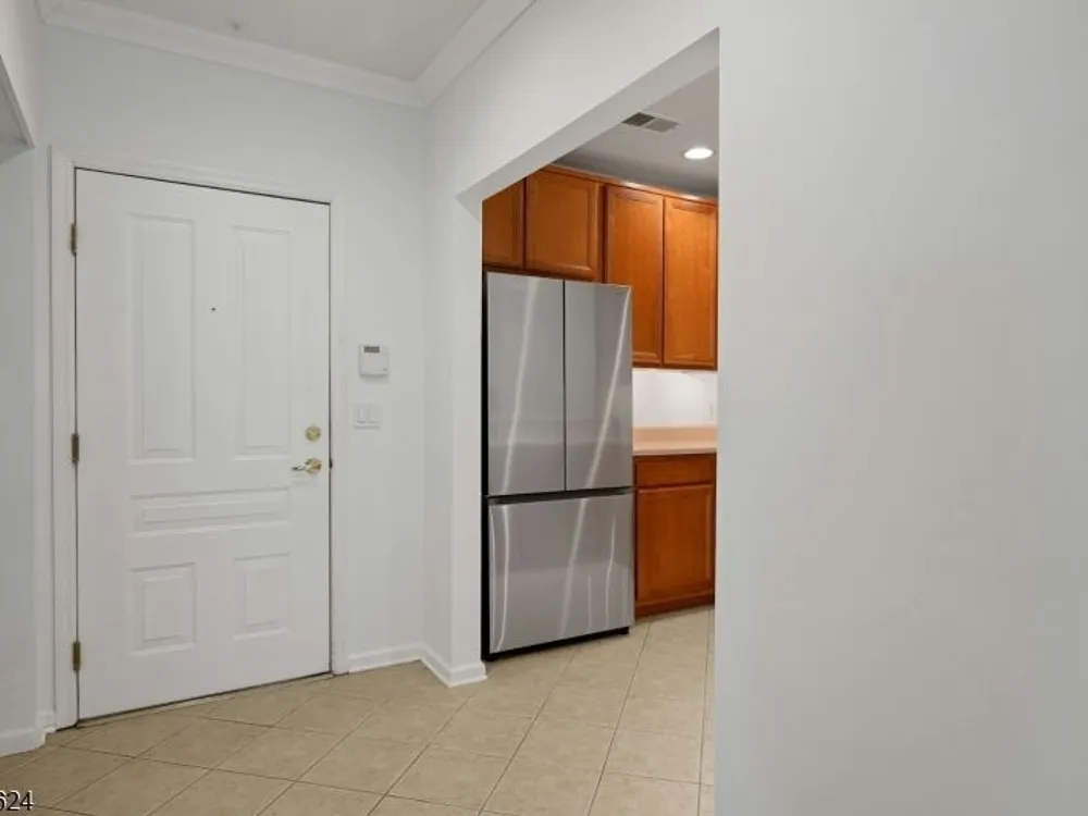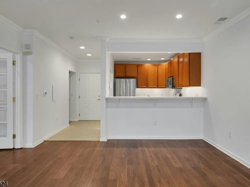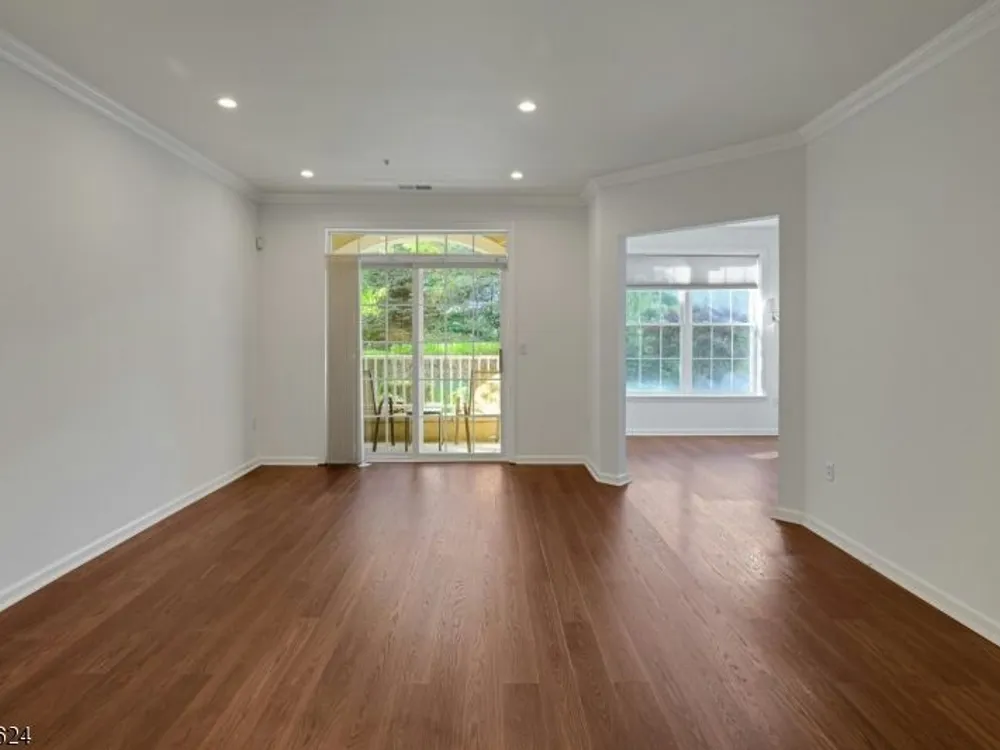 Freshly painted with new stainless-steel appliances, this bright, first-floor, one-bedroom plus den Cambridge unit is the ideal setting for a vibrant lifestyle you'll enjoy for years. Ideally located on the quiet back side of the Adams Building, your private covered patio overlooks woods, not a parking lot. You're also walking distance to the 26,000 sq. ft. clubhouse with indoor and outdoor pools, saunas, steam rooms, a fitness center, card and craft rooms, an art studio, billiards, and library. Outdoors, enjoy tennis, pickleball, shuffleboard, and bocce, or just relax in the beautiful gardens or gazebo. The friendly community also offers a multitude of clubs and activities. A jitney offers rides to Rockaway Mall's restaurants, shopping, and the bus to NYC! The 24-hour Gate House ensures security. This lovely unit features handsome maple kitchen cabinets, new appliances, newer laminate floors, crown molding, a primary walk-in closet, stackable washer and dryer, and a peaceful view. Note how the owner smartly opened the foyer by creating a new hallway to the bathroom. The additional den makes an ideal office or sitting room. There's convenient underground parking with an elevator to your floor, plus additional storage space. Fox Hills 55+ Active Adult Community is among the best in NJ, approved for conventional financing. Take a tour! You'll wish you were over 55+ sooner!