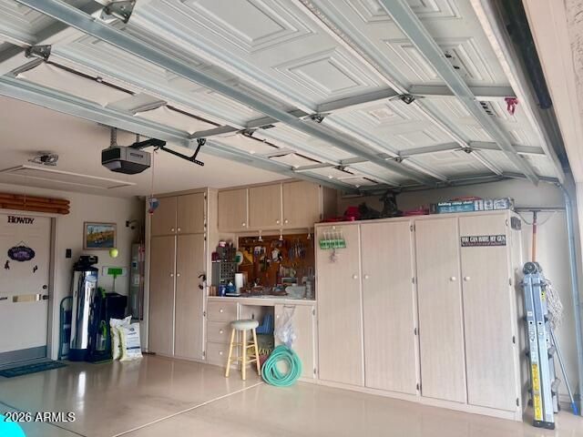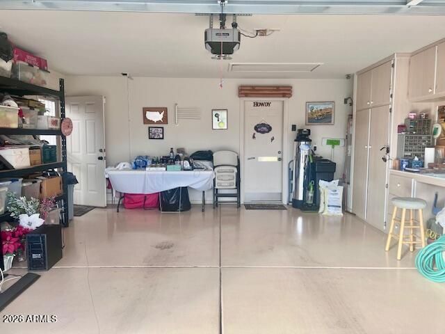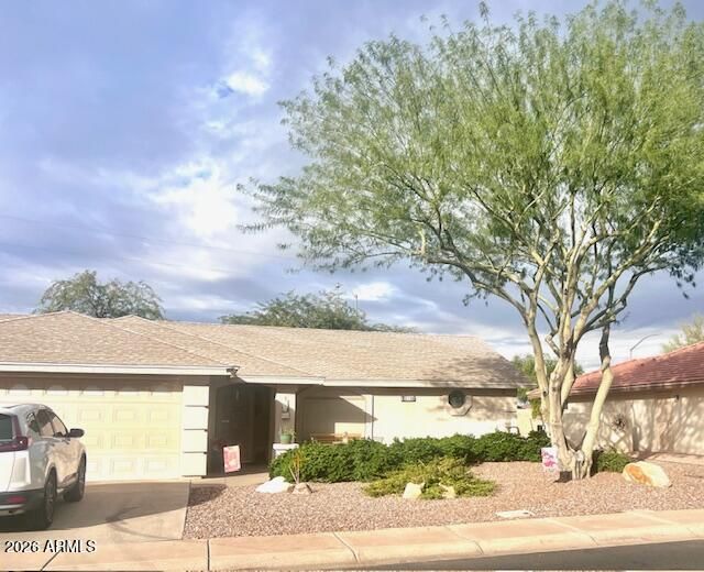 Home Sweet Home has arrived! It's the Southwest flair with custom plantation shutters & Santa Fe skip trowel walls that make this home unique. The open concept has tile flooring throughout with a vaulted ceiling in the great room, ceiling fans & canned llighting. Your bright kitchen is complete with plenty of cabinets, corian counters & upgraded white appliances. In the spacious primary bedroom is a king lift & store bed & 2 walk-in closets. There's double sinks in the bathroom. This beautiful residence boasts a low maintenance yard with a full irrigation system, gorgeous flora & an orange tree in the 8729 sq ft lot. Exit through the custom secutity door to find a full length patio with a roll down sunscreen to match. The extended garage has many cabinets & an epoxy floor. Come & see it!