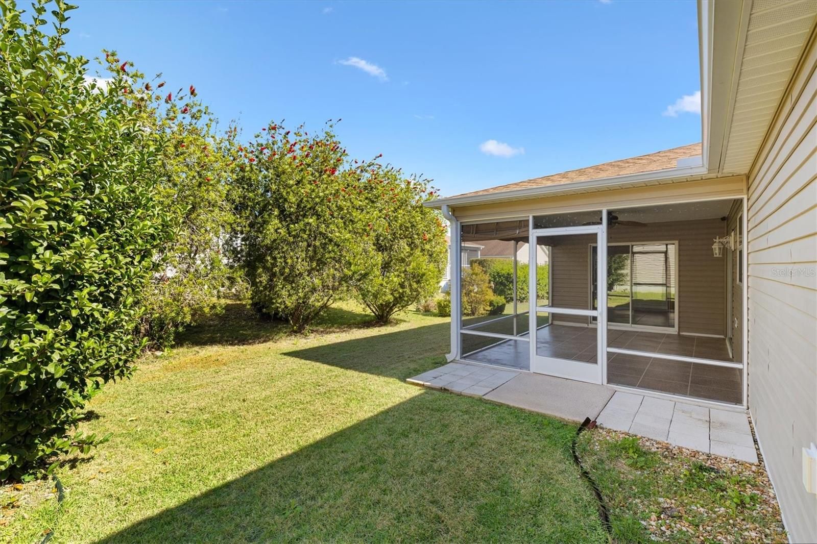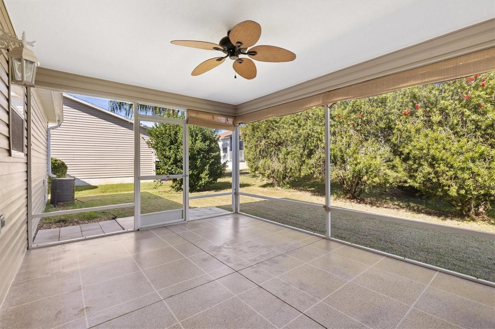 One or more photo(s) has been virtually staged. Stylish Comfort in The Village of Amelia! Beautifully updated Austin Model home located in the highly desirable Village of Amelia, centrally positioned in The Villages, Florida. This home features wood laminate flooring throughout (NO CARPET) and INSIDE LAUNDRY for added convenience. Enjoy excellent curb appeal with tasteful landscaping, an epoxy-coated driveway and walkway, and peace-of-mind with a hilltop location. The interior offers vaulted ceilings, freshly painted walls, and luxury granite countertops in the kitchen and bathrooms. A large covered and screened lanai provides a comfortable outdoor living space surrounded by privacy landscaping that’s easy to maintain. This home combines style, comfort, and location — just minutes from golf, recreation centers, shopping, and dining. ***NEW ROOF APRIL 2025*** Move-in ready and waiting for you!