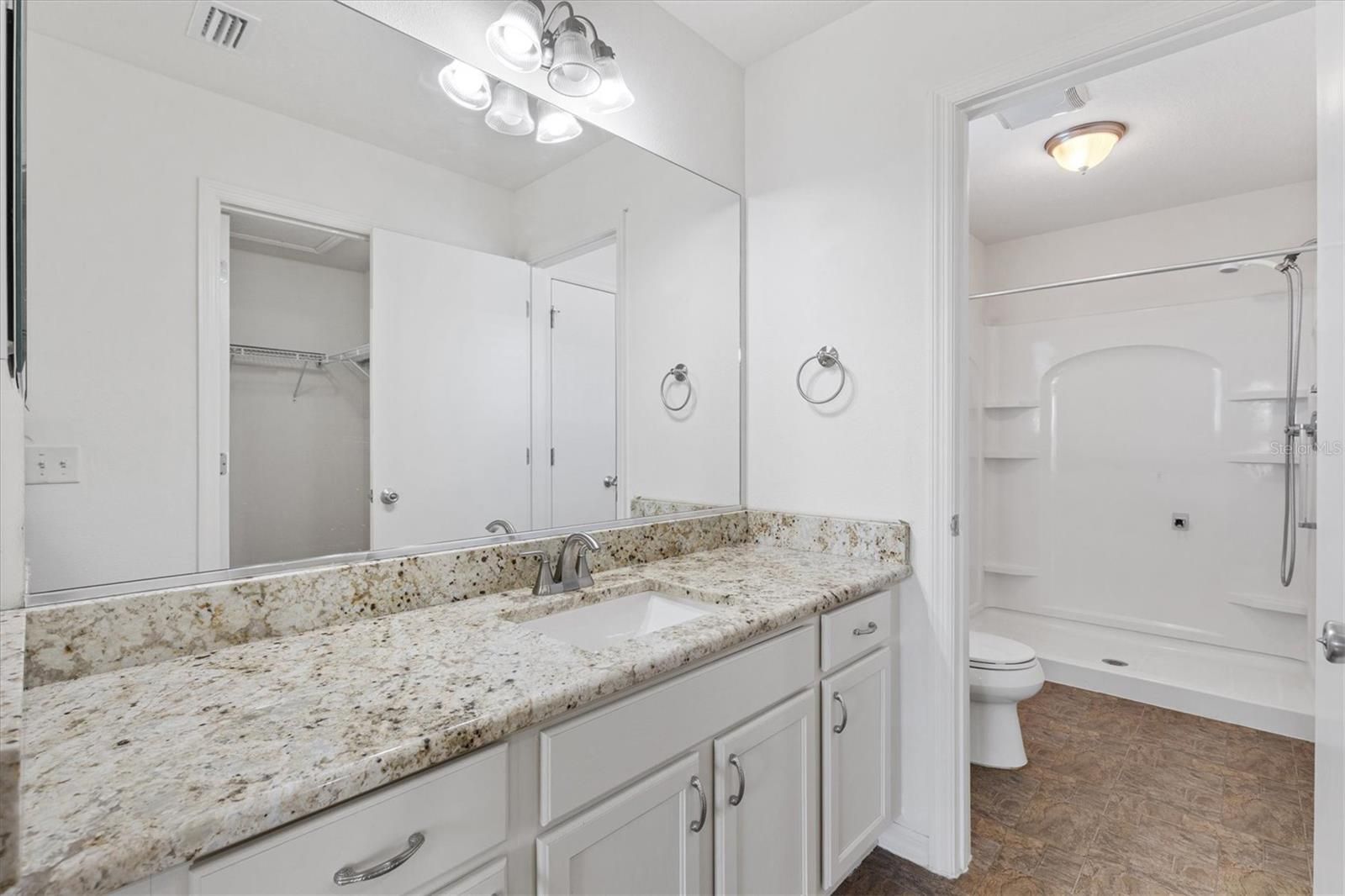 - Living/Dining Room, Stone Counters, Thermostat, Vaulted Ceiling(s), Walk-In Closet(s)