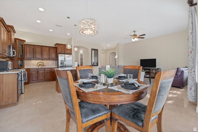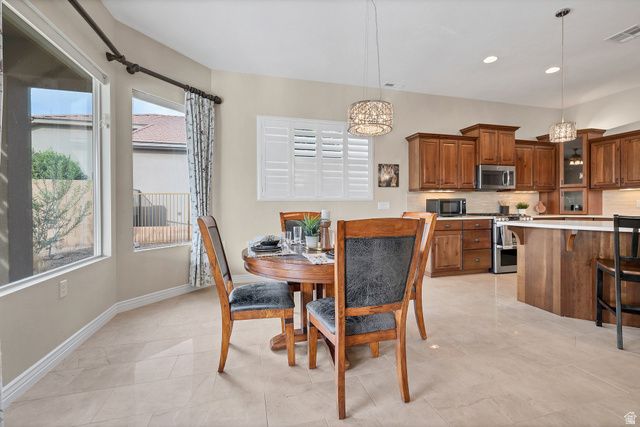 Welcome to your dream home at 2109 W Vision Point Cir, St. George, UT 84790!** Nestled in the prestigious Reflections Gated Community of SunRiver, this stunning 3-bedroom, 2-bathroom single-family home, built in 2013, offers 2,136 sq. ft. of modern elegance on a prime corner lot with breathtaking panoramic views of the surrounding red rock landscapes. The popular Devotions floor plan shines with solid surface flooring throughout, high-end upgrades, and an interior that offers vaulted ceilings and artistic archways-creating a spacious, airy ambiance and architectural charm in every room. An abundance of natural light streams in from the great room's desirable southern exposure, accentuating the open flow and sophisticated design. Step outside to your private oasis: a relaxing backyard with a soothing water feature, perfect for unwinding after a day of adventure, plus a Pergola-covered patio ideal for al fresco dining, morning coffee, or evening gatherings with friends and family. Car enthusiasts and hobbyists will love the extended 4-car garage, where the fourth bay has been thoughtfully converted into extra storage and a built-in workbench-plenty of space for vehicles, tools, gear, or even a home workshop. Enjoy exclusive access to both a private community center and the full suite of main SunRiver amenities, including pools, fitness facilities, clubhouse events, and social activities tailored for an active 55+ lifestyle. Embrace the vibrant St. George scene, just minutes from Red Cliffs Mall for shopping, Pioneer Park trails for hiking, the renowned Tuacahn Amphitheater for world-class performances, and the iconic Zion National Park for endless outdoor exploration. This move-in-ready retreat combines luxury, convenience, and Southern Utah's unparalleled beauty-your gateway to adventure, relaxation, and a thriving community awaits! Don't miss this opportunity-schedule your tour today! Square footage figures are provided as courtesy estimates only and were obtained from county records. Buyer is advised to obtain an independent measurement.