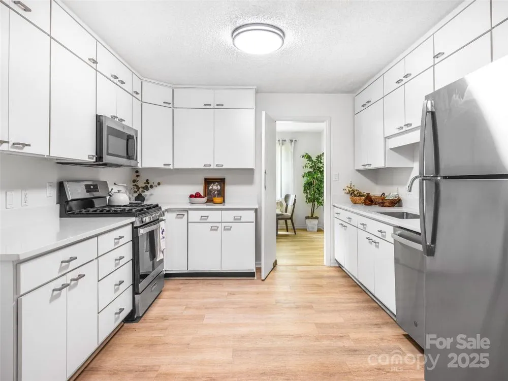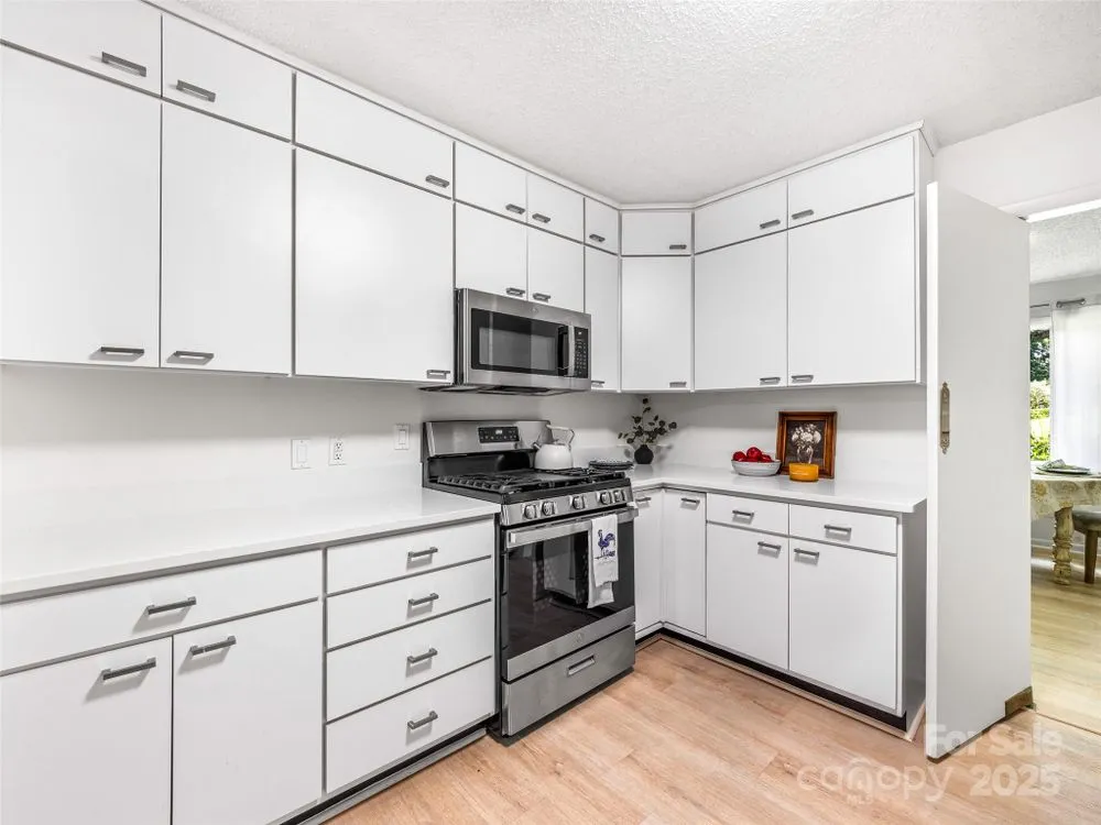 Light, fresh, and beautifully updated! This move-in-ready South Asheville home is filled with natural light and modern touches throughout. The inviting living room features expansive windows with mountain and pastoral views, a cozy gas fireplace, and access to a covered side porch perfect for relaxing outdoors. Recent upgrades (Spring 2025) include brand-new vinyl plank flooring, fresh interior paint, stylish light fixtures, and all-new windows. The kitchen shines with new stainless-steel appliances, solid surface countertops, updated cabinet hardware, and a flexible breakfast nook/office space. The spacious primary suite offers a walk-in closet and ensuite bath, creating a private retreat. Additional updates include a new tankless water heater for comfort and efficiency. Enjoy the community clubhouse, heated outdoor pool, and garden on 72 acres of private pastoral grounds. This low-maintenance lifestyle is just minutes from Biltmore Park’s shopping, dining, and entertainment.