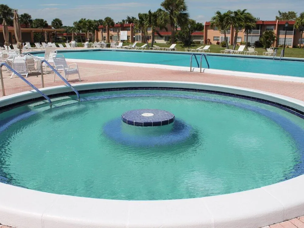 Welcome to your slice of heaven! This remodeled ground floor 1/1 unit includes AC 2024, granite countertops, new garbage disposal, fresh paint, new bathroom, all tile floors, updated closet doors + window blinds, professionally installed TVs in each room, + private screened patio - perfect for grilling or a catio! Max 2 Cats or birds are allowed. Washer/dryer in unit. Banks, grocery stores, restaurants, gas stations, + shopping centers are VERY close by. PBC fire rescue station is just outside of the main gate. This well-manicured + well-appointed community offers bus service several days a week. You'll be entertained w/shows, exercise classes, bridge, bingo, dances, trips, clubs + activities! Whether here to retire or for the season, you'll never be bored! Schedule your showing today.
