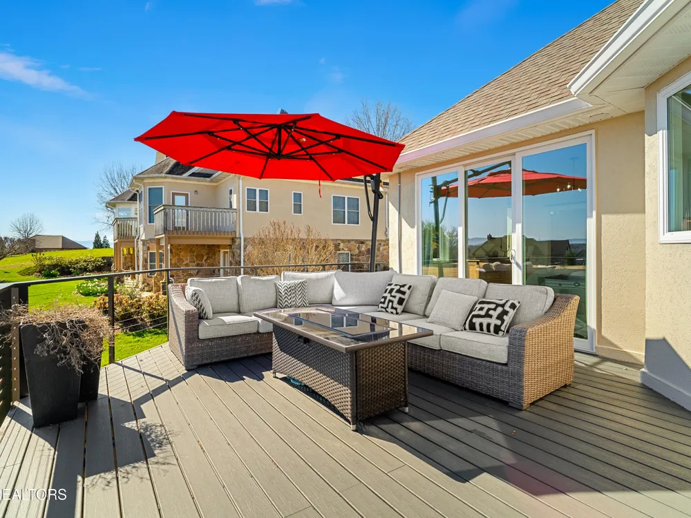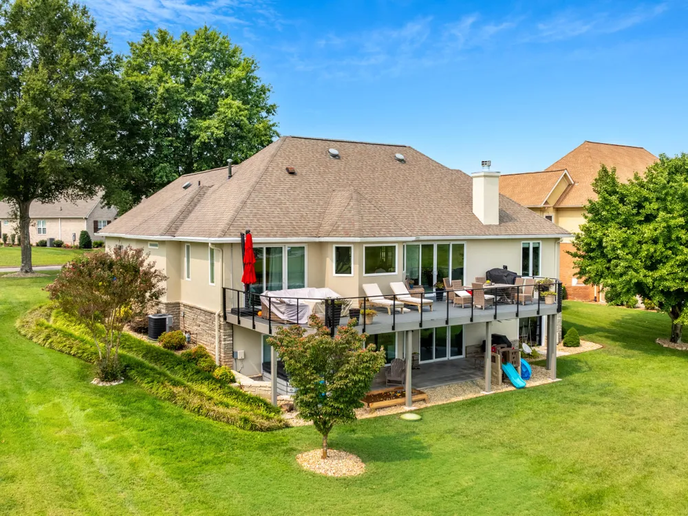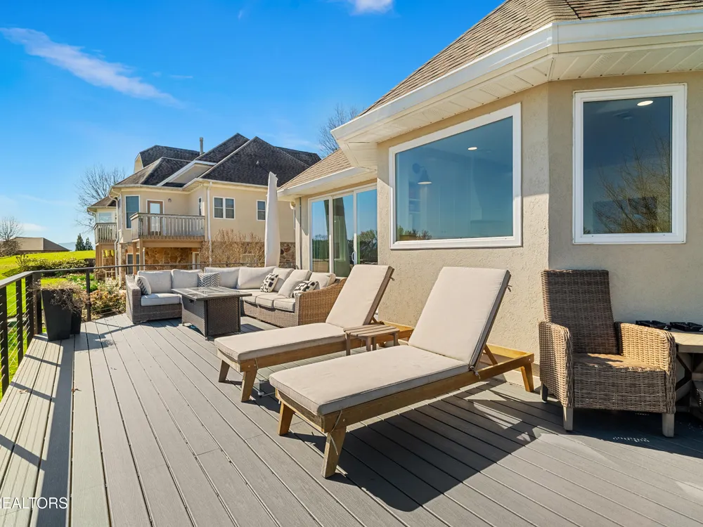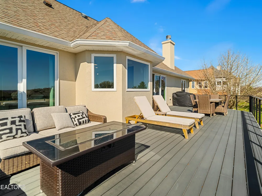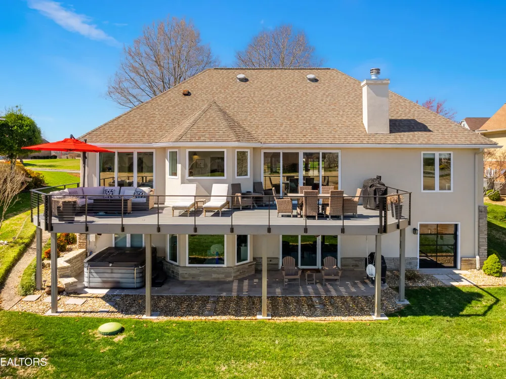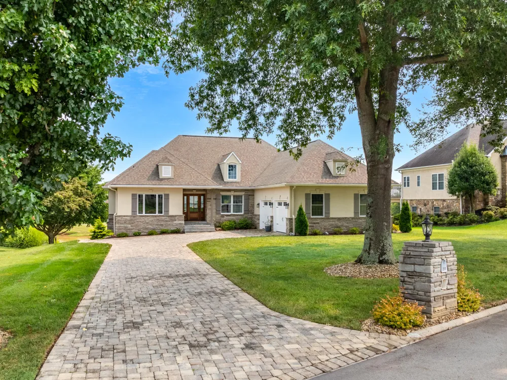 Welcome to this completely updated, custom-built home located in a prime spot on a scenic par 3 golf hole. This property offers an OPTIONAL membership to the Rarity Bay Country Club (the only required HOA fee is $96 a month). Nestled at the end of a long pavered driveway, the home is surrounded by large shade trees, providing both privacy and tranquility. With a spacious 2-car garage and an additional golf cart garage, this home offers both convenience and ample storage. Recently, both HVAC units were replaced, along with the windows, sliders, and all four garage doors. Enjoy breathtaking views of the golf course and distant mountain vistas, providing a serene backdrop from nearly every angle. Step outside to the expansive deck, ideal for lounging, relaxing in the sun, or entertaining friends and family. Inside, you'll find an open floor plan with soaring cathedral ceilings in the living room, enhancing the spaciousness and elegance of the home. Every detail has been thoughtfully crafted with high-end finishes throughout, including premium appliances, engineered hardwood floors, quartz and stone fireplaces, and ship lap ceilings. Quartz countertops are featured throughout the home, including the kitchen and bathrooms, providing a sleek, modern aesthetic. The master suite features a luxurious walk-in marble shower, while the home also offers a butler's pantry and a large gym for your convenience and enjoyment. The lower level of the home serves as the perfect retreat for guests, offering privacy and comfort with its own living space. Rarity Bay is a gated community that offers an abundance of activities for residents. There are covered boat slips available for lease, providing easy access to the water, and the community is vibrant and active with plenty of events and opportunities to connect with neighbors.
