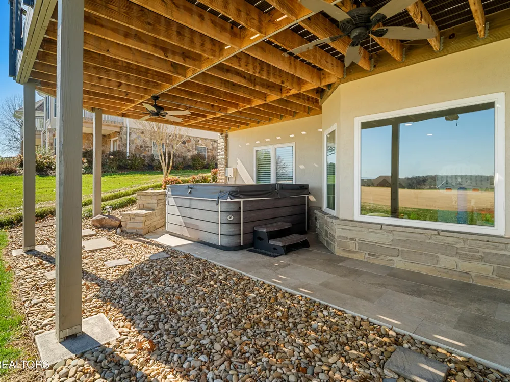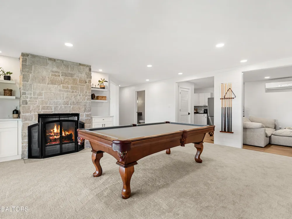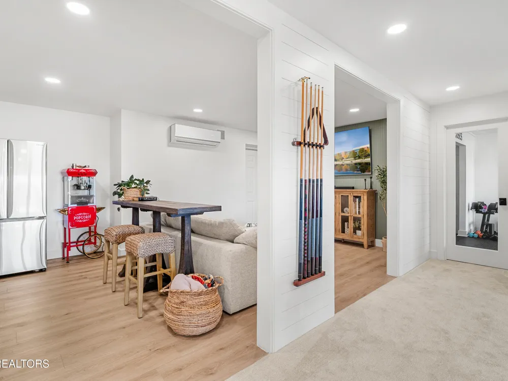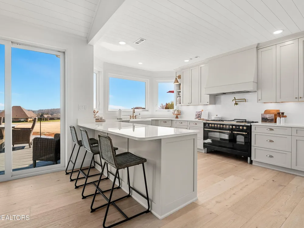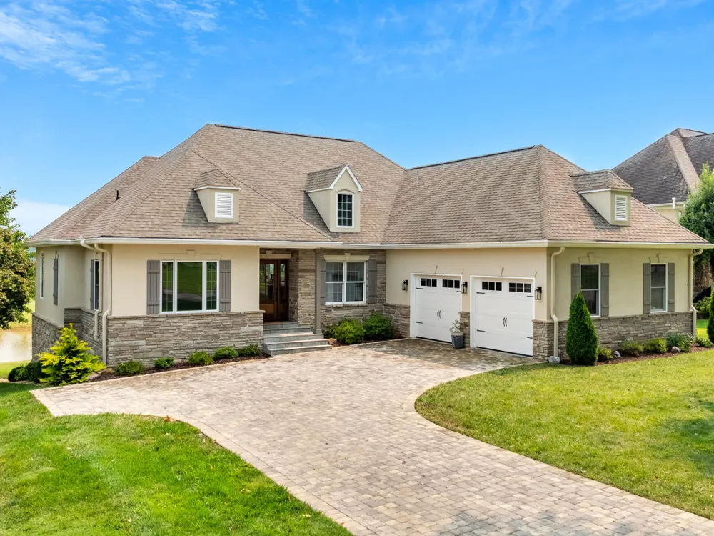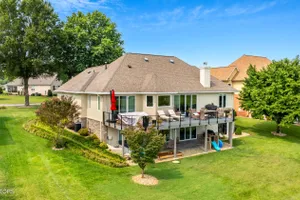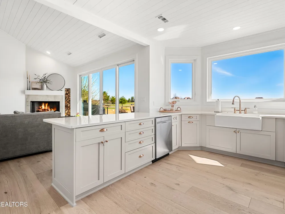 Welcome to this completely updated, custom-built home located in a prime spot on a scenic par 3 golf hole. This property offers an OPTIONAL membership to the Rarity Bay Country Club (the only required HOA fee is $96 a month). Nestled at the end of a long pavered driveway, the home is surrounded by large shade trees, providing both privacy and tranquility. With a spacious 2-car garage and an additional golf cart garage, this home offers both convenience and ample storage. Recently, both HVAC units were replaced, along with the windows, sliders, and all four garage doors. Enjoy breathtaking views of the golf course and distant mountain vistas, providing a serene backdrop from nearly every angle. Step outside to the expansive deck, ideal for lounging, relaxing in the sun, or entertaining friends and family. Inside, you'll find an open floor plan with soaring cathedral ceilings in the living room, enhancing the spaciousness and elegance of the home. Every detail has been thoughtfully crafted with high-end finishes throughout, including premium appliances, engineered hardwood floors, quartz and stone fireplaces, and ship lap ceilings. Quartz countertops are featured throughout the home, including the kitchen and bathrooms, providing a sleek, modern aesthetic. The master suite features a luxurious walk-in marble shower, while the home also offers a butler's pantry and a large gym for your convenience and enjoyment. The lower level of the home serves as the perfect retreat for guests, offering privacy and comfort with its own living space. Rarity Bay is a gated community that offers an abundance of activities for residents. There are covered boat slips available for lease, providing easy access to the water, and the community is vibrant and active with plenty of events and opportunities to connect with neighbors.