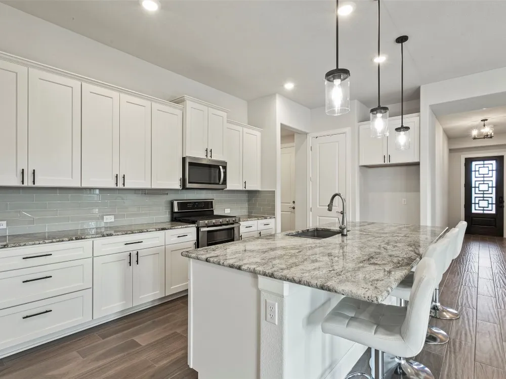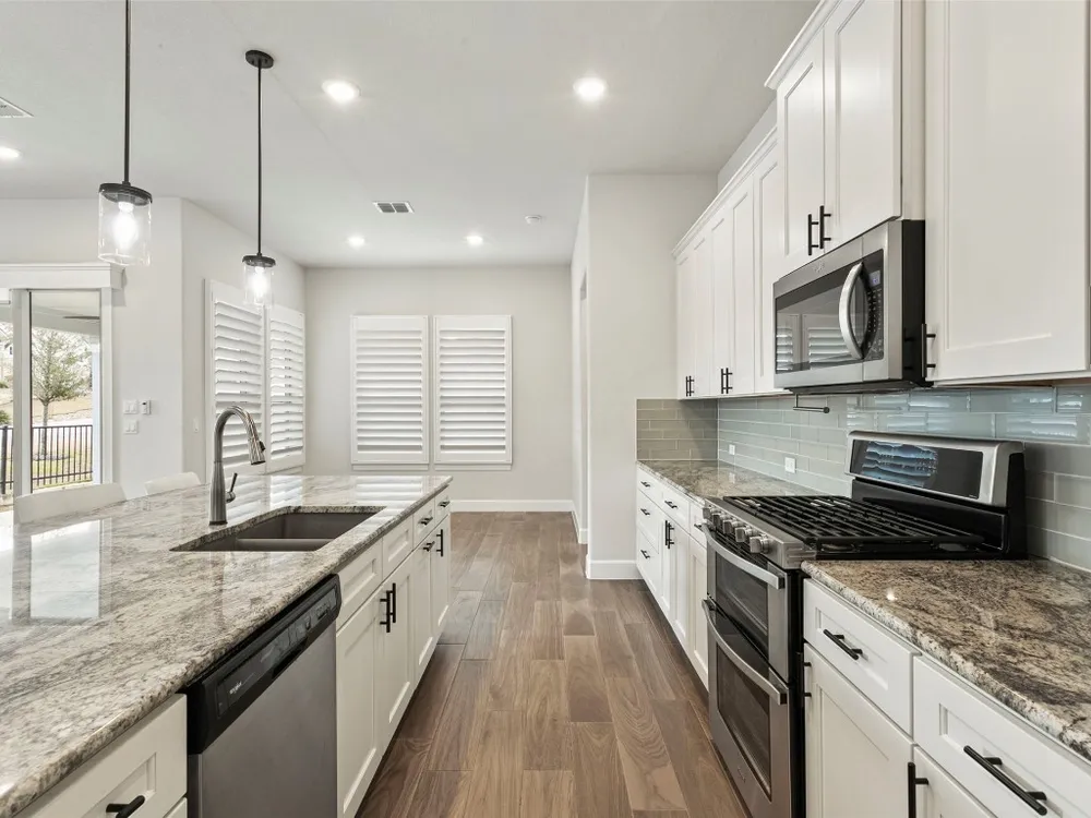 - Double Oven, Dishwasher, Disposal, Gas Range, Gas Water Heater, Microwave, Plumbed For Ice Maker, Water Softener