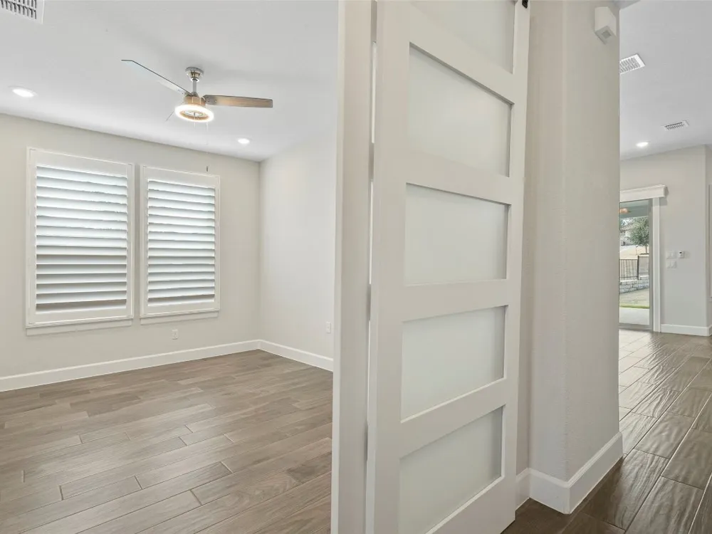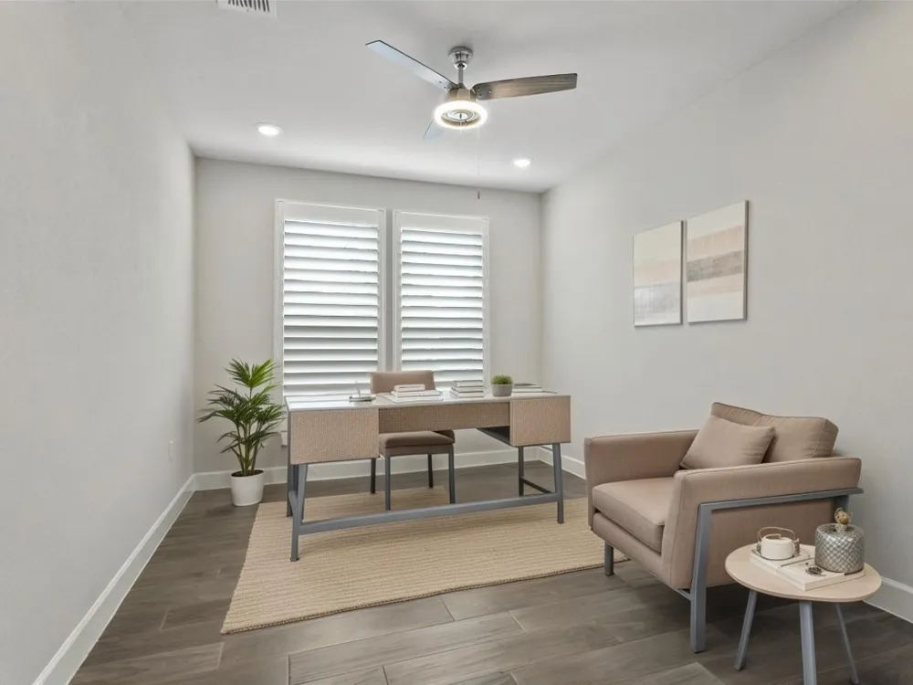 THE BEST DEAL IN KISSING TREE - BETTER THAN A NEW BUILD! If you’ve been considering new construction, think again—this home already has all the extras you’d end up paying for later. Step into a home where every detail has been considered, every upgrade carefully selected, and every space designed for comfort and convenience. Nestled on a desirable corner lot in the highly sought-after Kissing Tree 55+ active community, this property offers privacy, functionality, and an inviting atmosphere that feels like home from the moment you walk in. The plantation shutters, water softener, tankless water heater, landscaping, and thoughtful touches are already in place. Step through the front door, and your feet will meet wood-plank tile floors—the warmth of wood with the durability of tile. Natural light pours through plantation shutters, casting elegant patterns that shift throughout the day. The open-concept living space is as functional as it is beautiful, with a built-in bookshelf adding character and storage. The eat-in kitchen is designed for both everyday ease and entertaining with stainless steel appliances, and a double oven stove with a 5-burner cooktop. A spacious island invites casual breakfasts and lively conversation, while abundant cabinet space ensures everything has its place. The primary suite is a true retreat, featuring a spacious walk-in closet and a spa-like bathroom with dual vanities and a large walk-in shower. The second bedroom is versatile—perfect for a queen bed or easily transformed into a multi-use space with a Murphy bed. Need a dedicated workspace or creative retreat? The office/flex room is ready to accommodate your every need. Step outside onto the extended patio, where ceiling fans create a cool breeze as you relax with morning coffee or entertain friends over dinner. Life at Kissing Tree is all about community, with an abundance of community activities, amenities, a welcoming atmosphere, and endless opportunities to meet new friends!