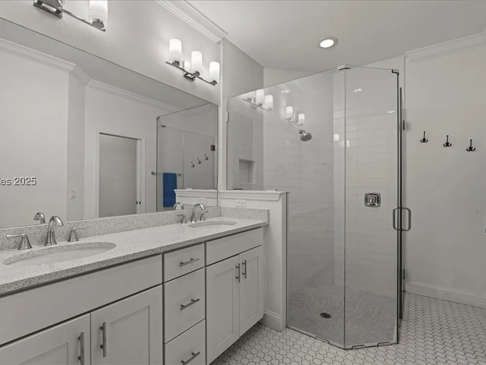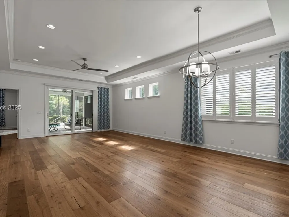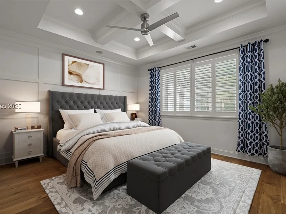 - Tray Ceiling(s), Ceiling Fan(s), Main Level Primary, Multiple Primary Bathrooms, Pull Down Attic Stairs, Separate Shower, Window Treatments
