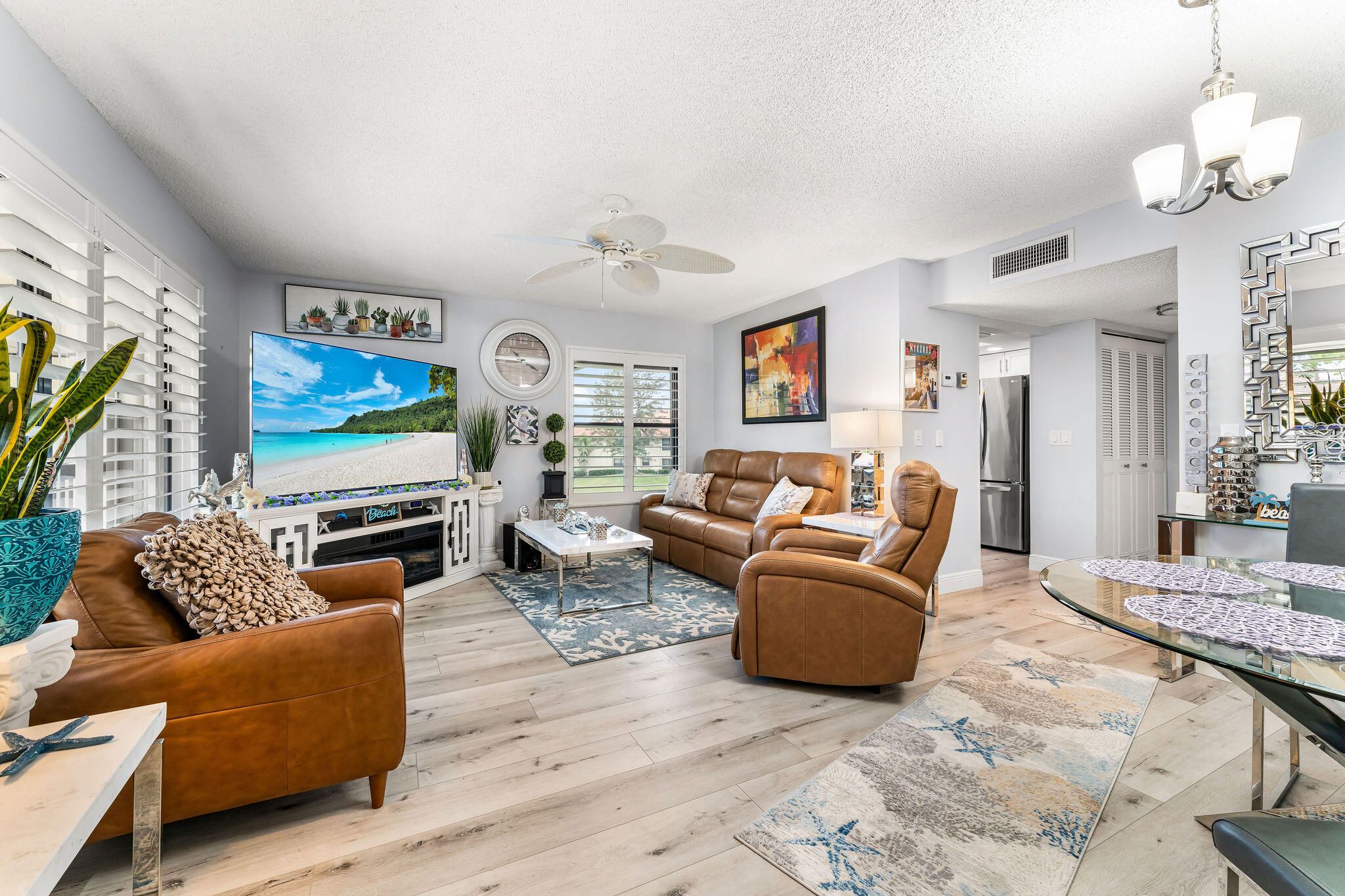 Fully renovated and furnished for effortless living! This stunning condo at South River offers modern comfort with spectacular lakeside views. Recent remodel with stylish kitchen with modern stainless steel appliances, newer A/C and in-unit washer/dryer. 2025 Accordion hurricane shutters protect windows & elegant plantation shutters frame the interior. Move-in ready on the second floor with a deeded carport included. This active 55+ community sits along the St. Lucie River's South Fork, offering boardwalks, community pool, tennis, pickleball, shuffleboard, bocce ball, putting green, and free boat/trailer storage. Monthly HOA covers cable, water, exterior maintenance, and building insurance. No pets are allowed. Schedule a showing today to see Stuart's most serene setting in person